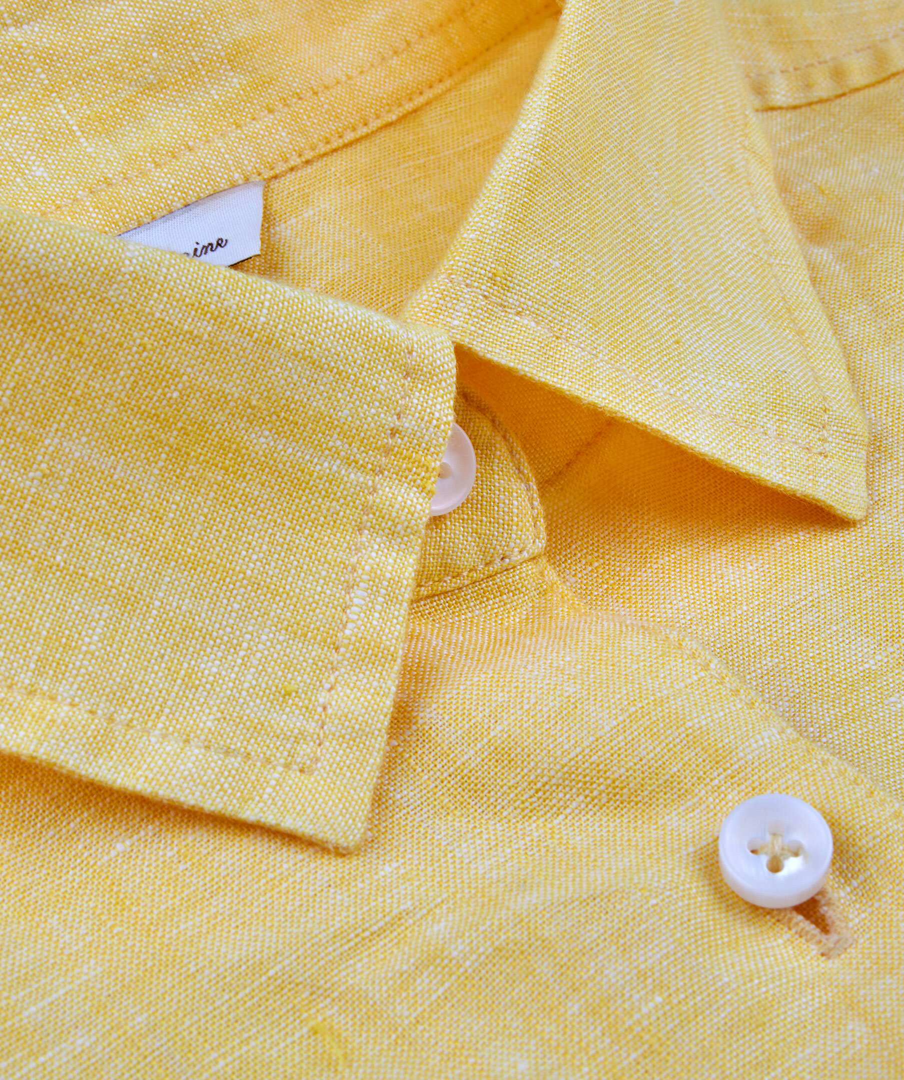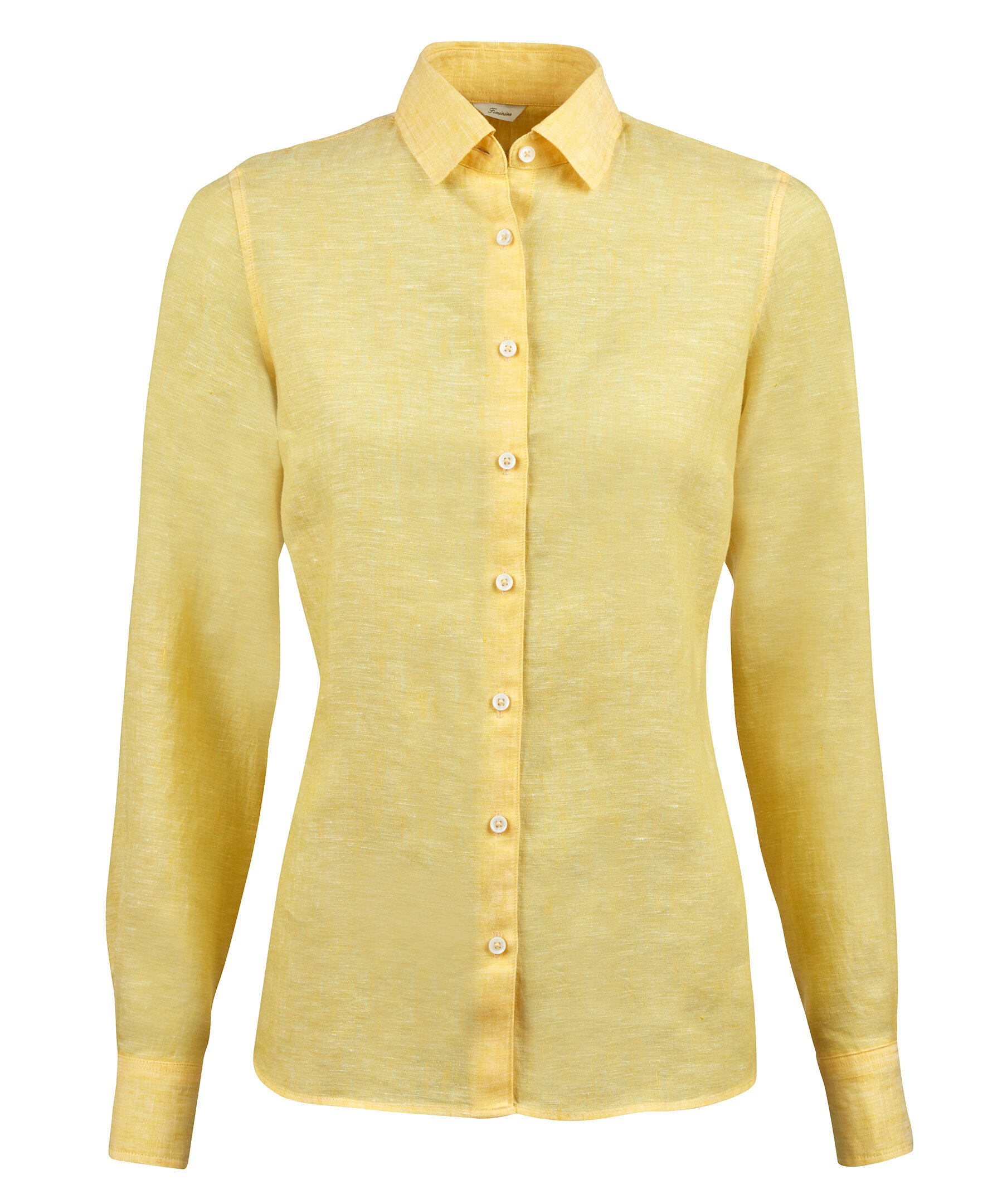 Gul skjorta med Feminin passform. Tillverkad i linne med en slät knappslå, enkla manschetter och klassisk krage.