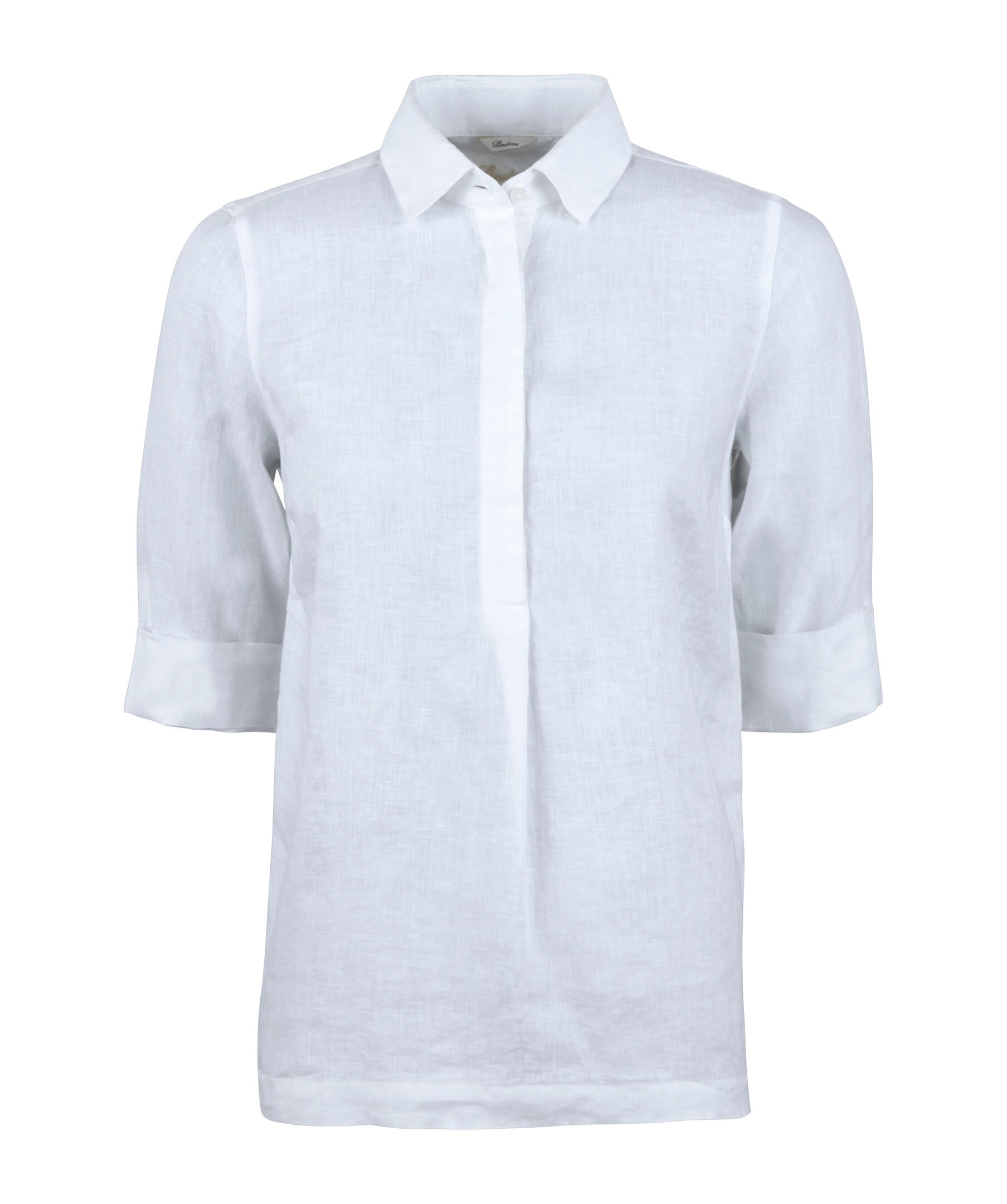 Denna pop-over skjorta är tillverkad av linne och har en avslappnad passform. Skjortan har en halvknäppning med gömda knappar, en klassisk krage och 3/4 ärmar.