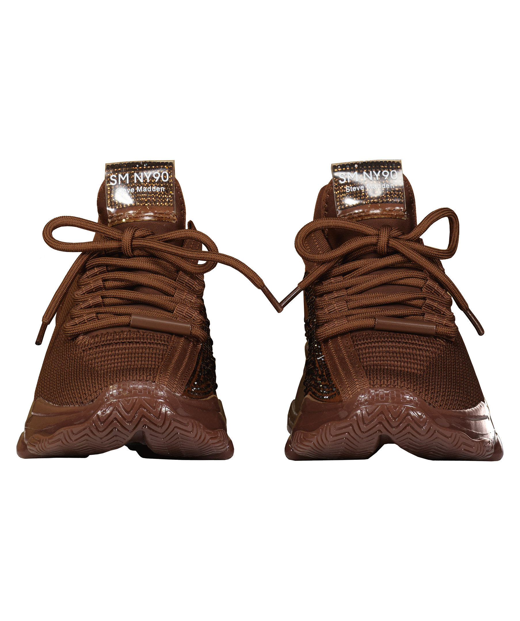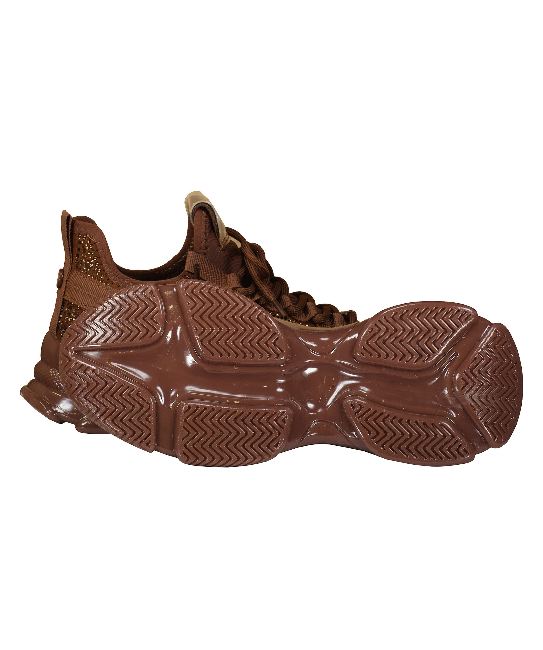Bruna sneakers med strasstenar runt om skon från Steve Madden. Designade med både stil och prestanda i åtanke och kommer att hålla dig chic och känna dig lätt på fötterna! Tygsko med tjock, beige gummisula som ger maximalt stöd. Smala sömmar med reflex längs snörningen och på plösen bak, metalldetalj med logotyp på snörningen fram och en rund metallbricka bak på hälen samt tunn svart text på plösen och utsidan. Skorna är små i storleken, vi rekommendera dig att beställa en storlek större än din normala storlek.
