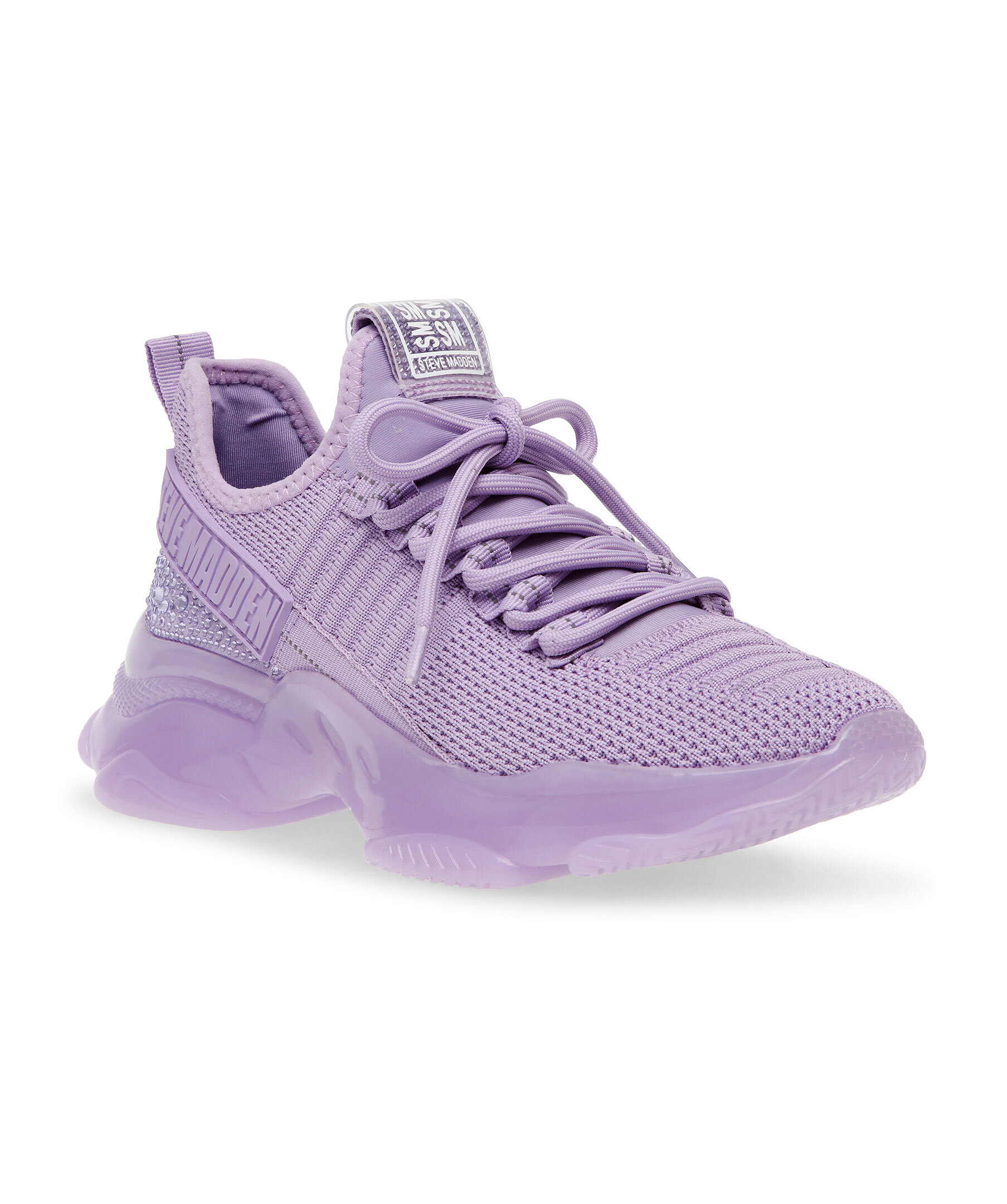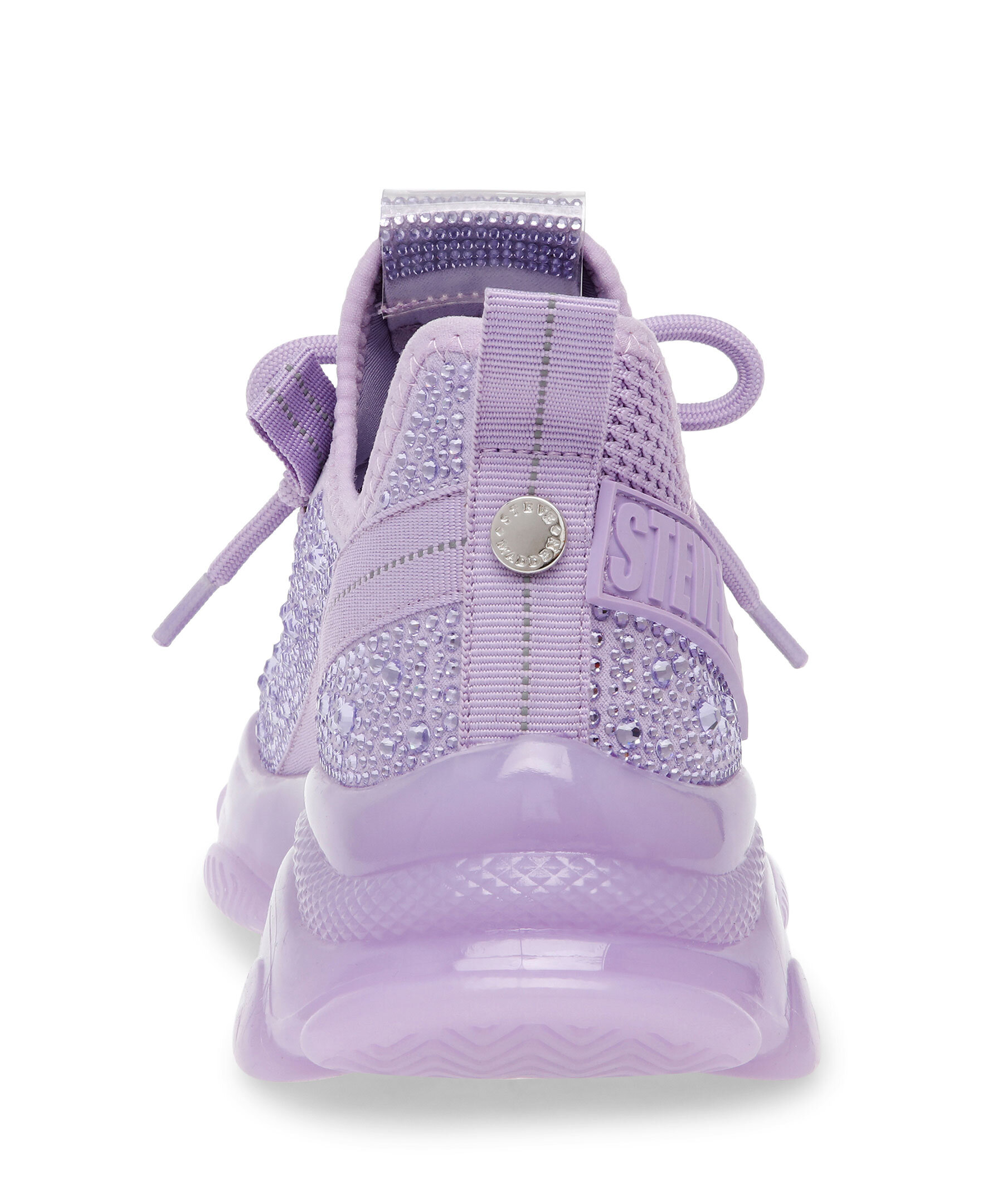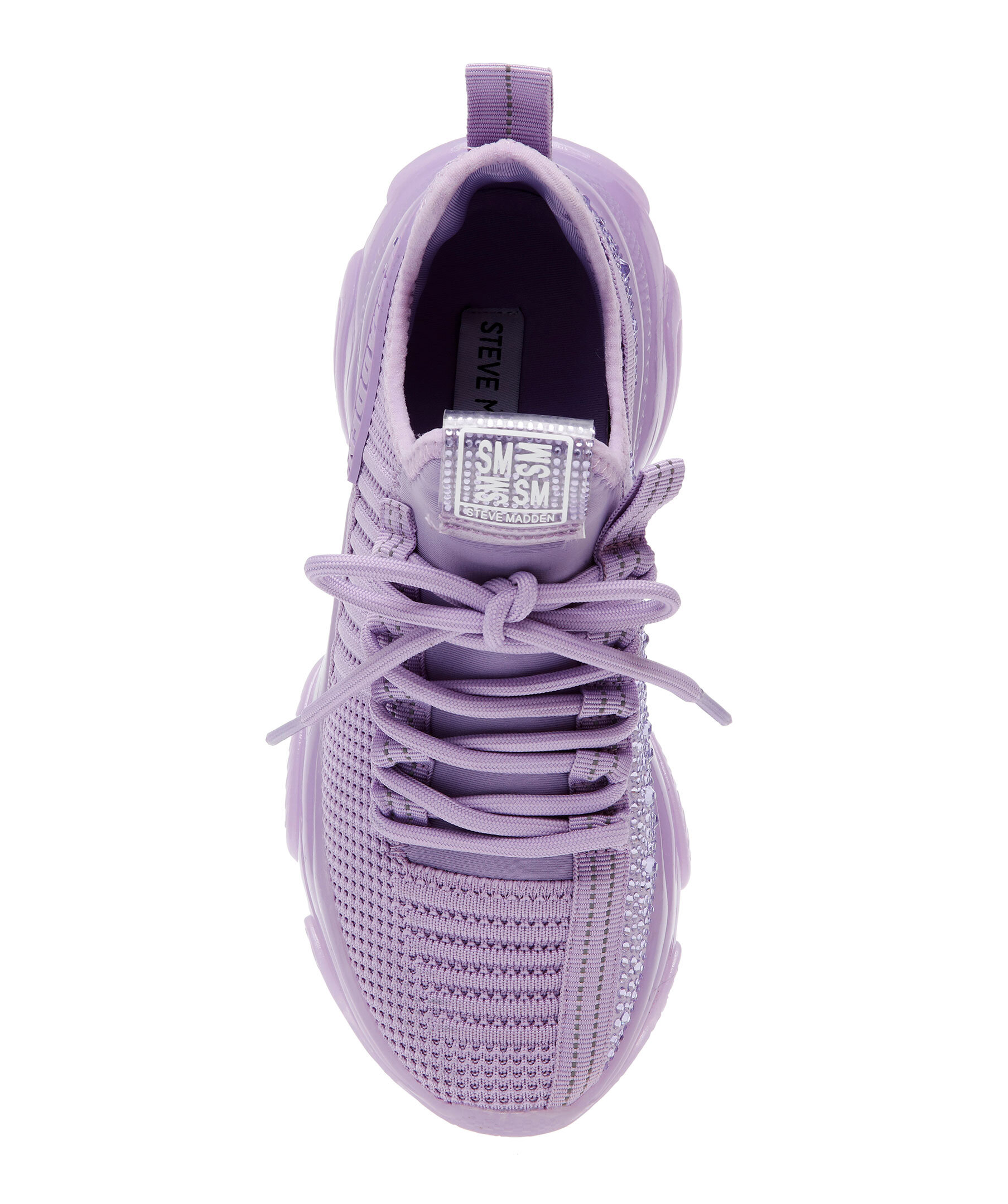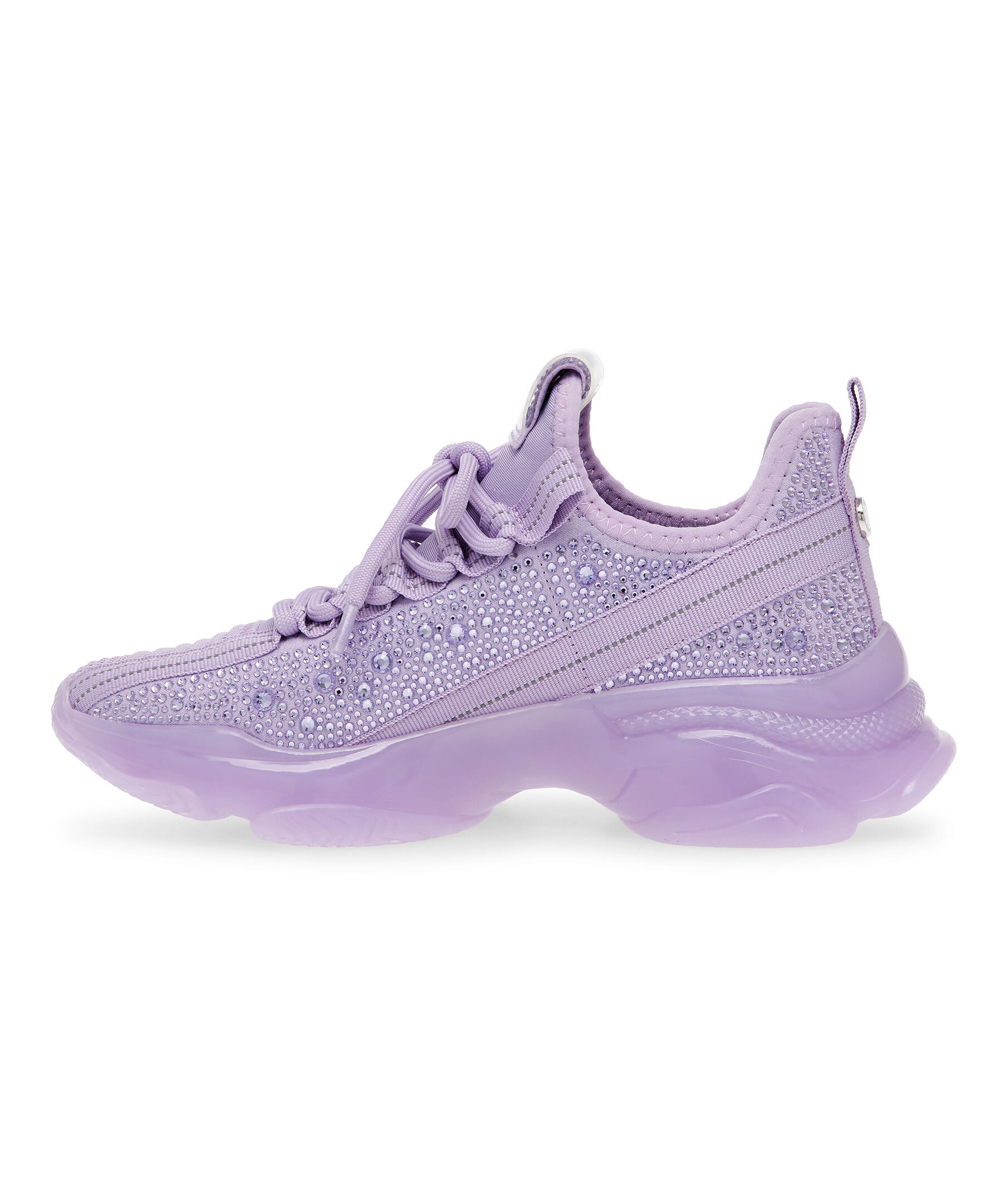 Ljuslila sneakers med strasstenar runt om skon från Steve Madden. Designade med både stil och prestanda i åtanke och kommer att hålla dig chic och känna dig lätt på fötterna! Tygsko med tjock, gummisula som ger maximalt stöd. Smala sömmar med reflex längs snörningen och på plösen bak, metalldetalj med logotyp på snörningen fram och en rund metallbricka bak på hälen. Skorna är små i storleken, vi rekommendera dig att beställa en storlek större än din normala storlek.