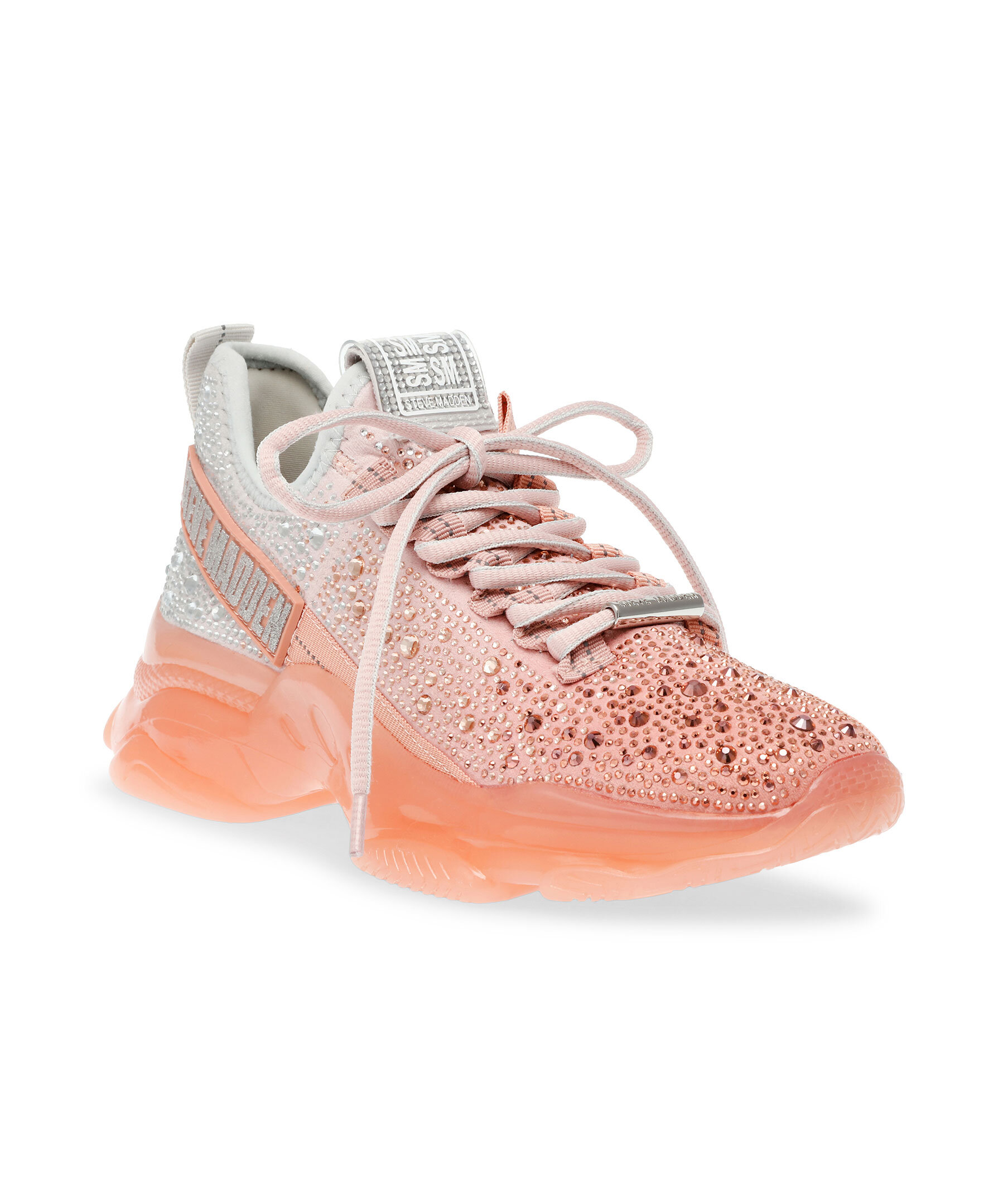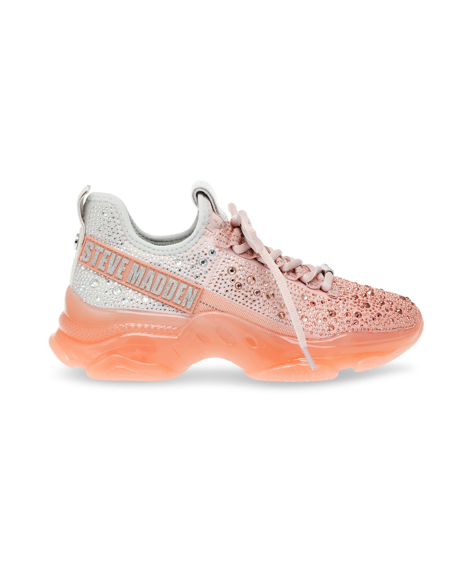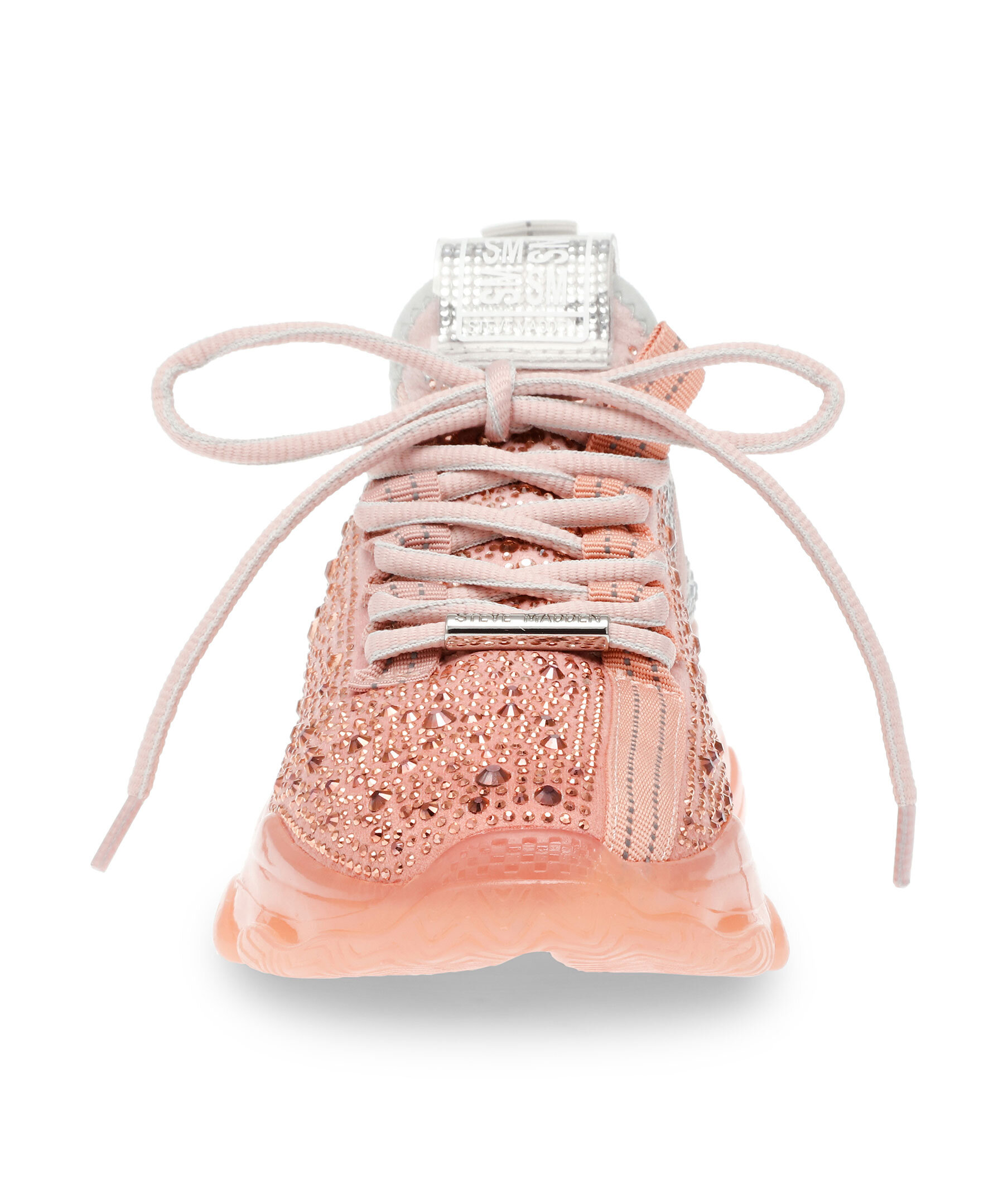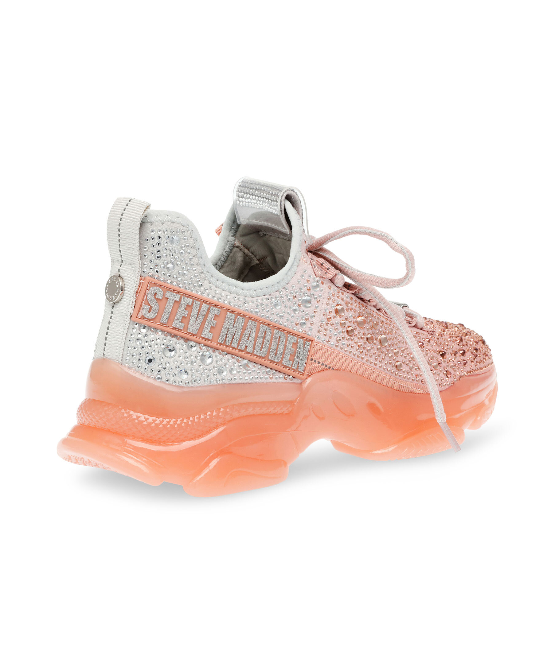 Ljusgråa och rosa sneakers med strasstenar runt om skon från Steve Madden. Designade med både stil och prestanda i åtanke och kommer att hålla dig chic och känna dig lätt på fötterna! Tygsko med tjock gummisula som ger maximalt stöd. Smala sömmar med reflex längs snörningen och på plösen bak, metalldetalj med logotyp på snörningen fram och en rund metallbricka bak på hälen samt tunn text på plösen och utsidan.