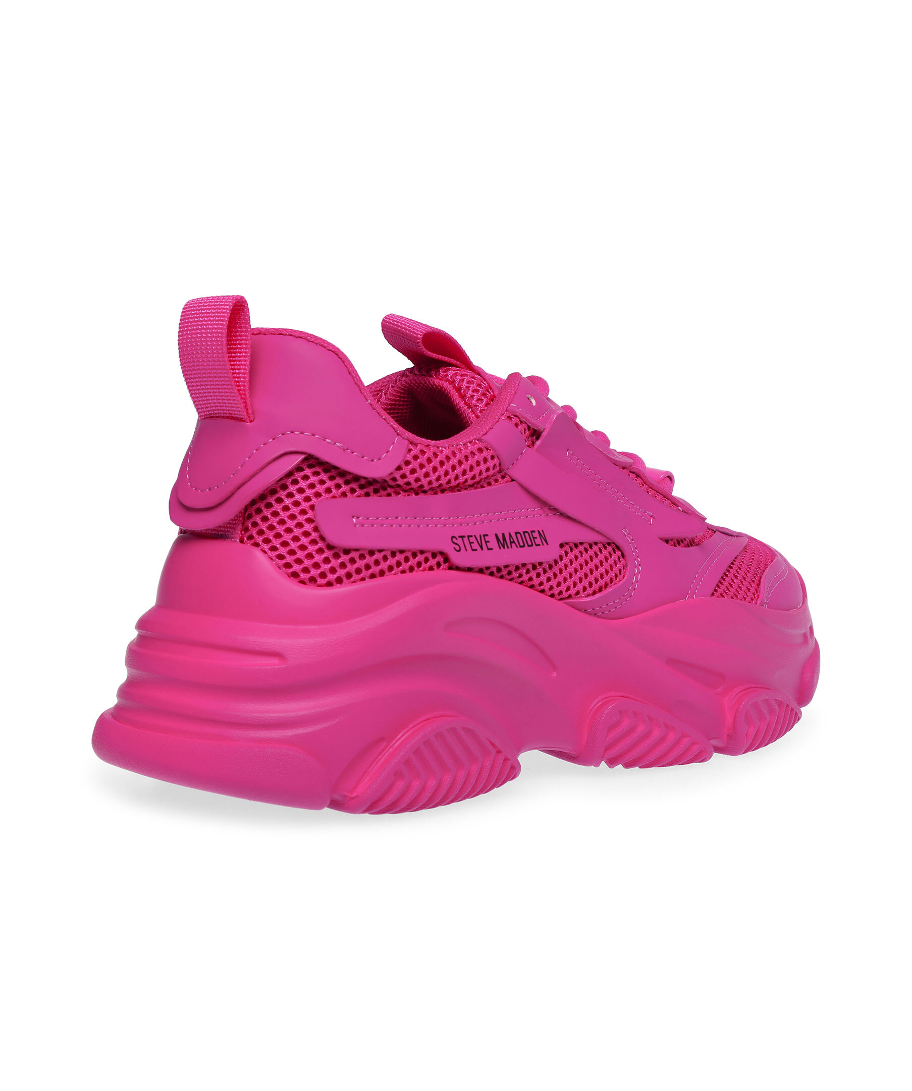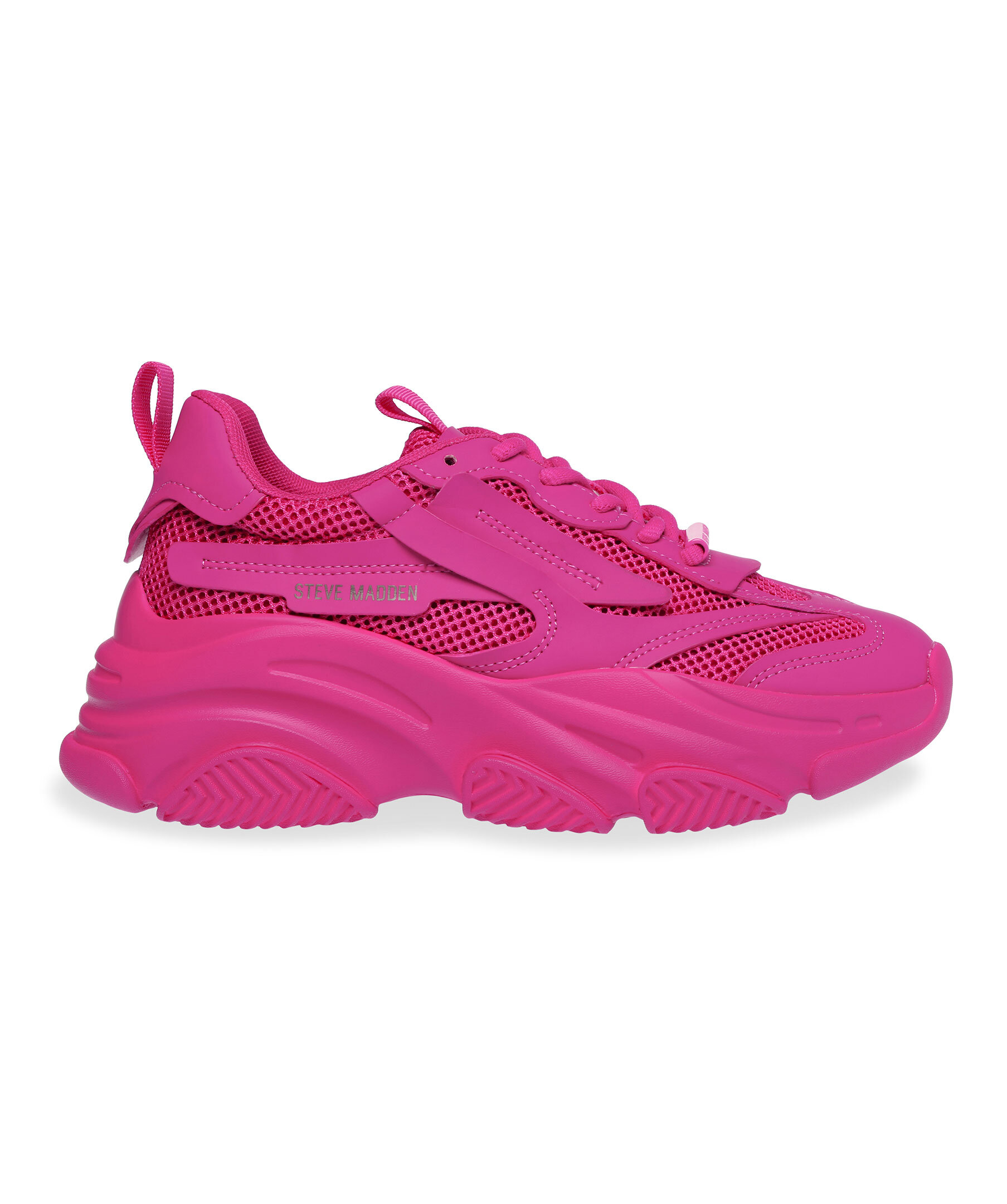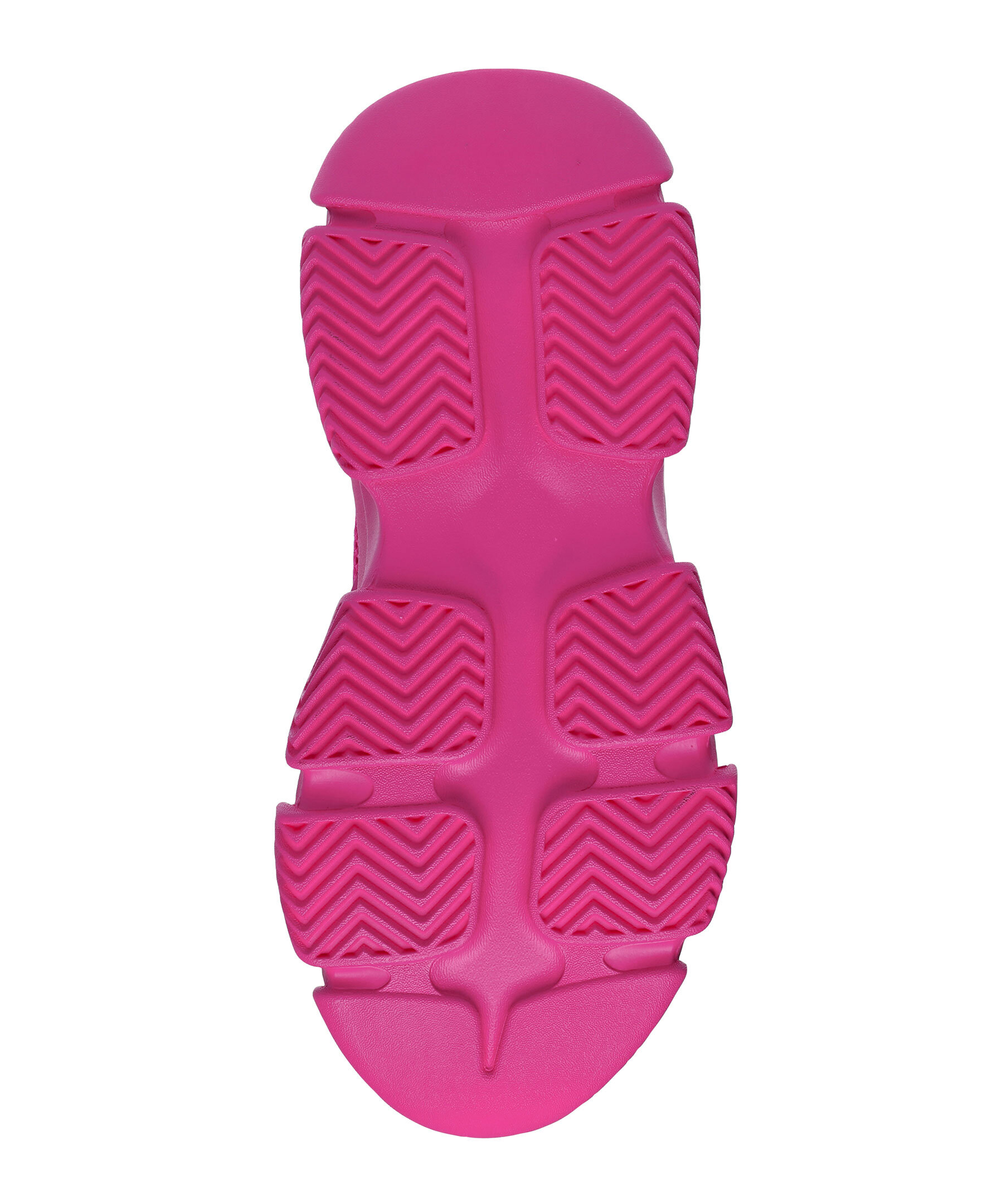 Rosa sneakers från Steve Madden. Tillverkade i konstläder och mesh. Runda skosnören med metalldetalj med stansad logotyp. Ögla på hälen och plösen. Tryckt logotyp i svart på skons yttersida. Grov sula i gummi. Rund metallbricka bak på hälen. Denna sko är liten i storlek, vi rekommenderar dig därför att gå upp en storlek.