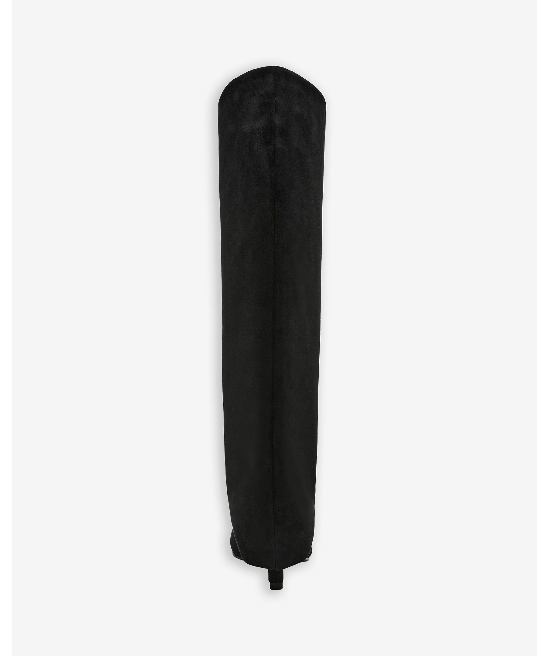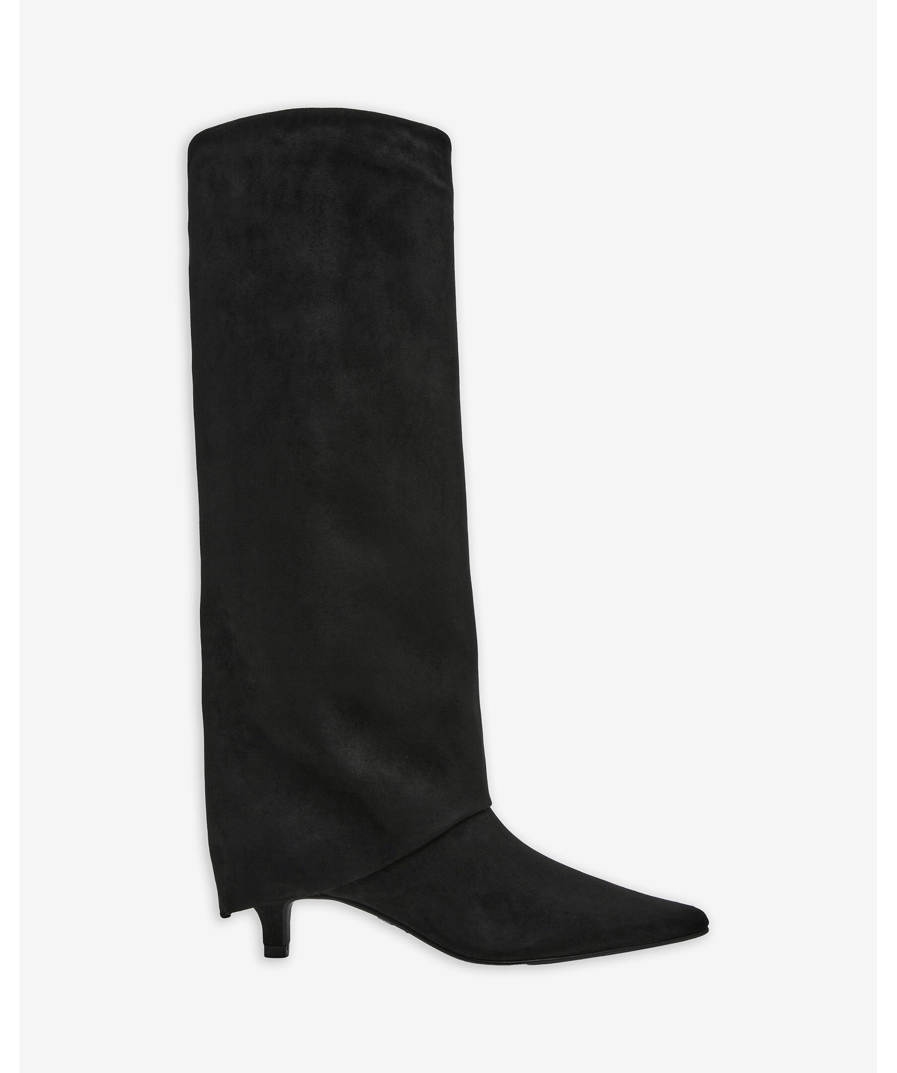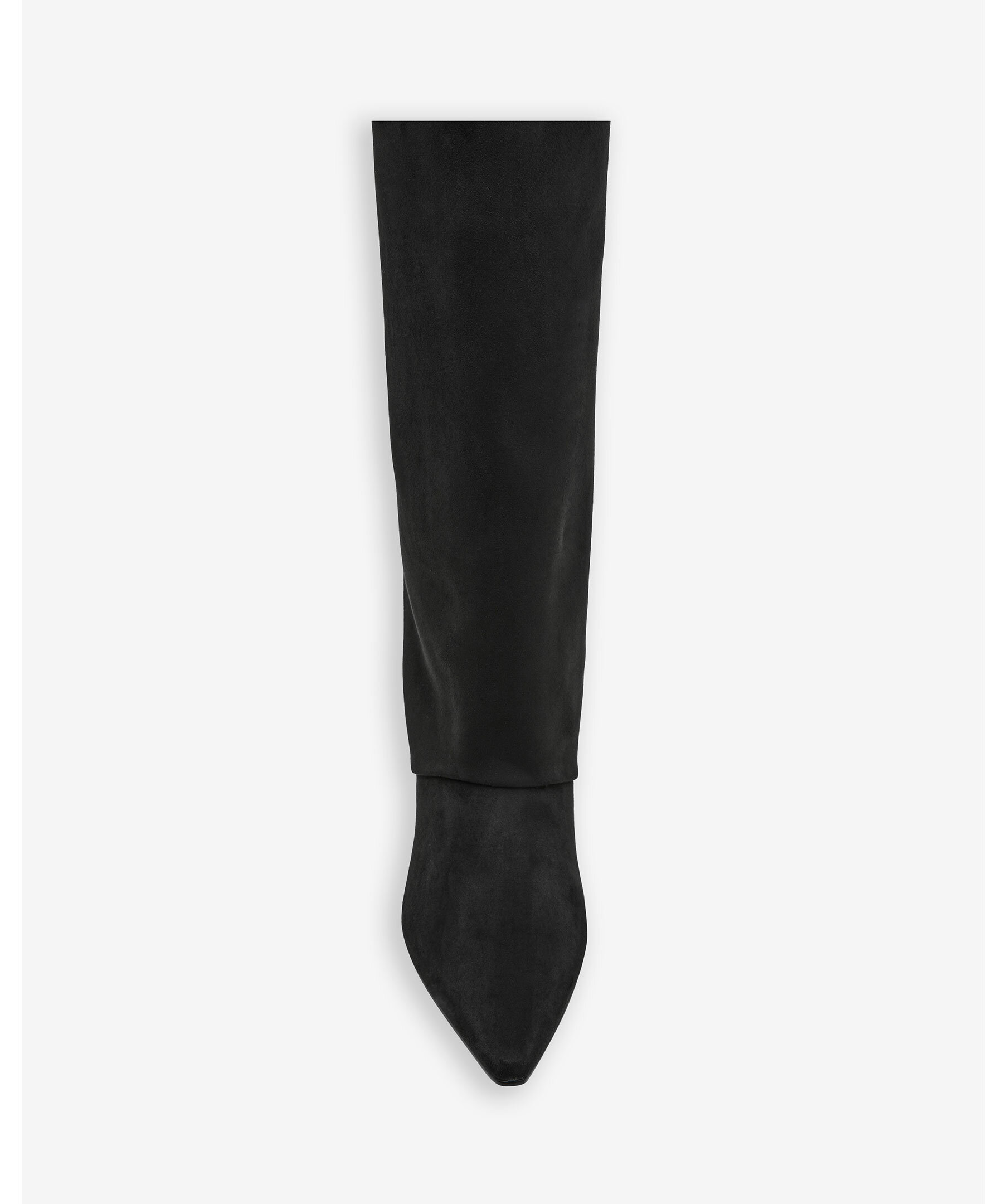 Svarta, höga stövletter från Steve Madden i en mockaimitation. Stövletterna har en spetsig tå och en klackhöjd på 4 cm.