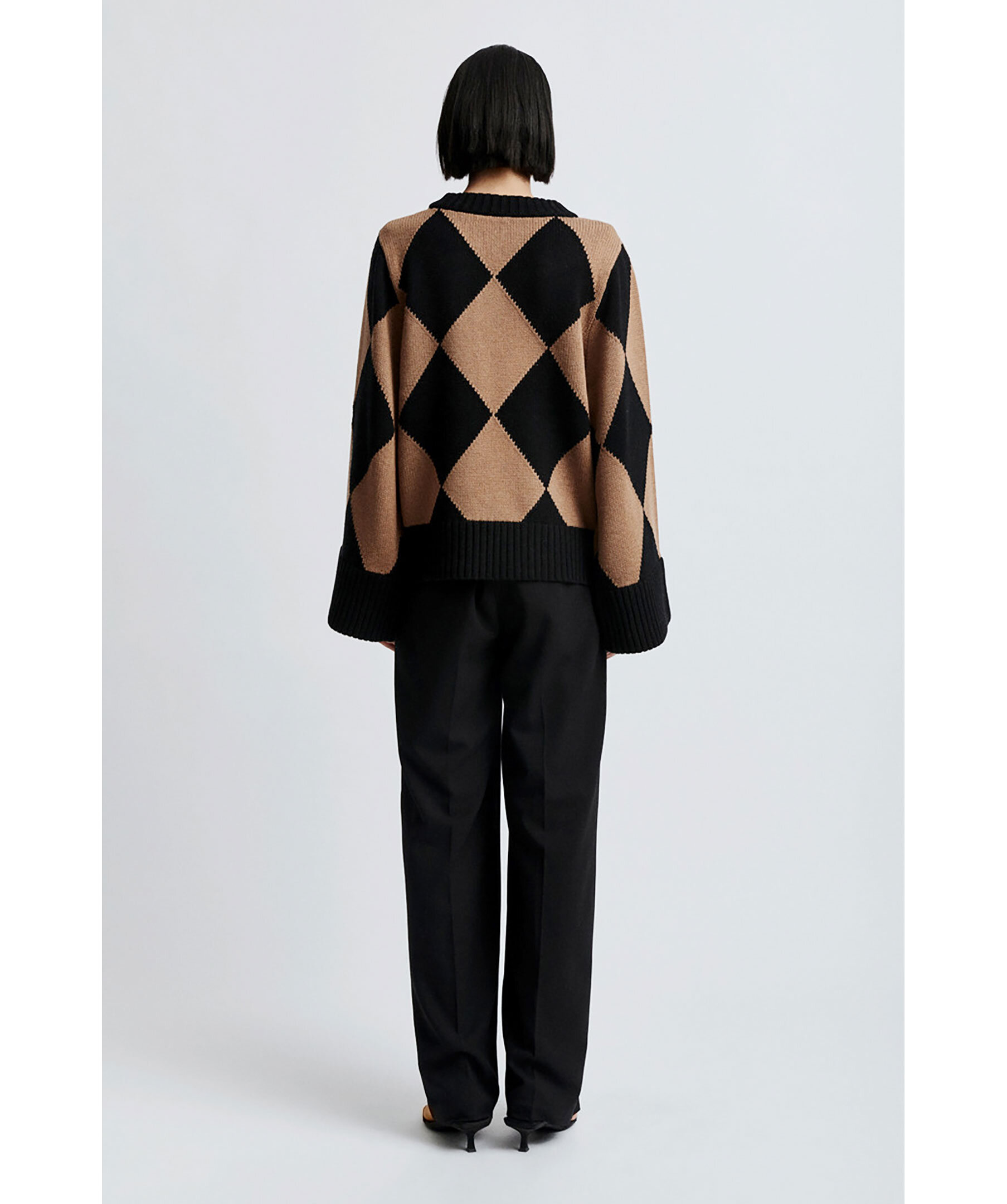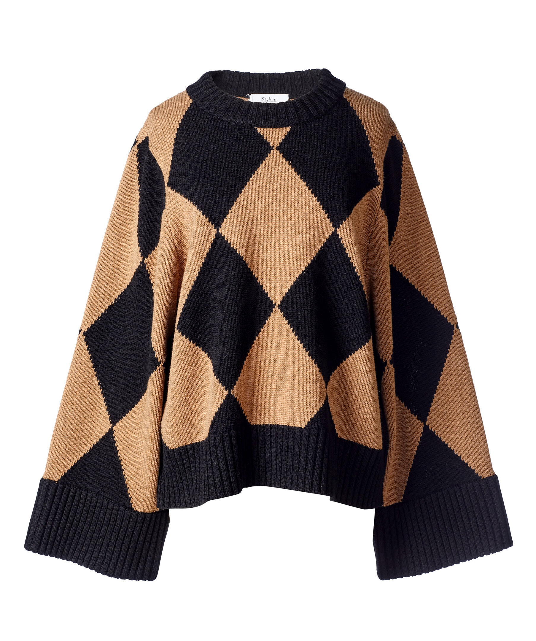 Rutig tröja tillverkad i en bomull och ullmix med ett vackert svart och kamelfärgat mönster från Stylein. Den har en rak lössittande kropp med breda ärmar i full längd, rundad halsringning och bred ribb i nederkanten.