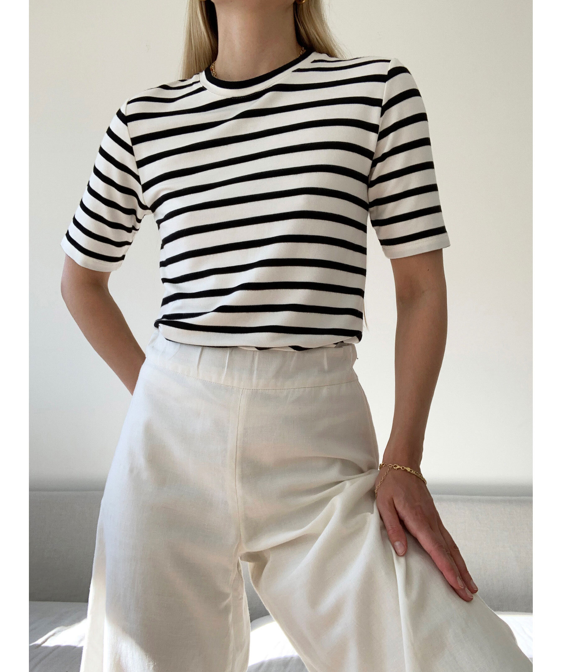 Svart/vit randig t-shirt från Stylein. Rundad halsringning och lite längre t-shirtärmar. Tillverkad i stretchig viskos.