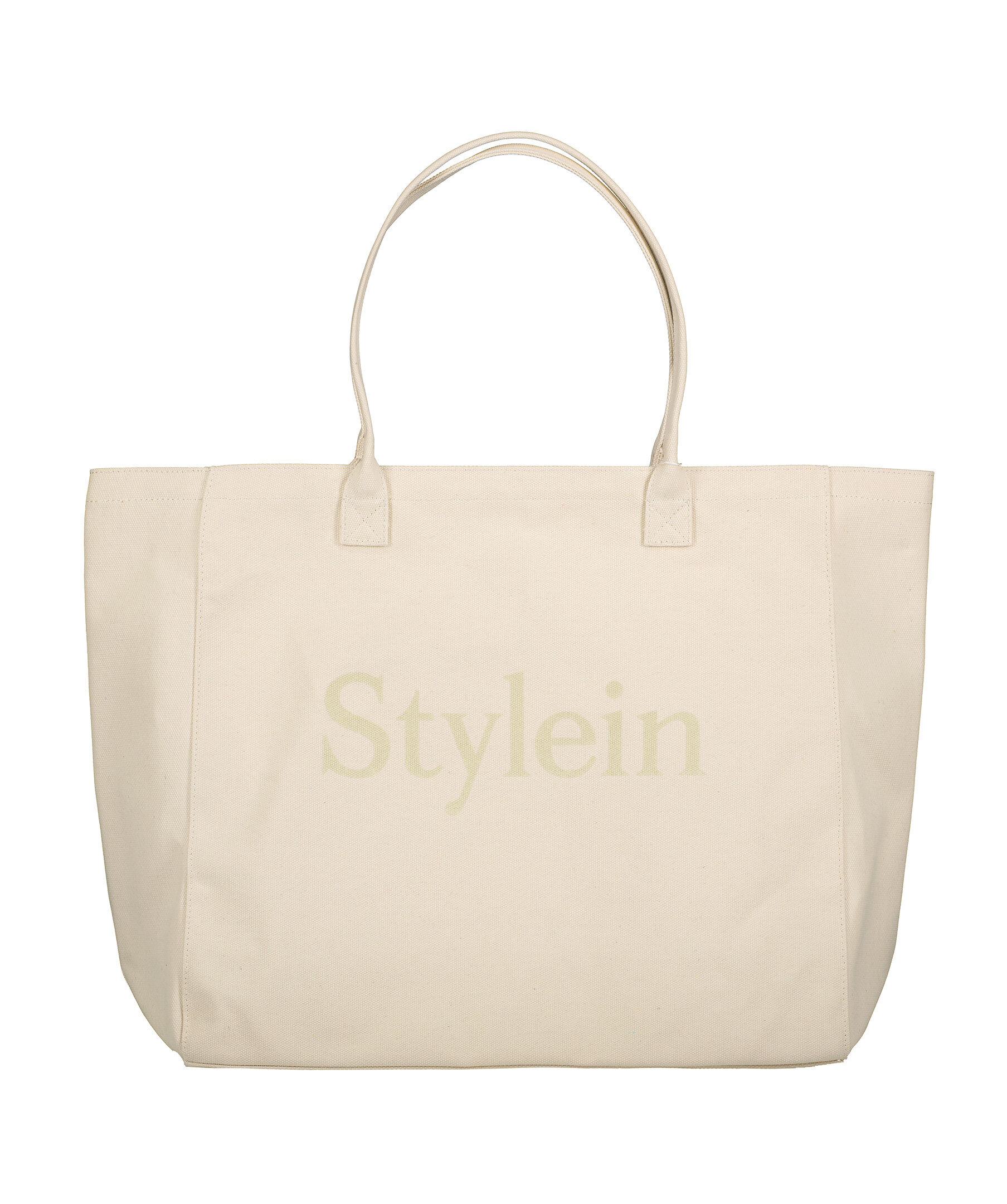 Stor beige toteväska från Stylein. En vardagsväska gjord av bomullscanvas med en förstärkt bottenplatta för stabilitet. Runda sydda handtag och Stylein-logotyp centrerad framtill. Ofodrad insida och kommer med en matchande innerclutch i canvas med dragkedja som toppstängning. H: 41cm, B: 44,25cm, Handrem: 58cm.