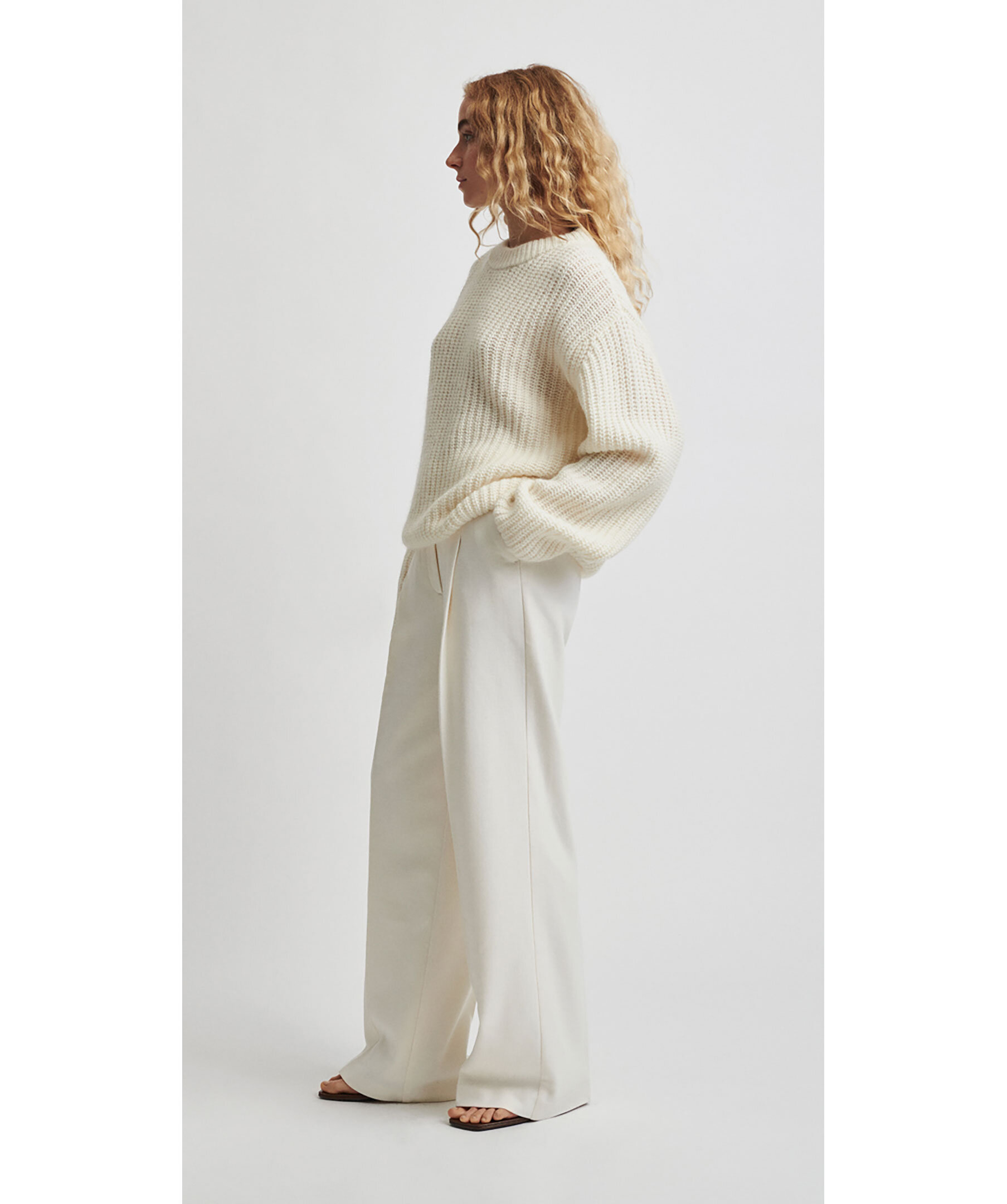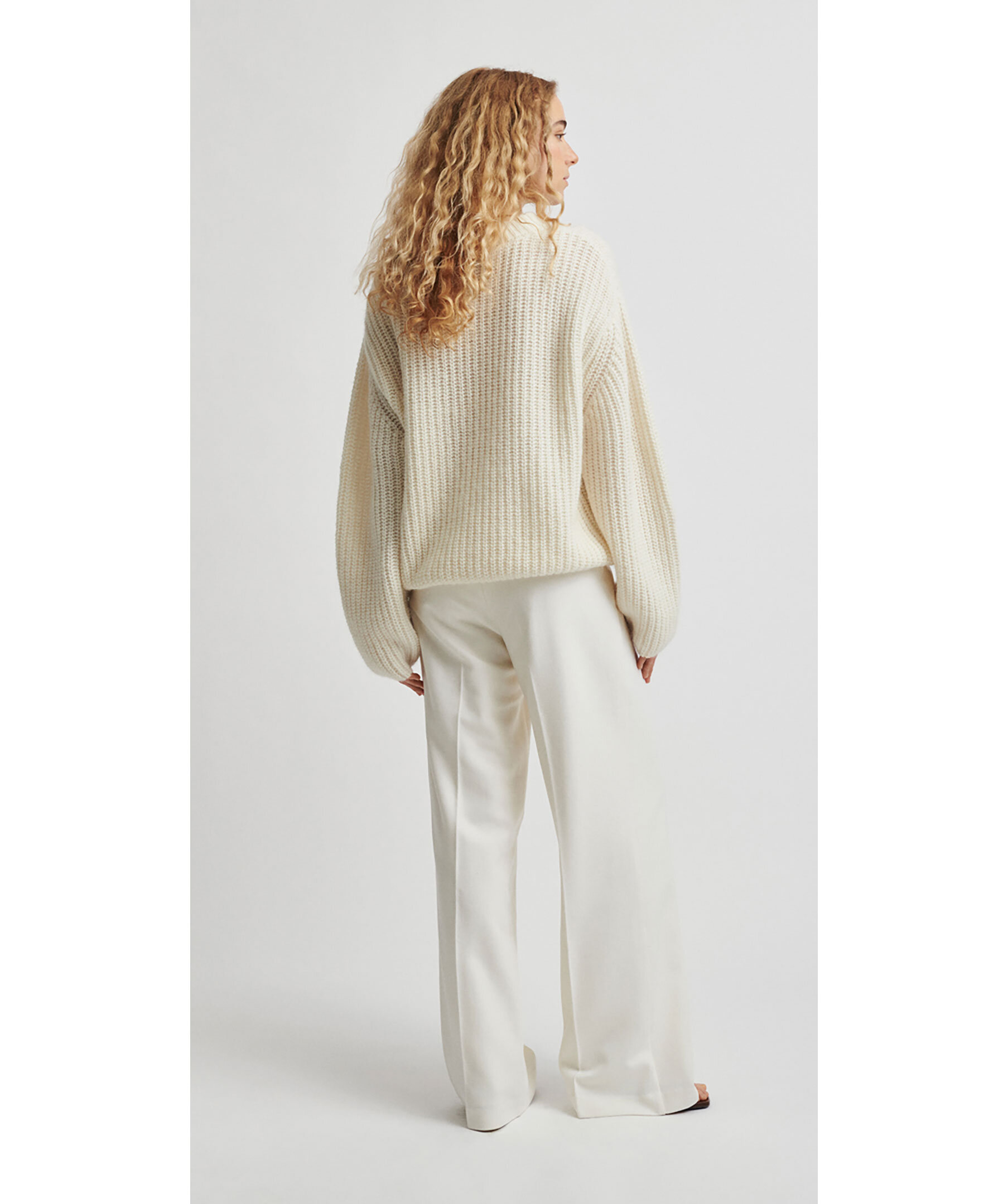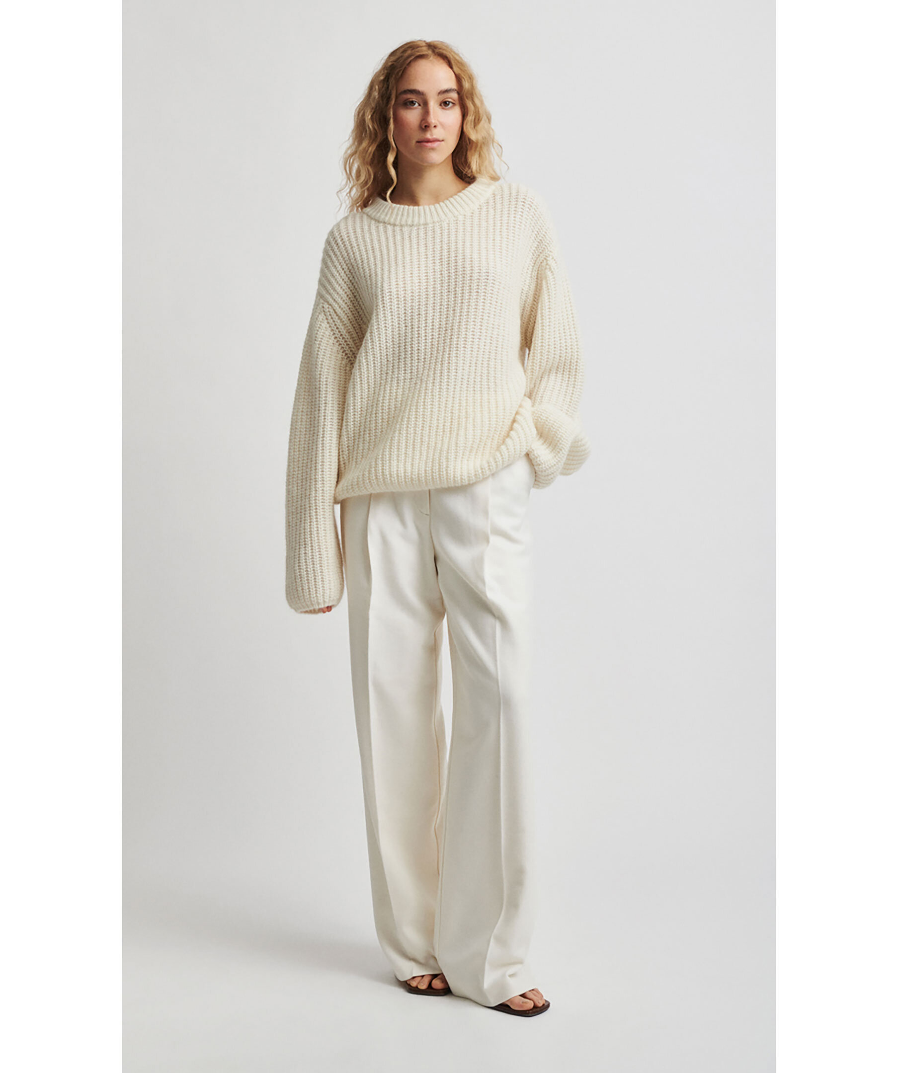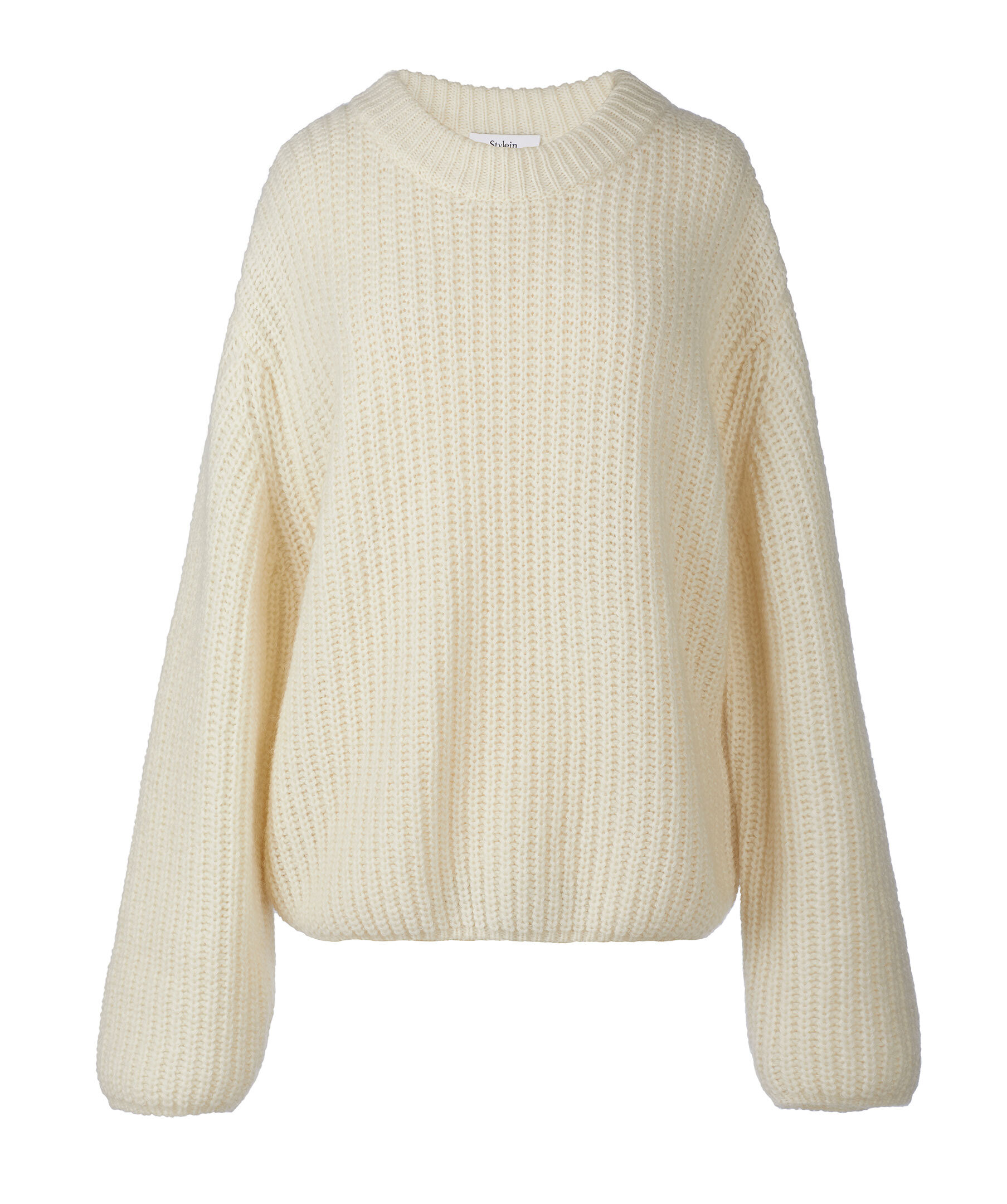 Vit stickad tröja från Stylein. Rundad halsringning. Tröjan är designad i en oversized, avslappnad passform. Tillverkad i ullblandning.