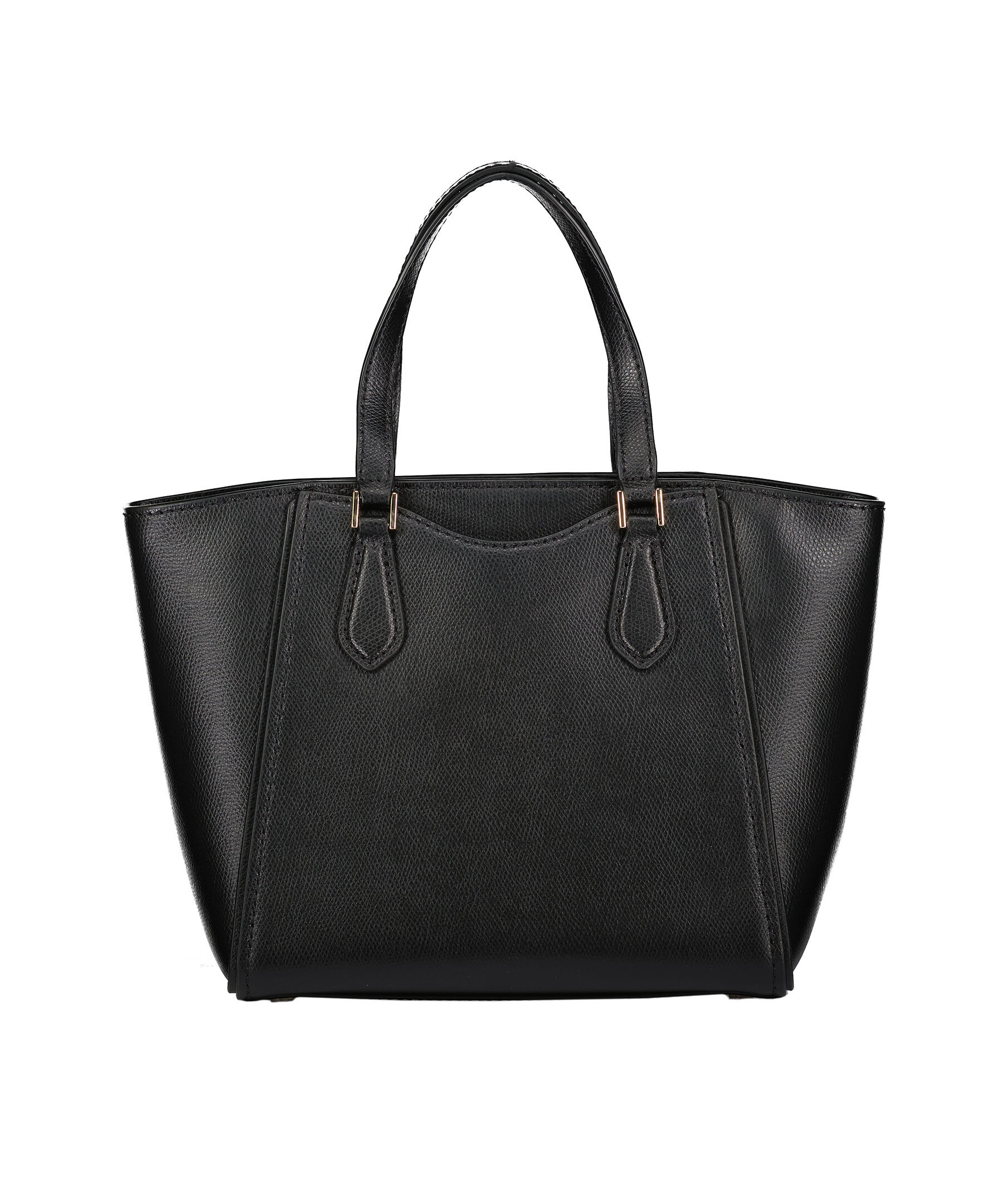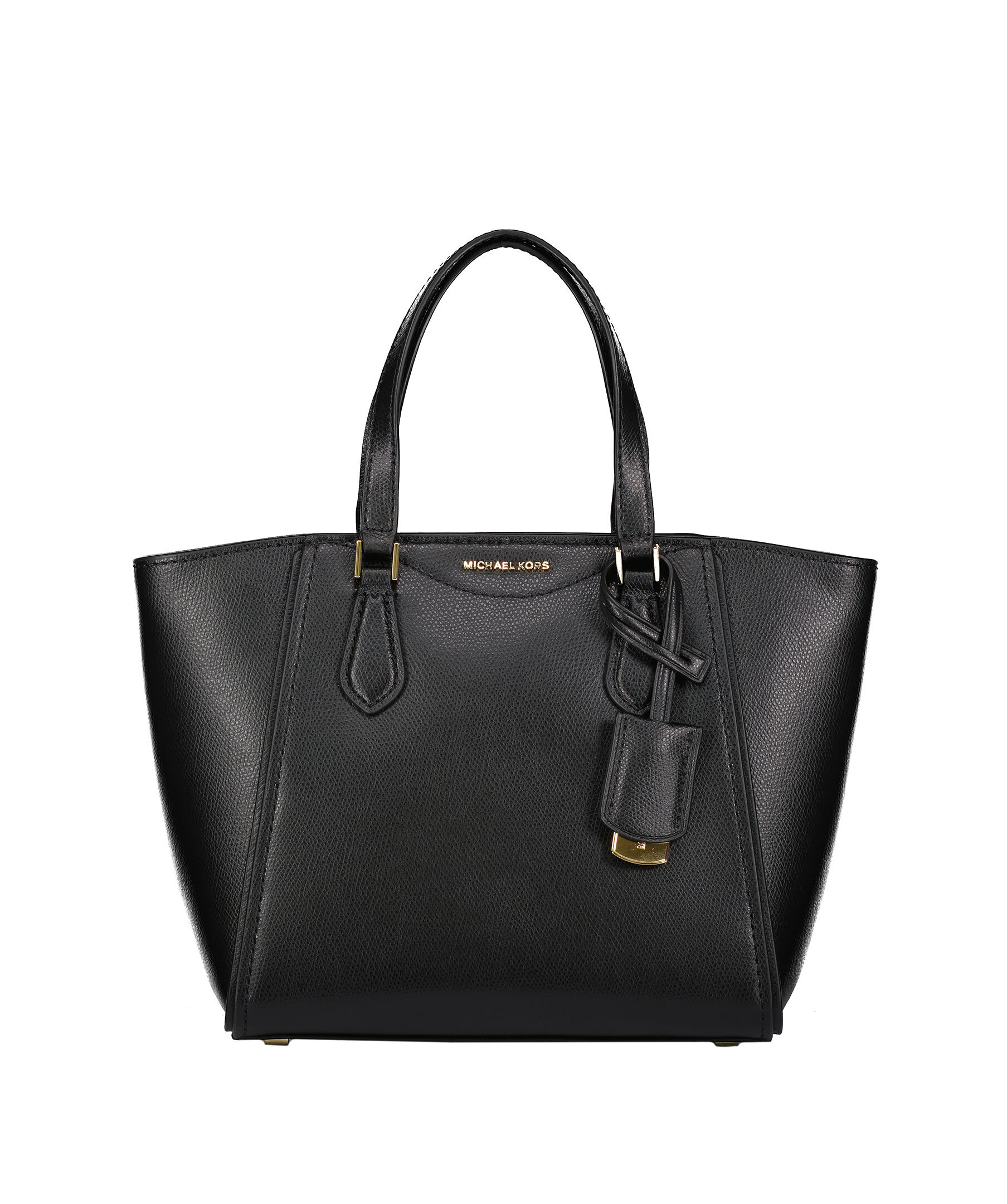 Svart crossover väska från Michel Kors. Bär den över axlen med den justerbara axelbansremmen eller i handtagen. Väskan har gulddetaljer, stängs med blixtlås.