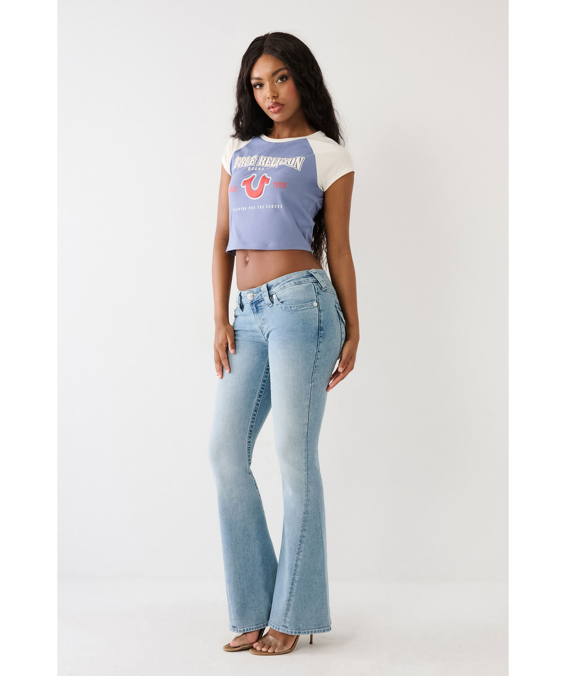 True Religion Joey Low Rise Flare Jeans - Ljusblå