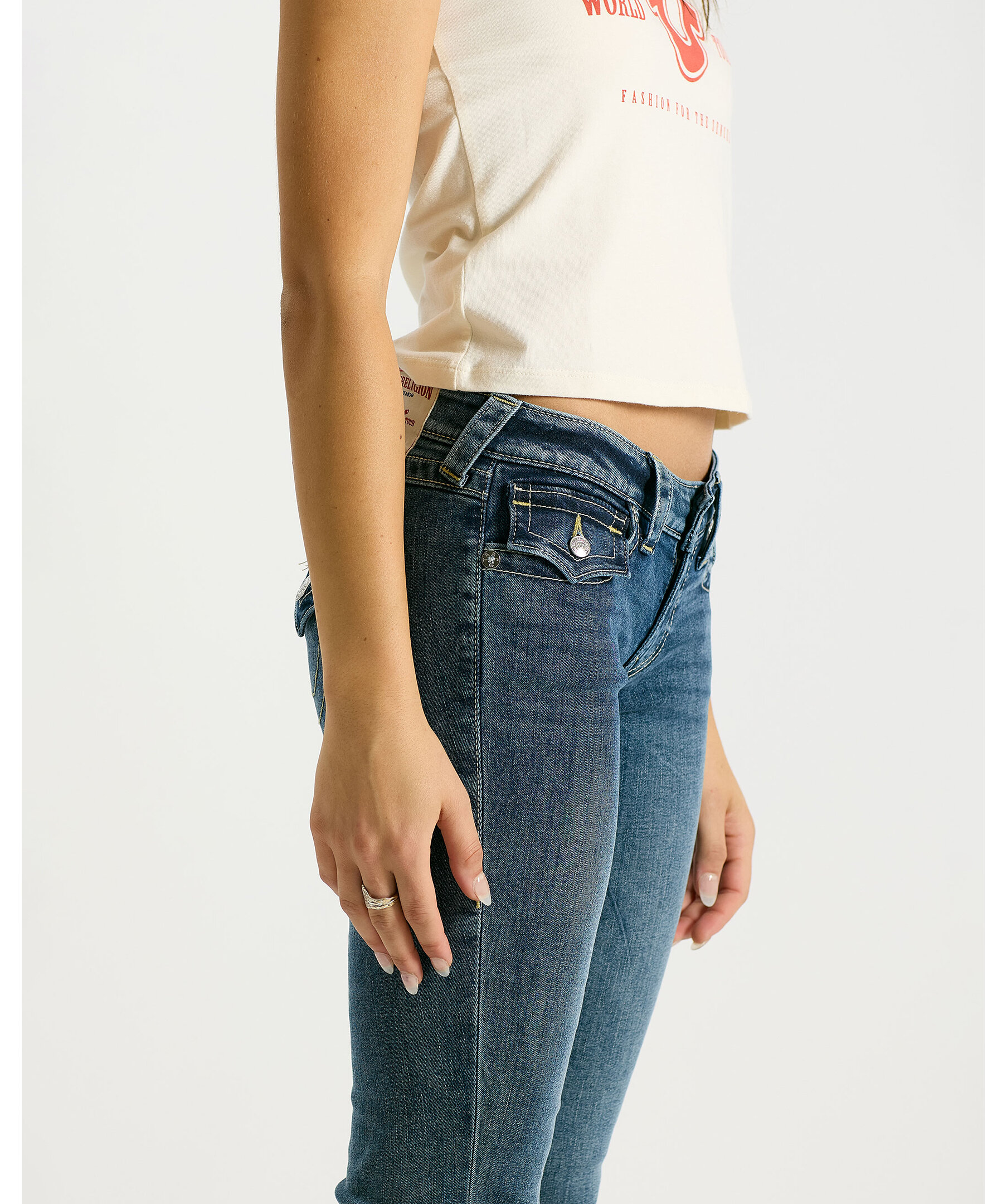Jeans från True Religion med låg midja och utsvängda ben som skapar en smickrande silhuett med retroinspiration. Ett avslappnat plagg som ger rörelse och karaktär till både vardags- och helglooken.