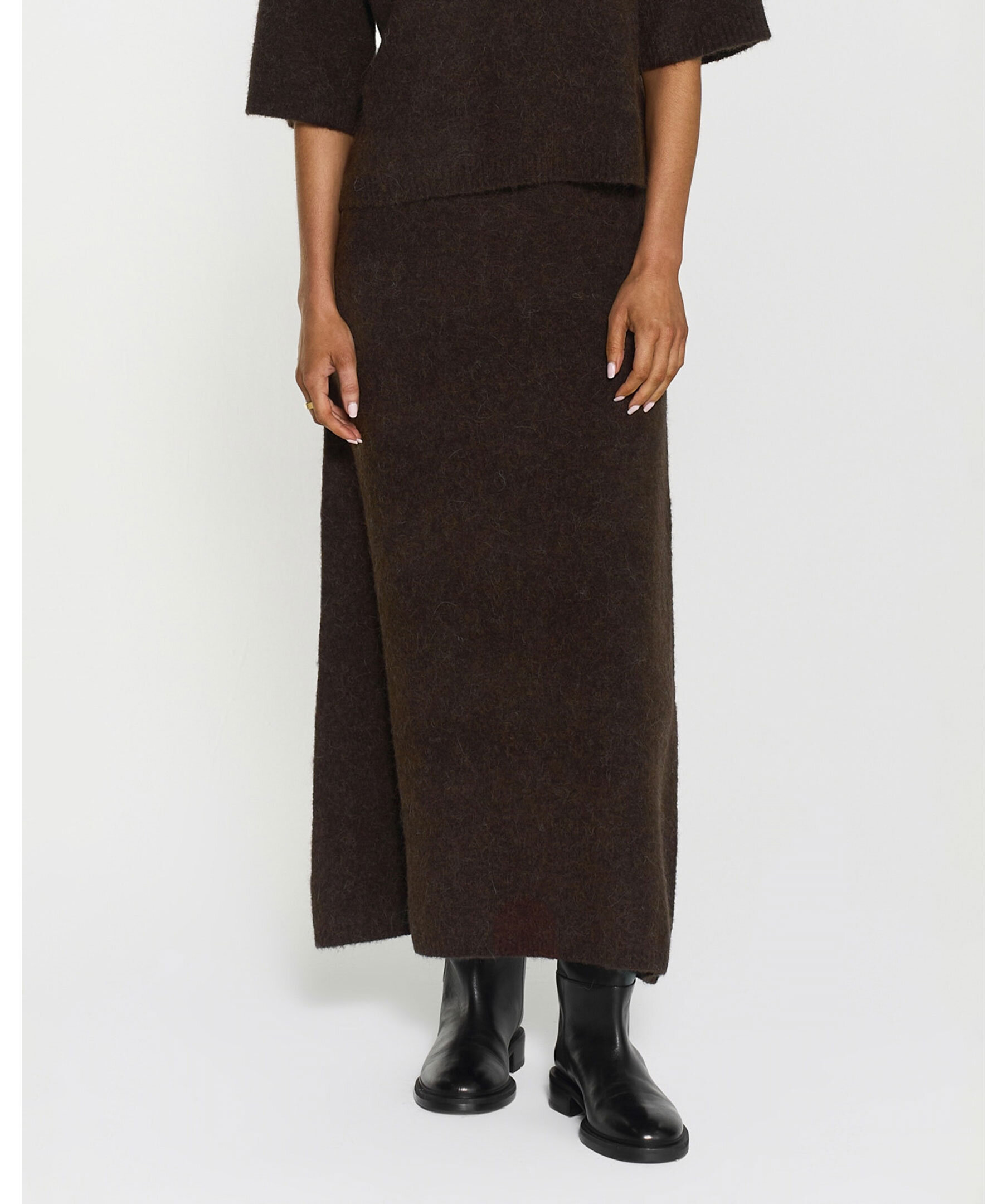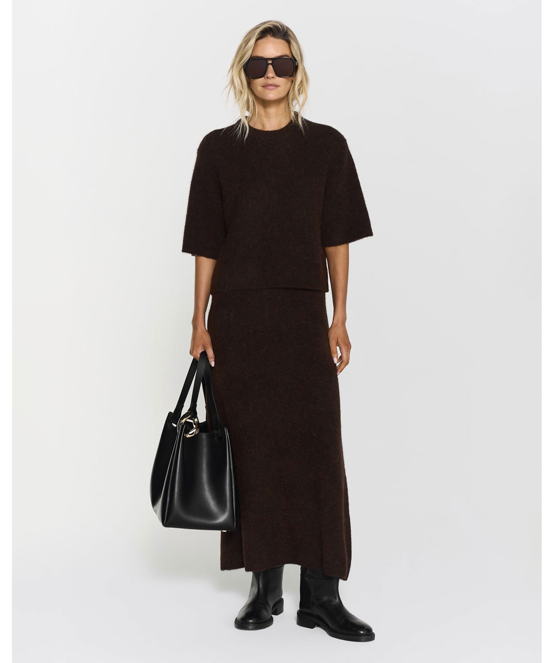 Stickad kjol från Twist & Tango, tillverkad i en exklusiv blandning av superfin alpacka. Den har en smickrande midilängd och en ribbad, elastisk midja för optimal passform och komfort. Kombinera med Madina Short Sleeve Knit för en komplett och sofistikerad look.