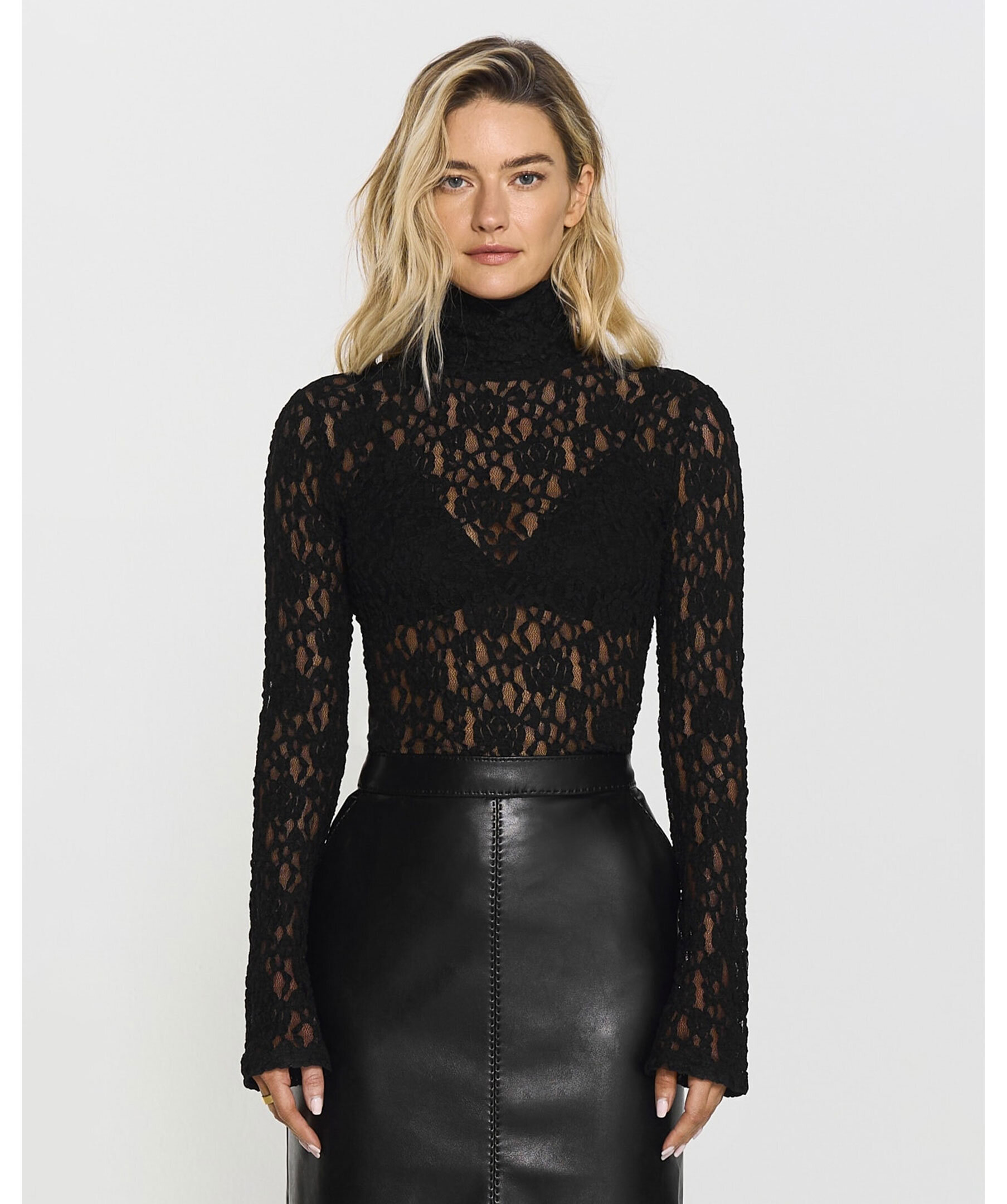 Elegant spetsblus från Twist & Tango. Blusen har hög krage och långa ärmar, avslutad med en dekorativ nyckelhålsöppning och knappstängning i nacken.