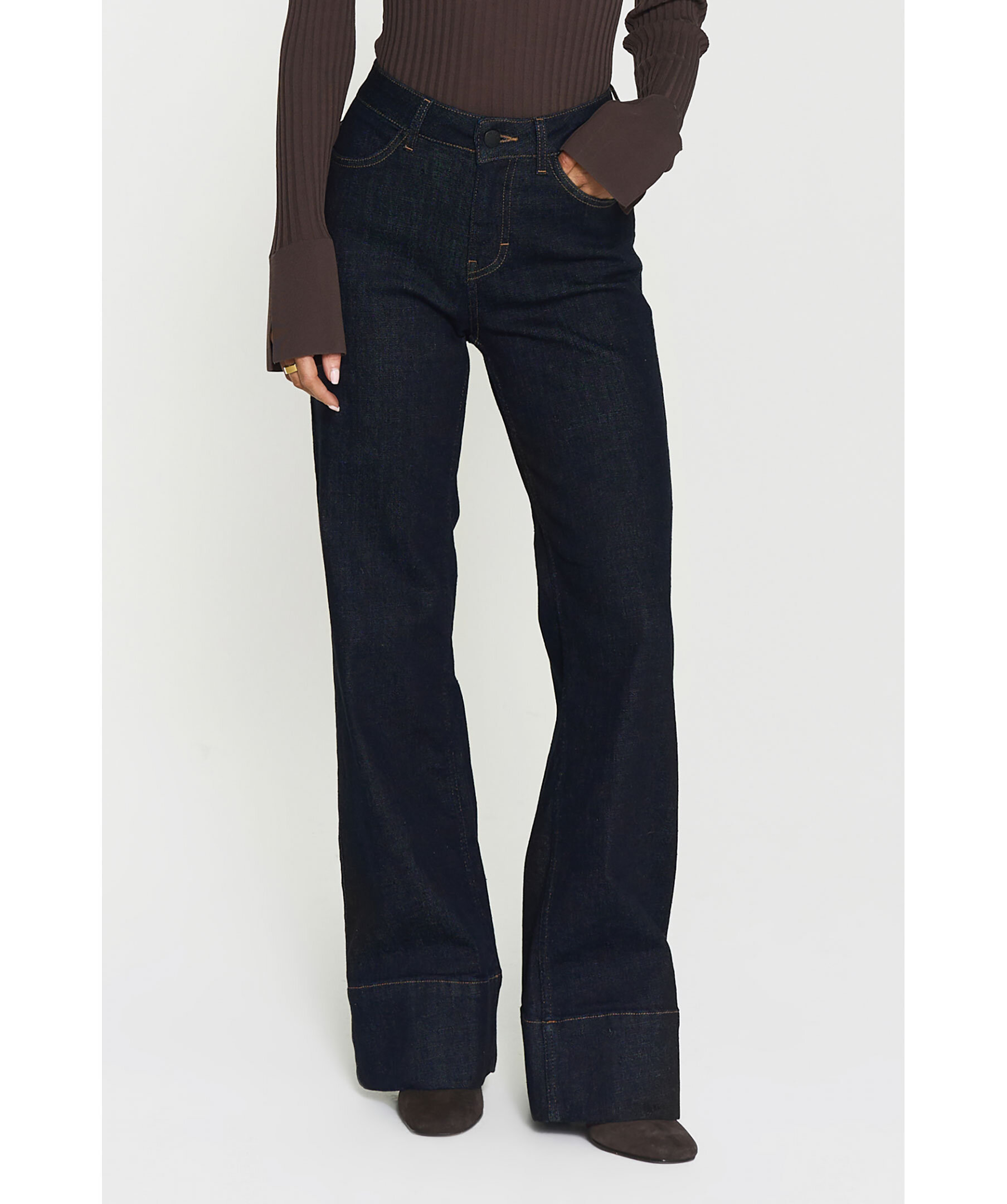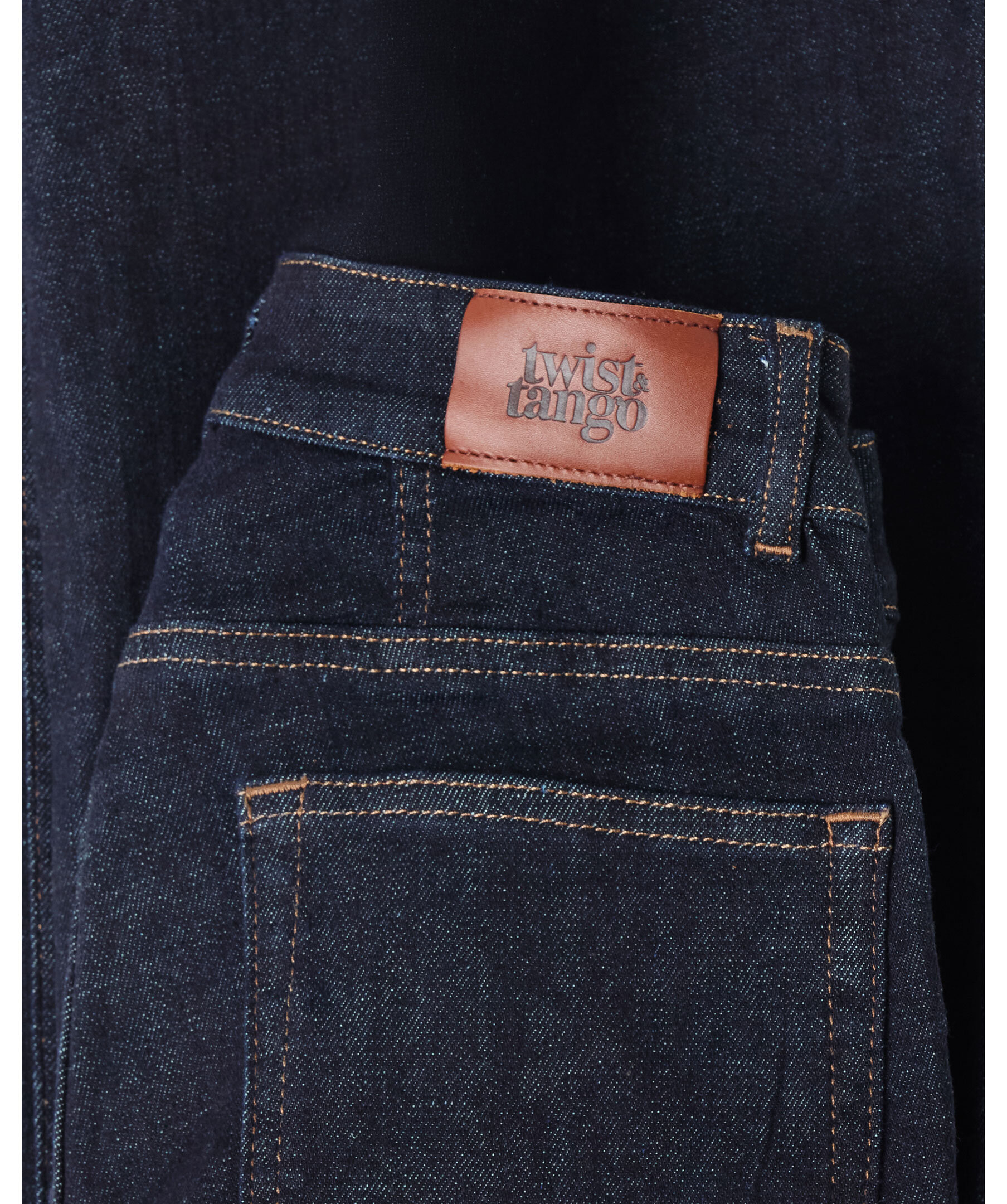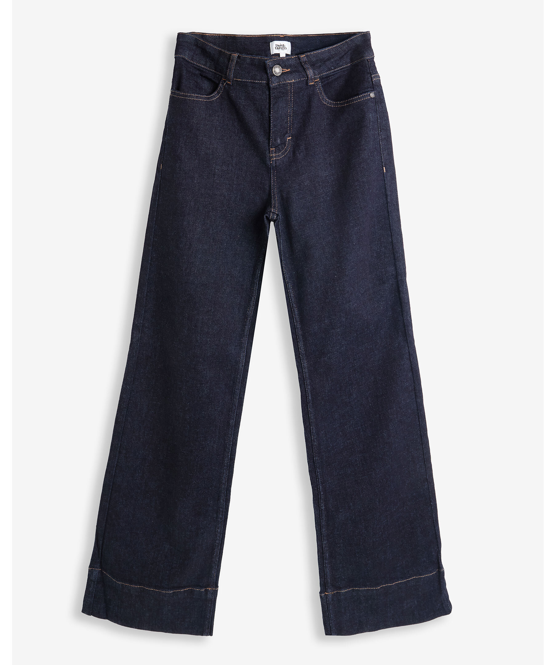 Mörkblåa jeans från Twist&Tango. Jeansen har en medelhög midja med bälteshällor, fyra fickor och en smal passform och bootcut-ben. Brett avslut på benen. Tillverkade i en bomullsblandning.