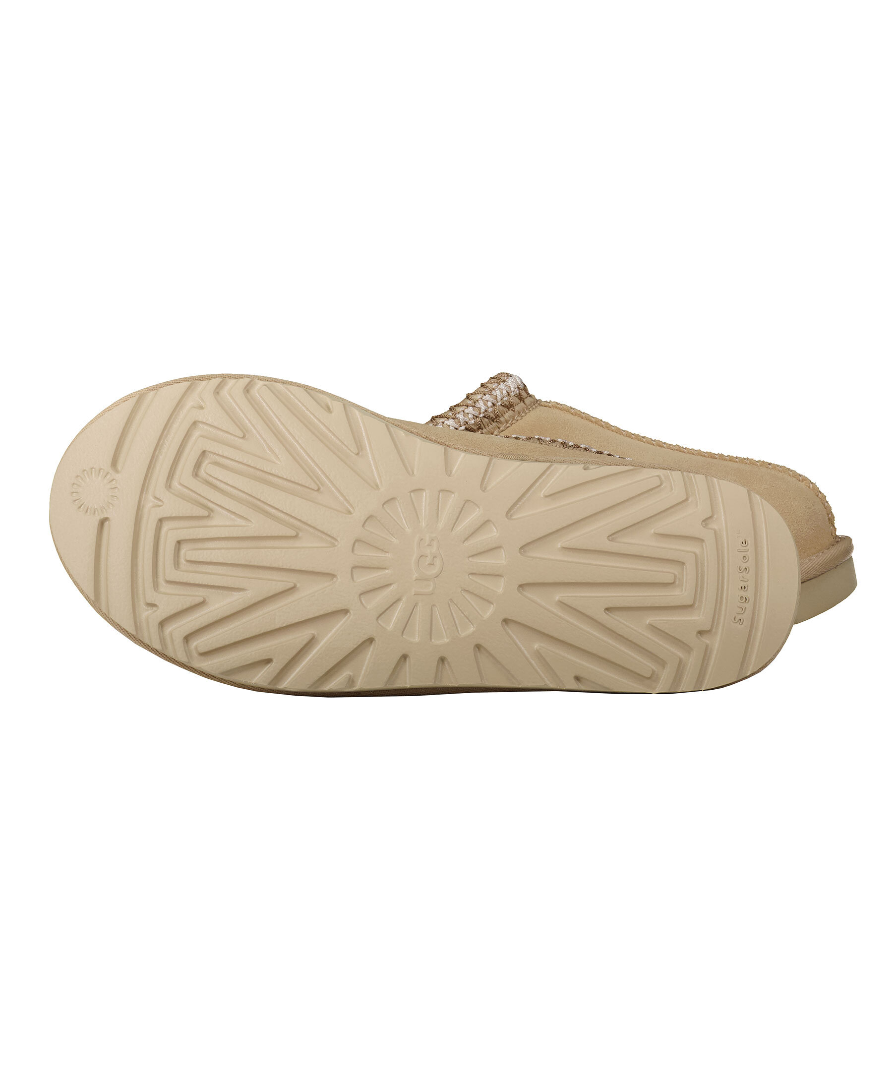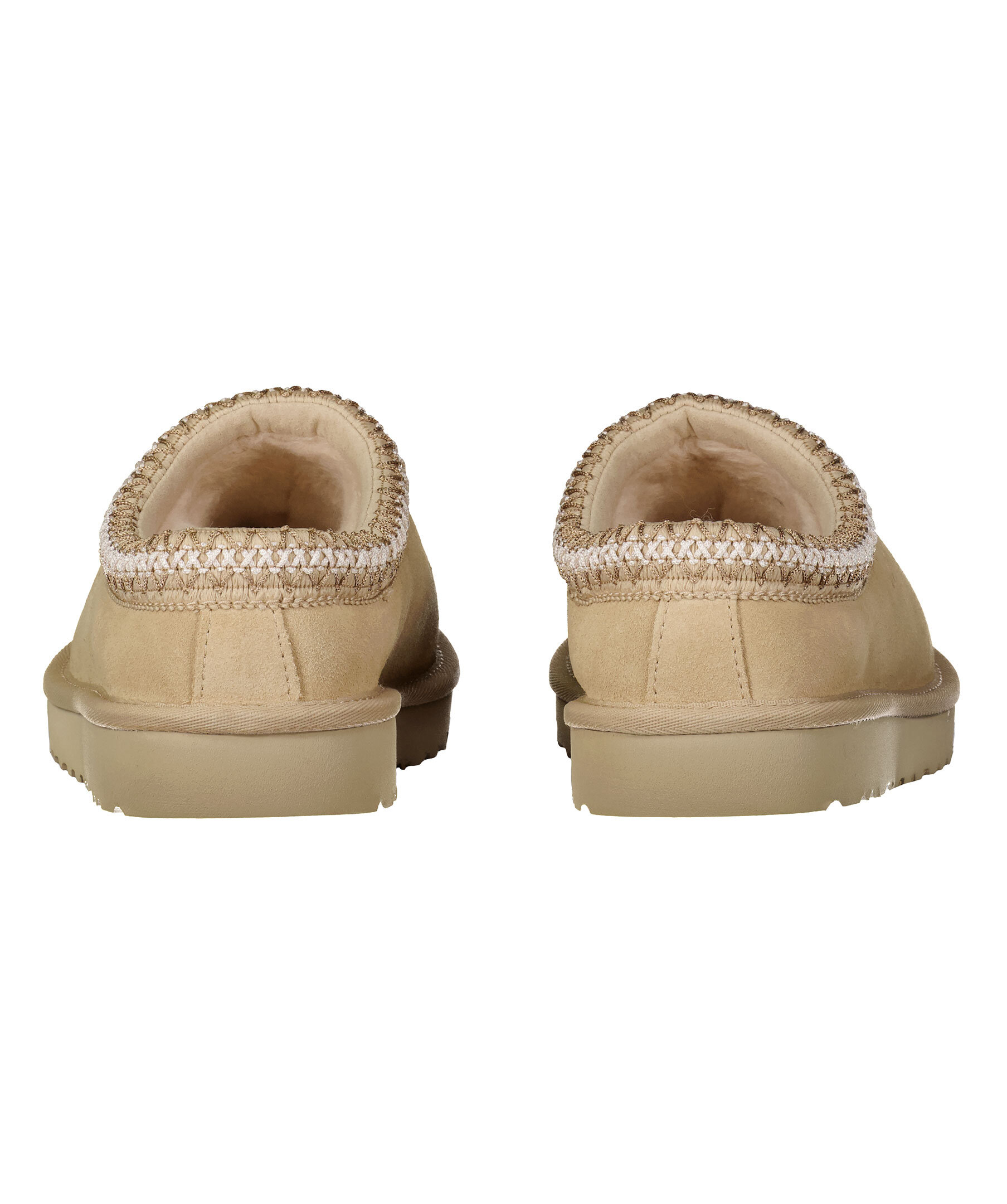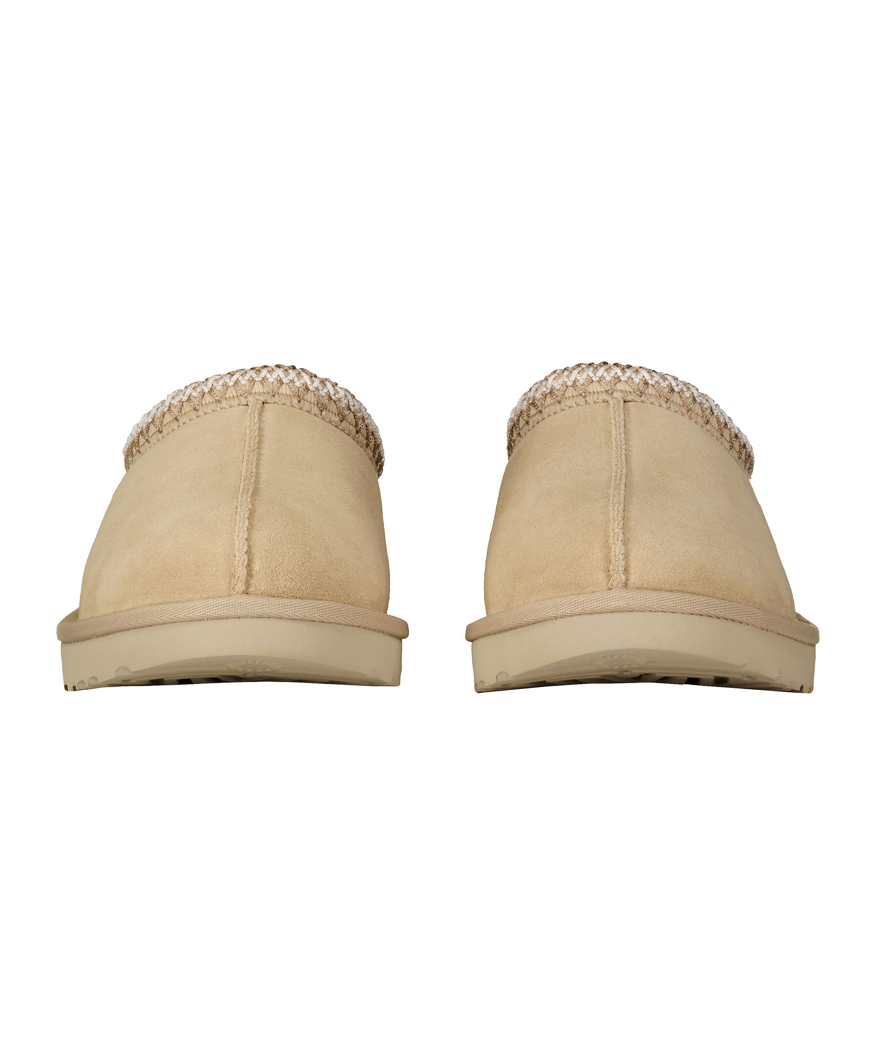 Ljusbeigea tofflor i mocka från UGG. Fodrade med mjuk ull. Flätat mönster vid tofflans öppning. Skon passar utmärkt att använda till ute- och inomhusbruk. Sulan är den klassiska lätta UGG sulan. De är inte tillverkade för slaskigt och blött klimat och rekommenderas att inte användas när det är blött ute. Man behöver behandla skorna med skoimpregnering regelbundet för att skorna ska hålla längre och stå emot väta bättre.