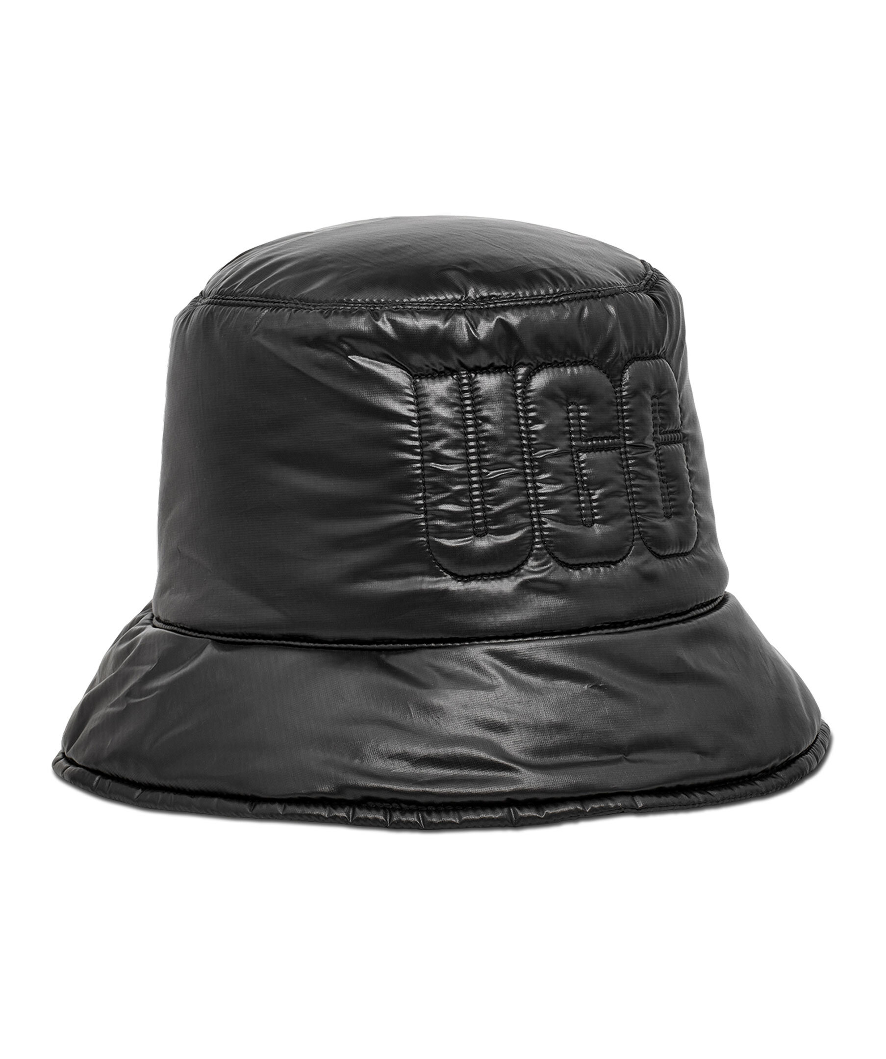 Svart fodrad bucket hat från UGG. Broderad logotyp mitt fram. Tillverkad i halvglansig polyester.