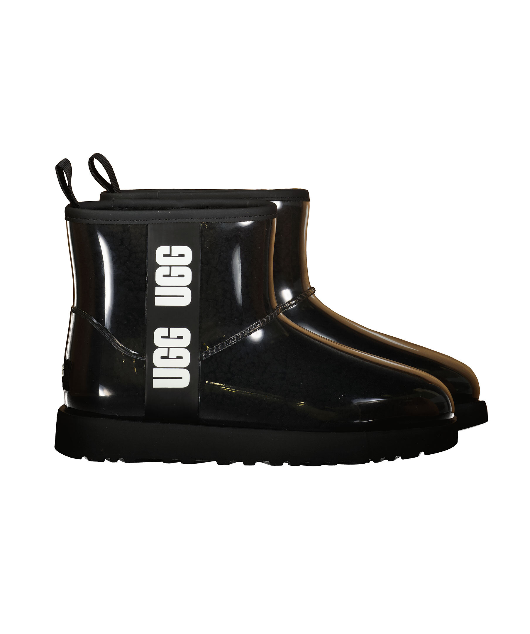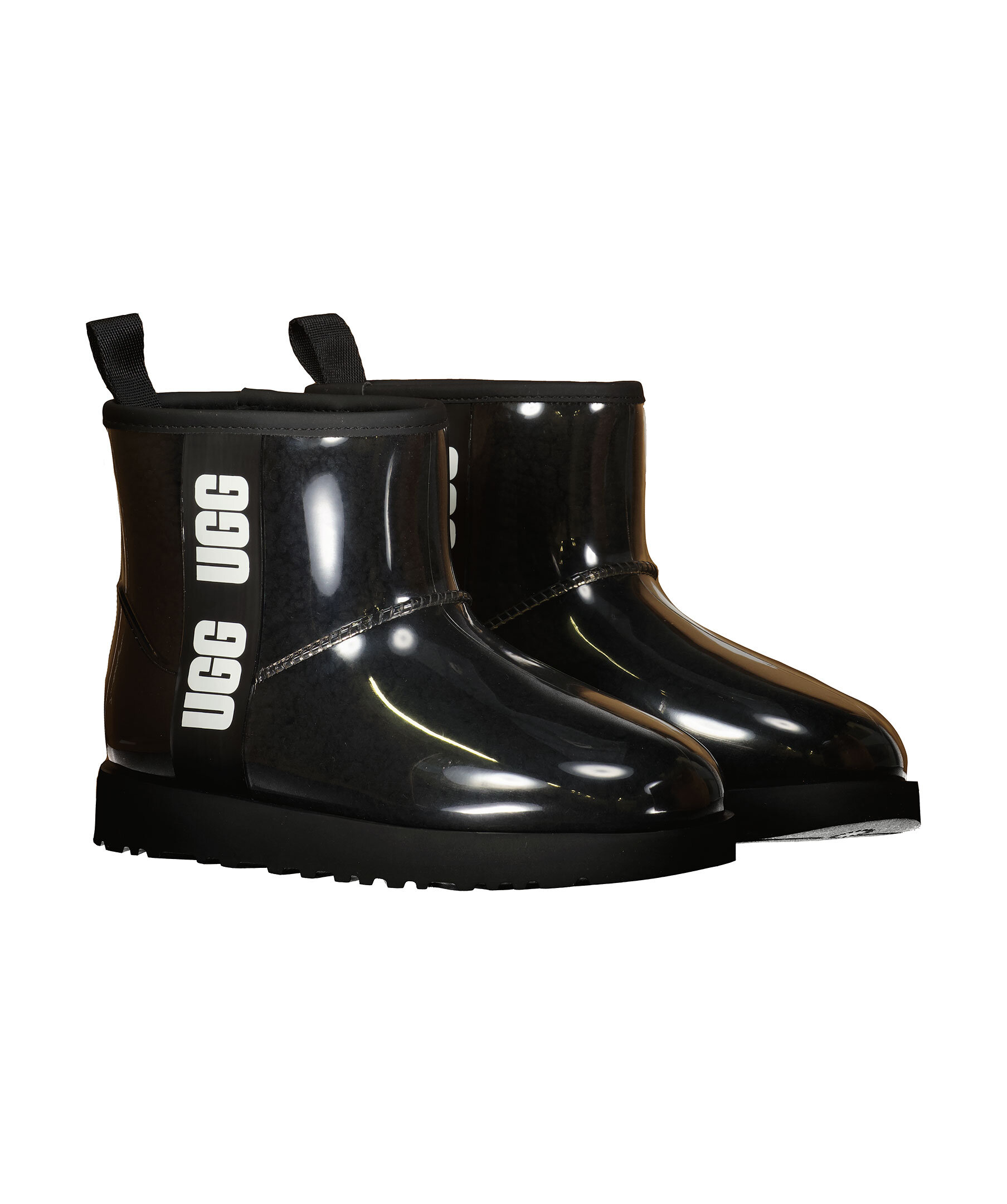 Transparenta boots från UGG där man ser det mysiga svarta ullfodret. Svarta detaljer med UGG-text på sidan, logotyp baktill. Tillverkade i genomskinligt gummi med svart ullfoder. Väderklassificerade ned till -20° och vattentäta.