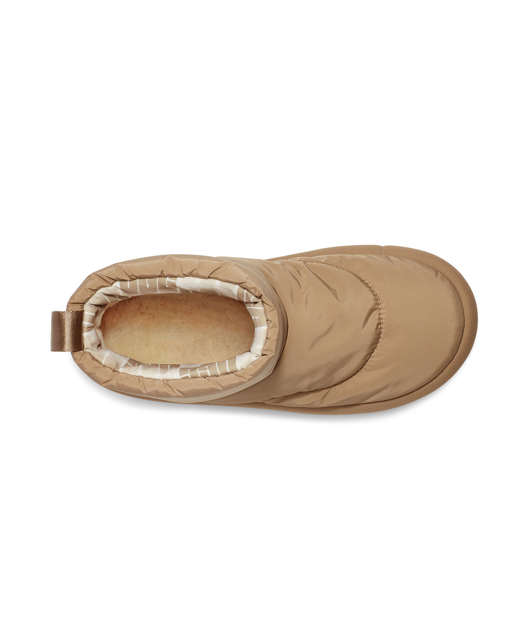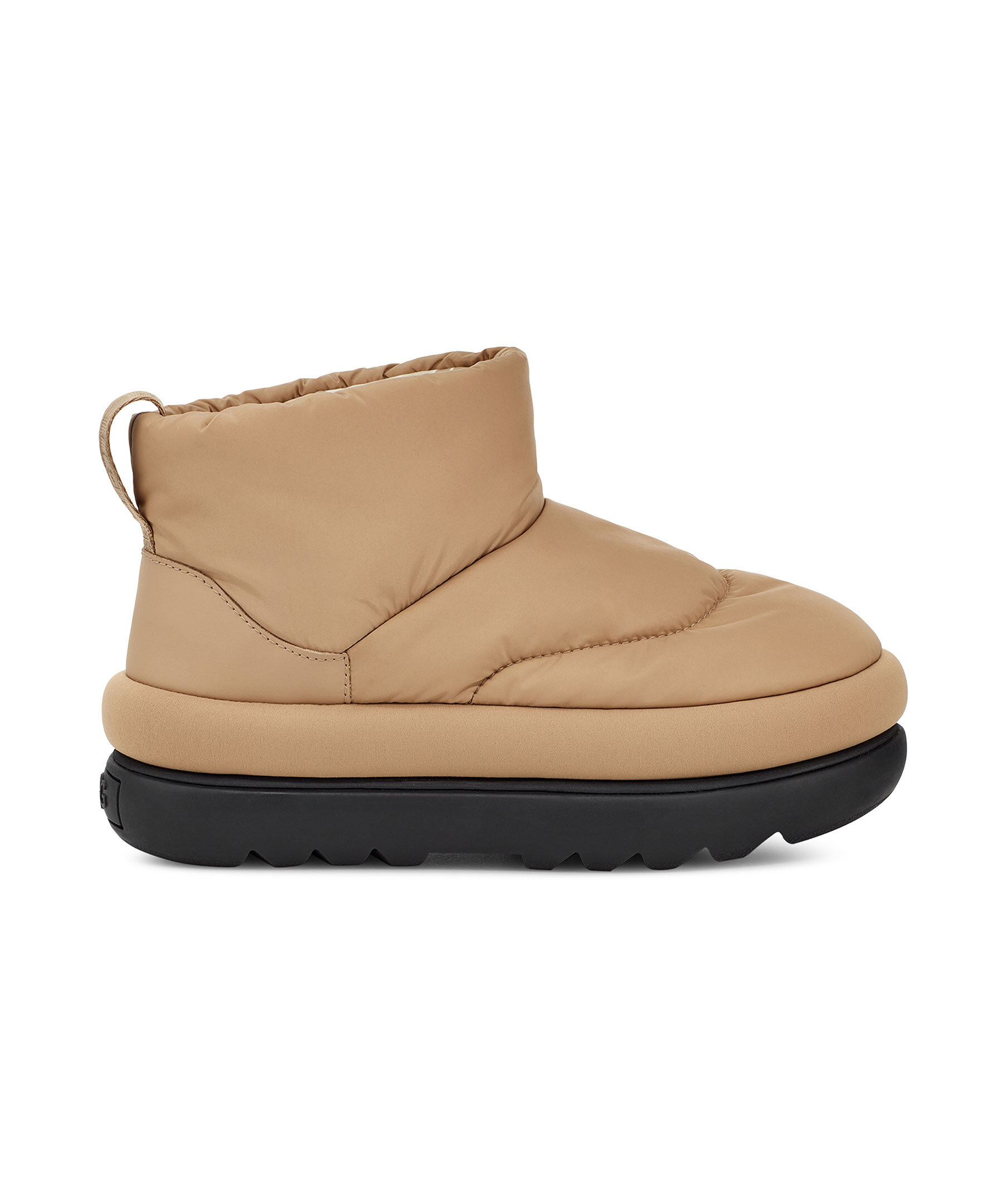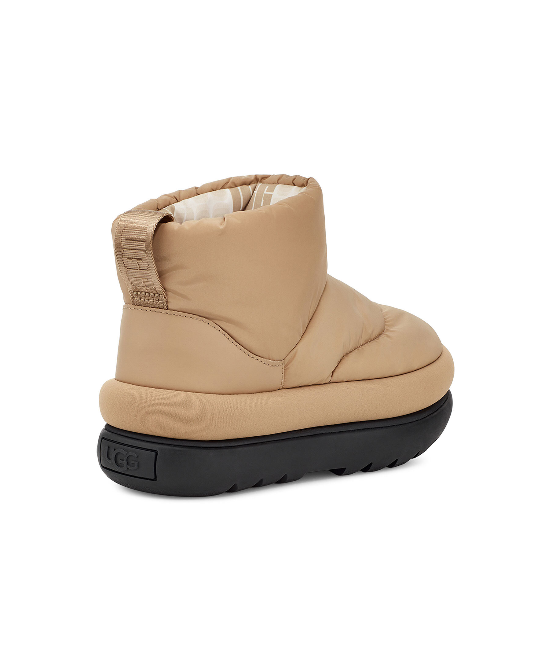Beigea Vadderade, quiltade skor från UGG. Grov sula i svart gummi med präglad logotyp baktill vid hälen. Vävt band med embossad logotyp på hälen. Skon är fodrad med en ull och lyocell blandning.