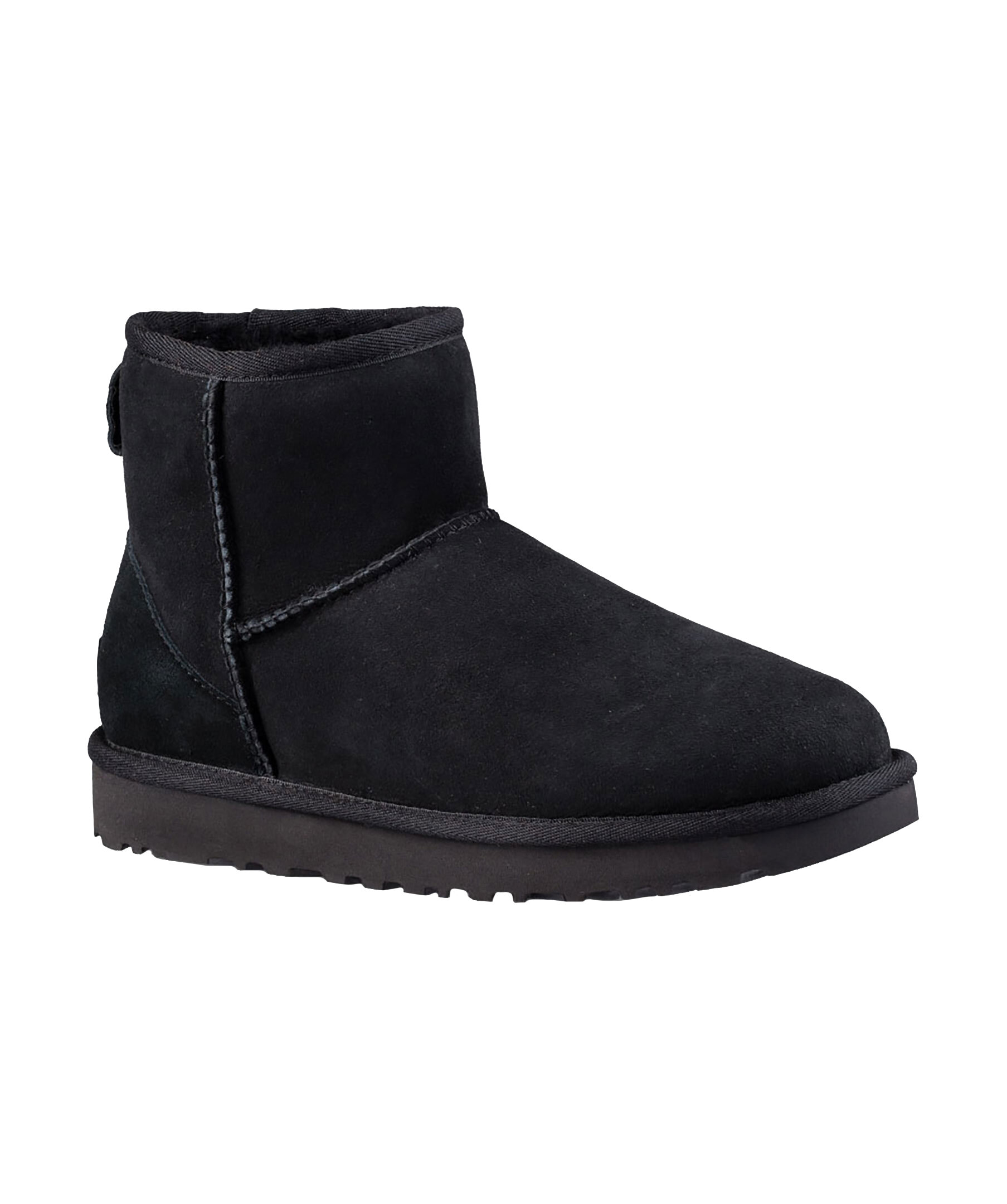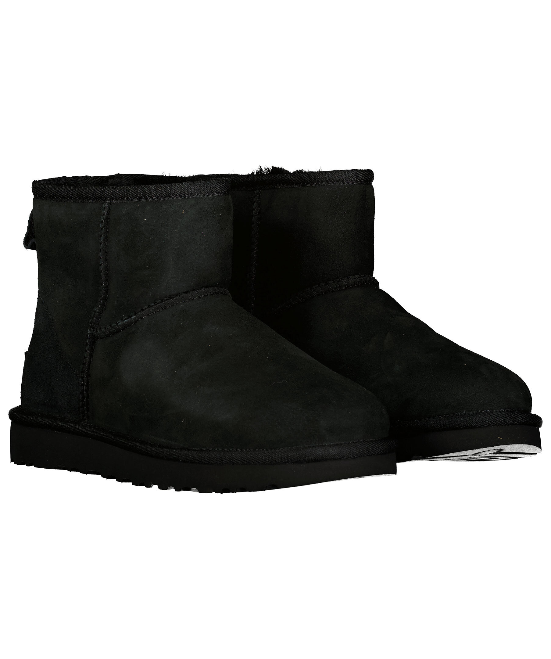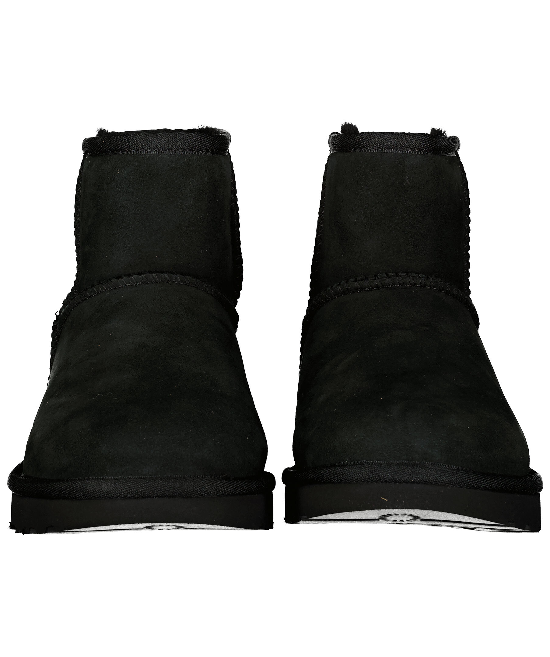 Klassiska boots i svart mocka från Ugg. Fodrade med fårskinn. Kortare skaft. Behandlad för att stöta bort lätta mängder vatten. Påsydd lapp med logotyp bak. Skorna är behandlade för att klara lätta mängder vatten. De är inte tillverkade för slaskigt och blött klimat och rekommenderas att inte användas när det är blött ute. Man behöver behandla skorna med skoimpregnering regelbundet för att skorna ska hålla längre och stå emot väta bättre.