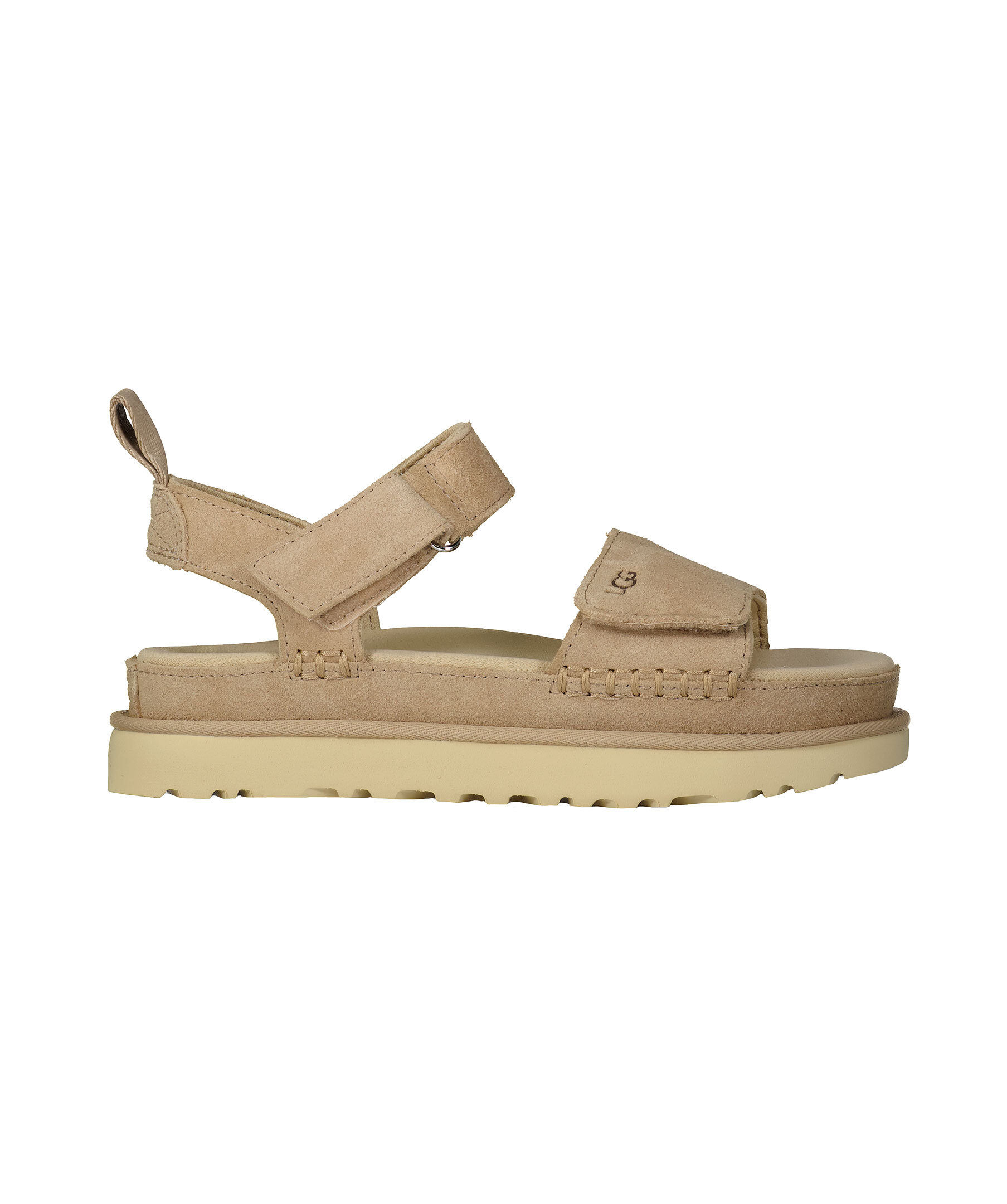Ljusbeige plattformssandal från UGG. Tillverkad av fin mocka och har två justerbara remmar upptill som justeras med kardborreband som ger en bra passform. Platåsula i skumgummi och Treadlite by UGG™ yttersula som ger bra stöd hela dagen. Sulan är 4,5 cm hög.