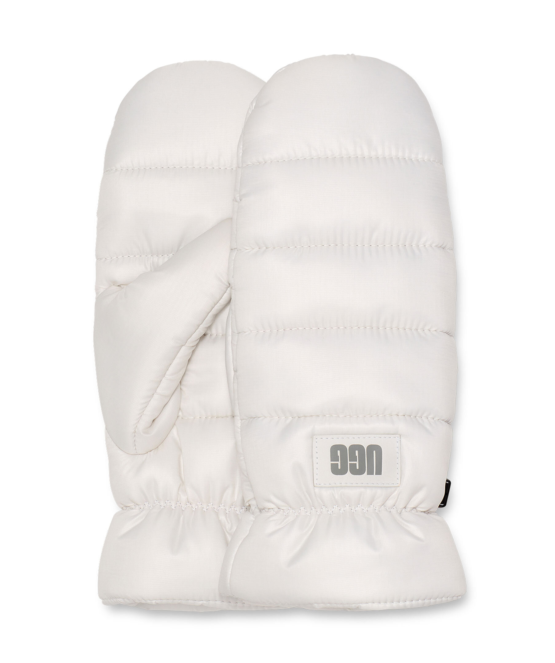 Vita, vadderade vantar från UGG. Tillverkade i quiltat allvädersmaterial, dessa snygga vantar har mysigt mikropälsfoder för värme och en ultramjuk känsla. UGG patch fram vid handleden med logotyp i äkta läder. Går att sätta ihop med spänne vid öppning så att det blir lättare att hålla koll på vantarna ihop när de inte används.