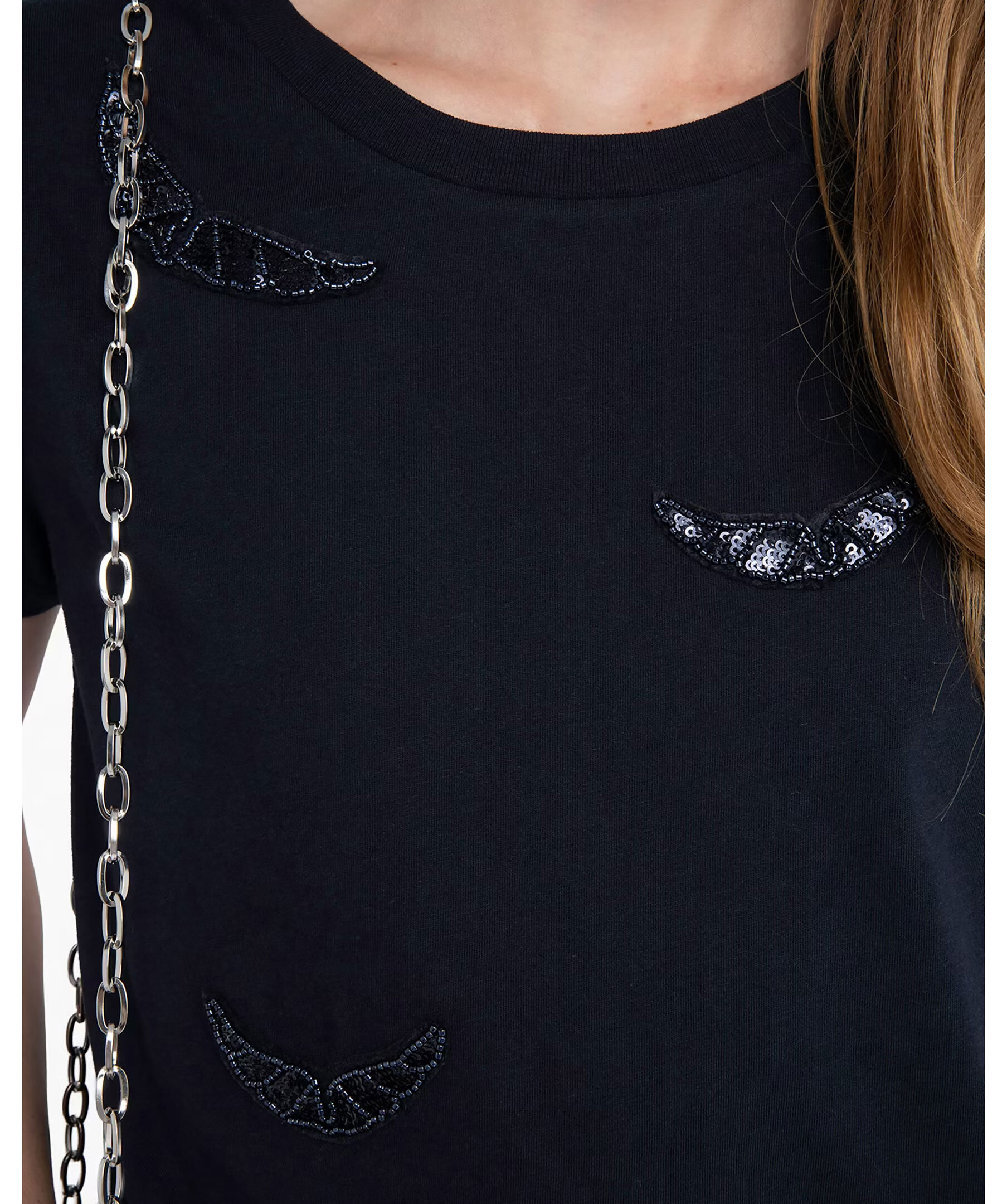 Svart t-shirt från Zadig & Voltaire med pärlbroderade vingar. Gjord i 100% bomull.