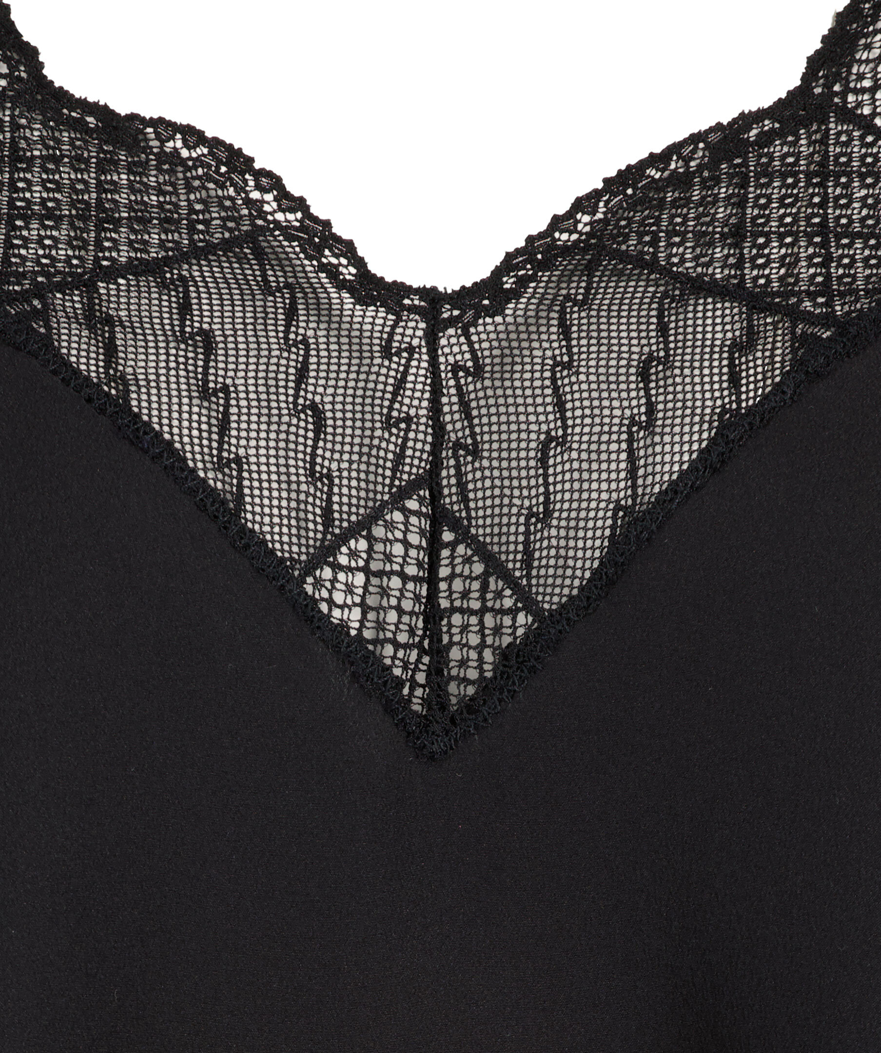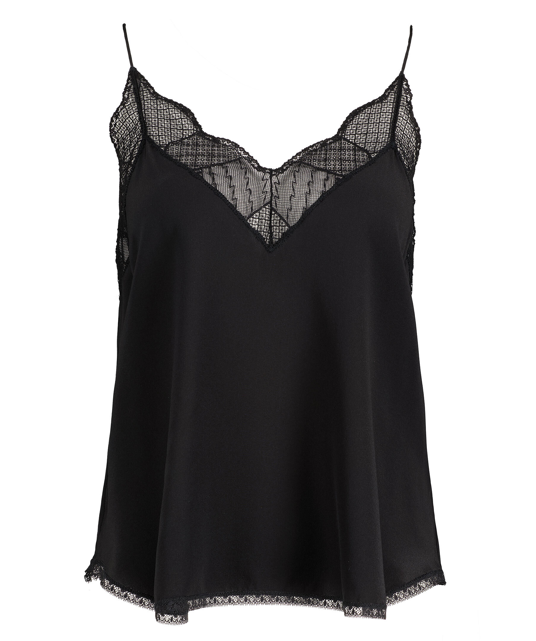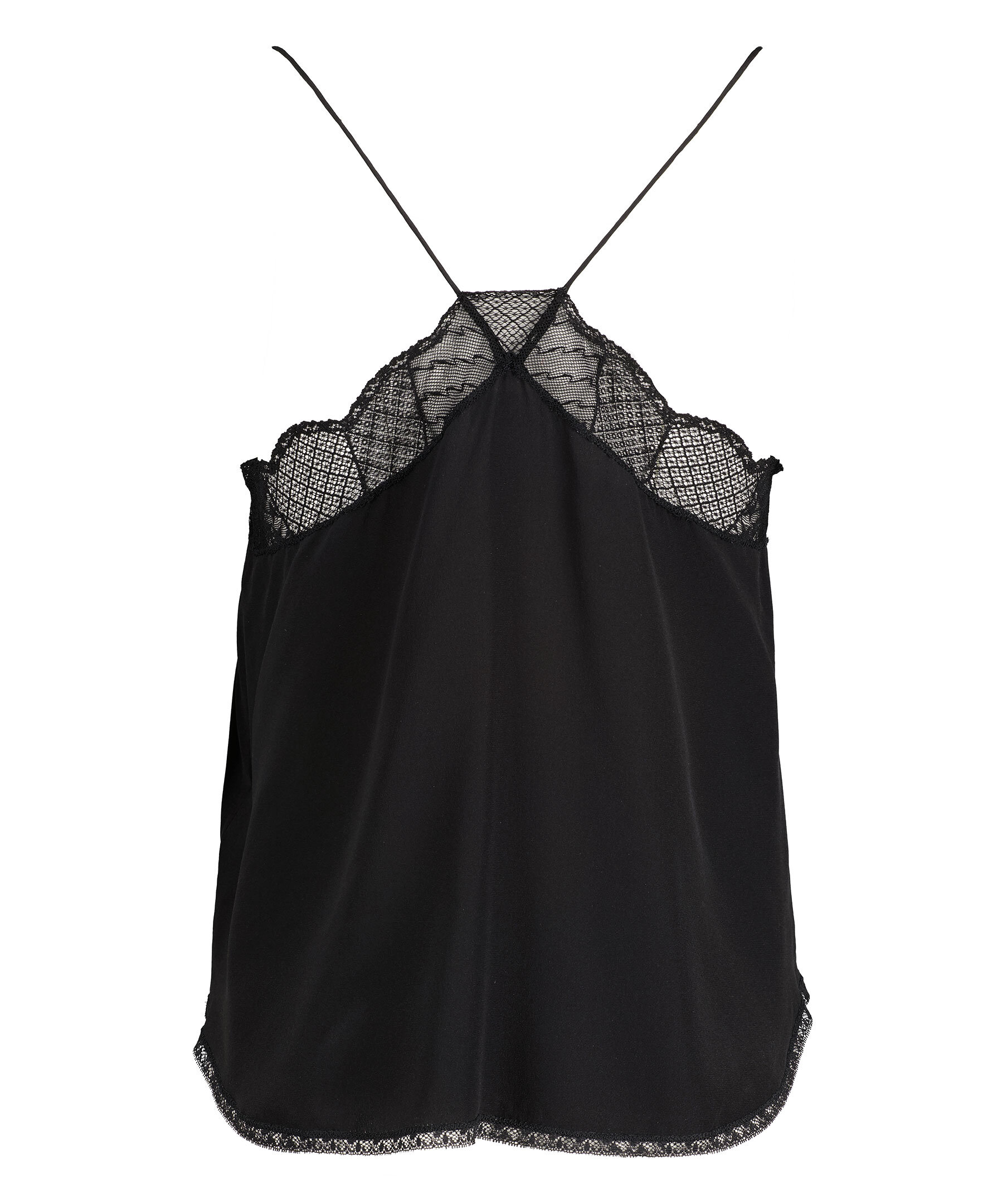 Svart Linne i silke från Zadig Voltaire. V-ringat med spetskant. Smala axelband. Tillverkat i 100% Silke. Avslappnad passform.
