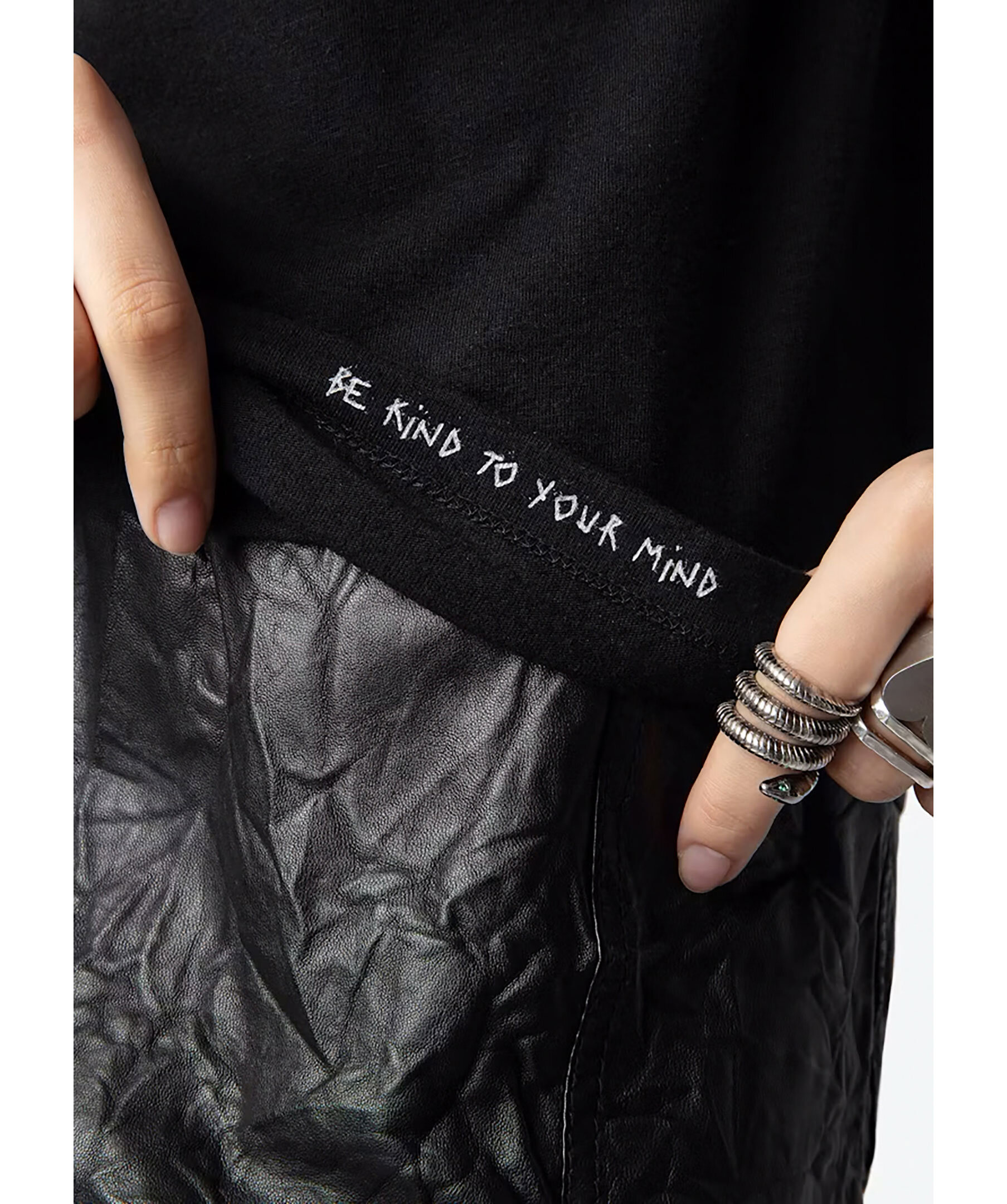 Svart t-shirt från Zadig Voltaire. T-shirten har diamante ZV-vingar på framsidan och dolt "Be Kind To Your Mind"-meddelande i nederkant. Tillverkad i en bomullsblandning.