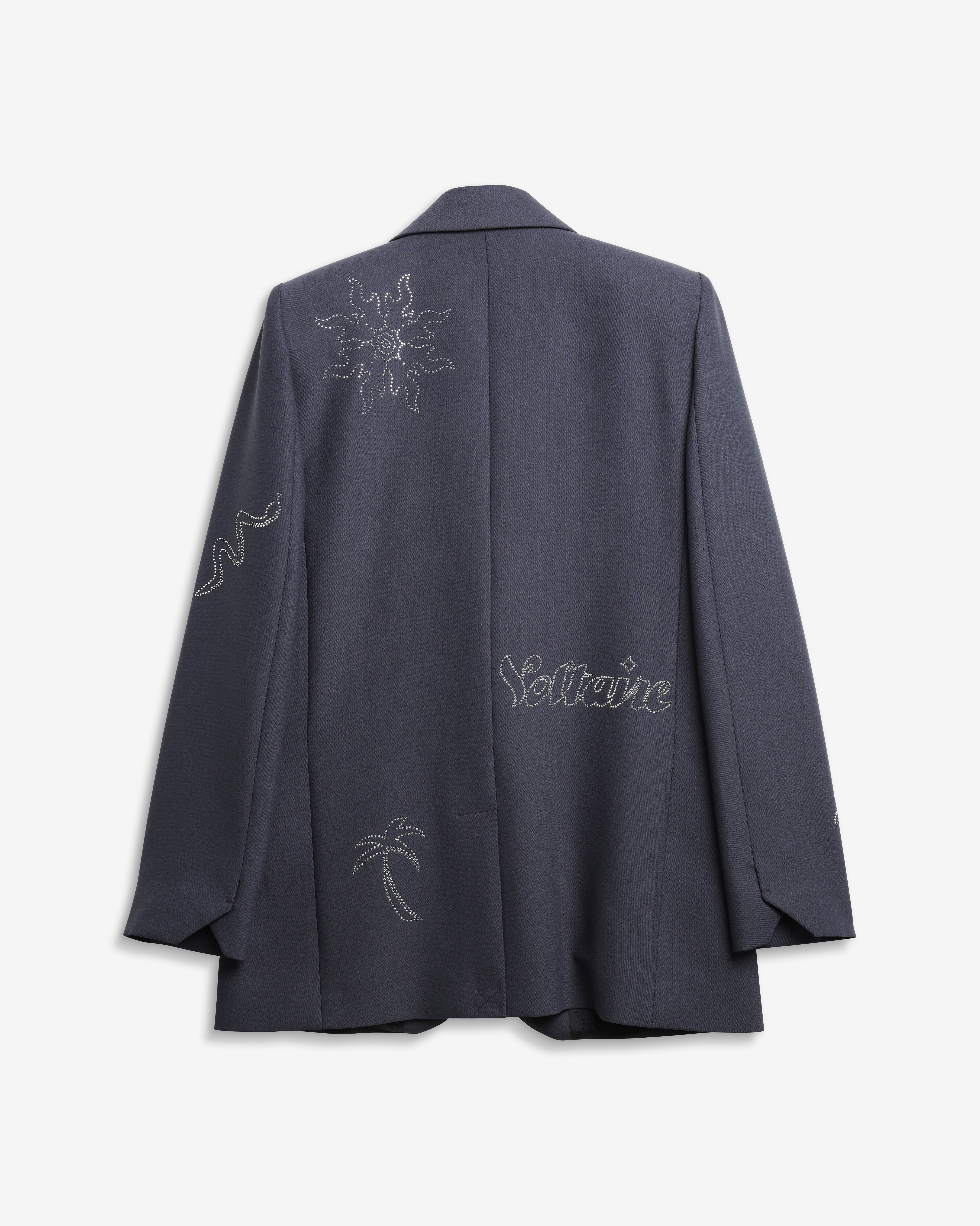 Kavaj från Zadig & Voltaire med rak silhuett och glittrande strassdetaljer som ger en modern twist. Den klassiska designen kombineras med dekorativa inslag för en sofistikerad men uttrycksfull look.