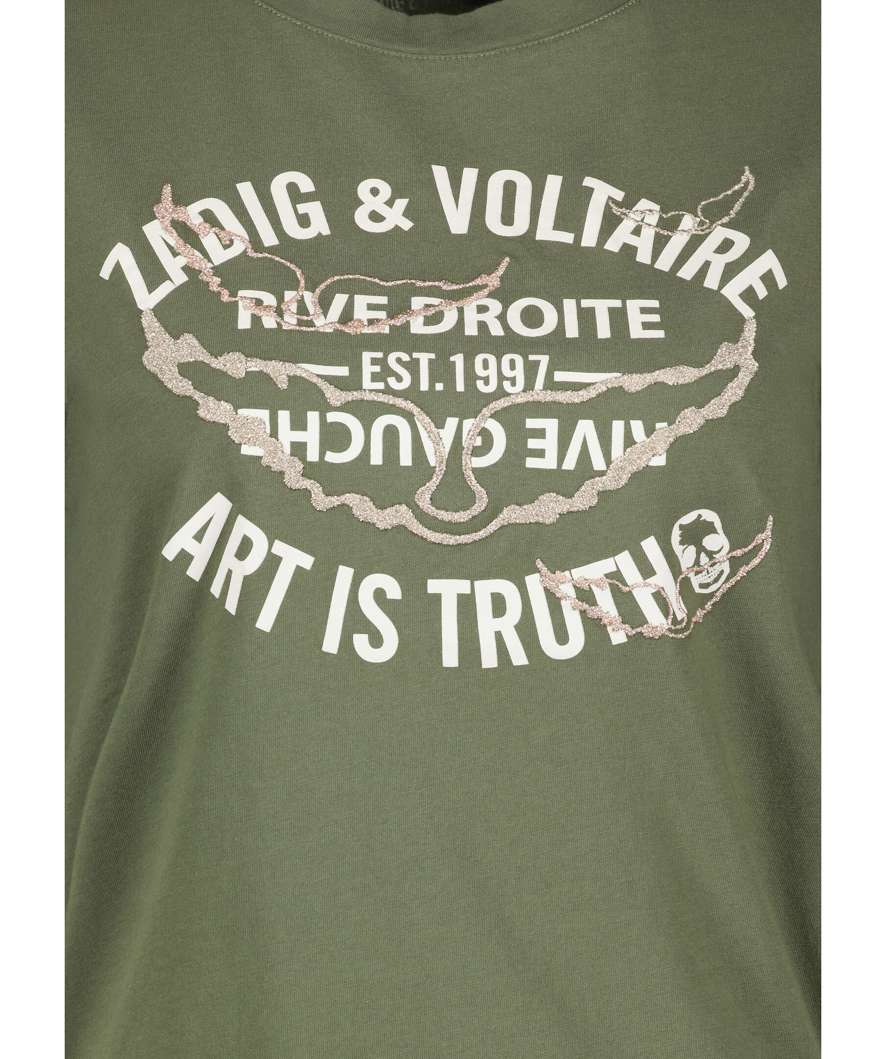 Mörkgrön t-shirt från Zadig Voltaire. T-shirten har rund halsringning, korta ärmar samt logotyp på framsidan och broderade, glittriga vingar. Tillverkad i ekologisk bomull.