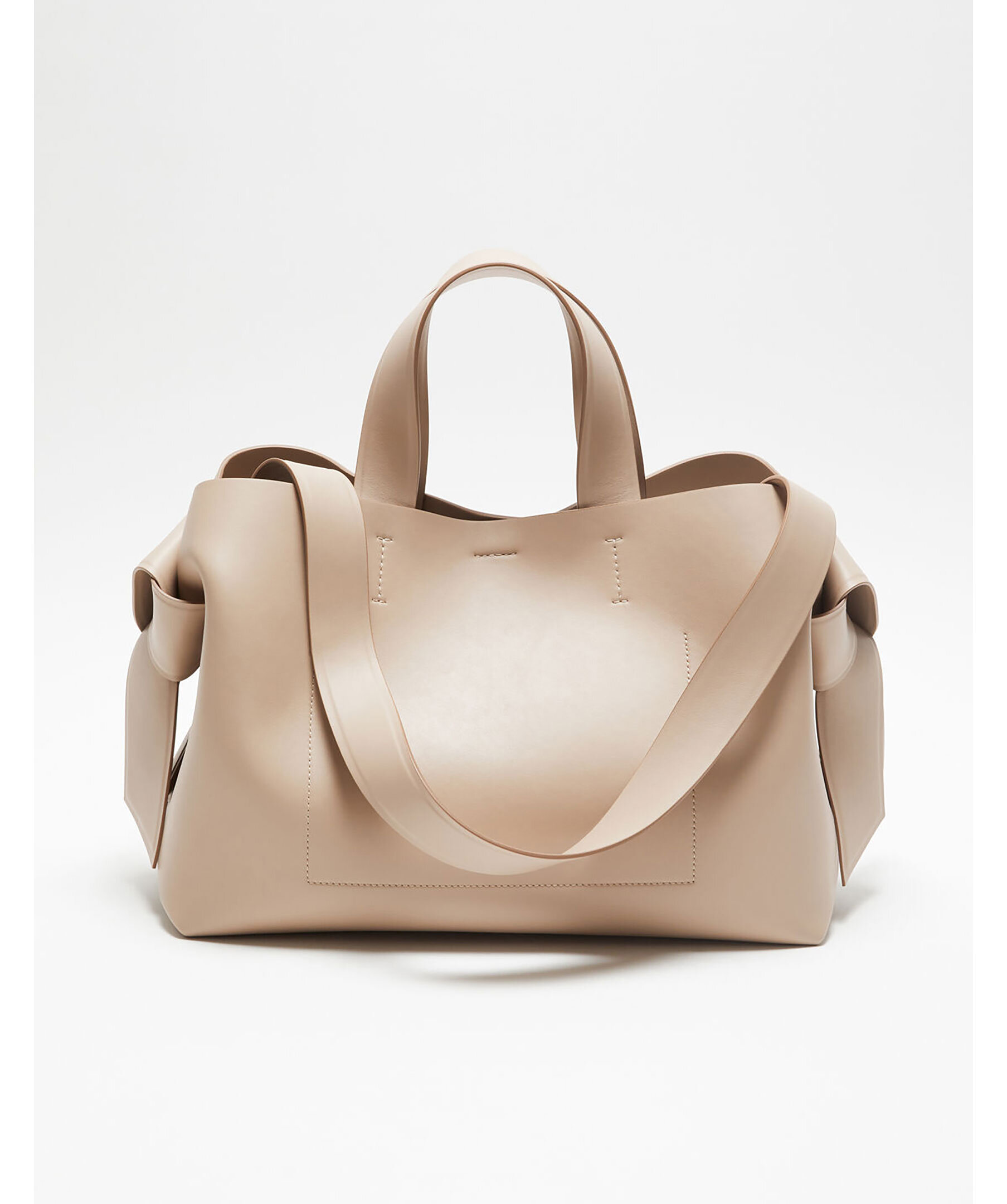Beige Musubi väska från Acne Studios i Tote modell. Huvudfacket stängs med tryckknapp, innerficka som stängs med dragkedja. Embossad logotyp. Avtagbart axelband. Väskans mått: L 34,5 cm H 26 cm D 15,5 cm.