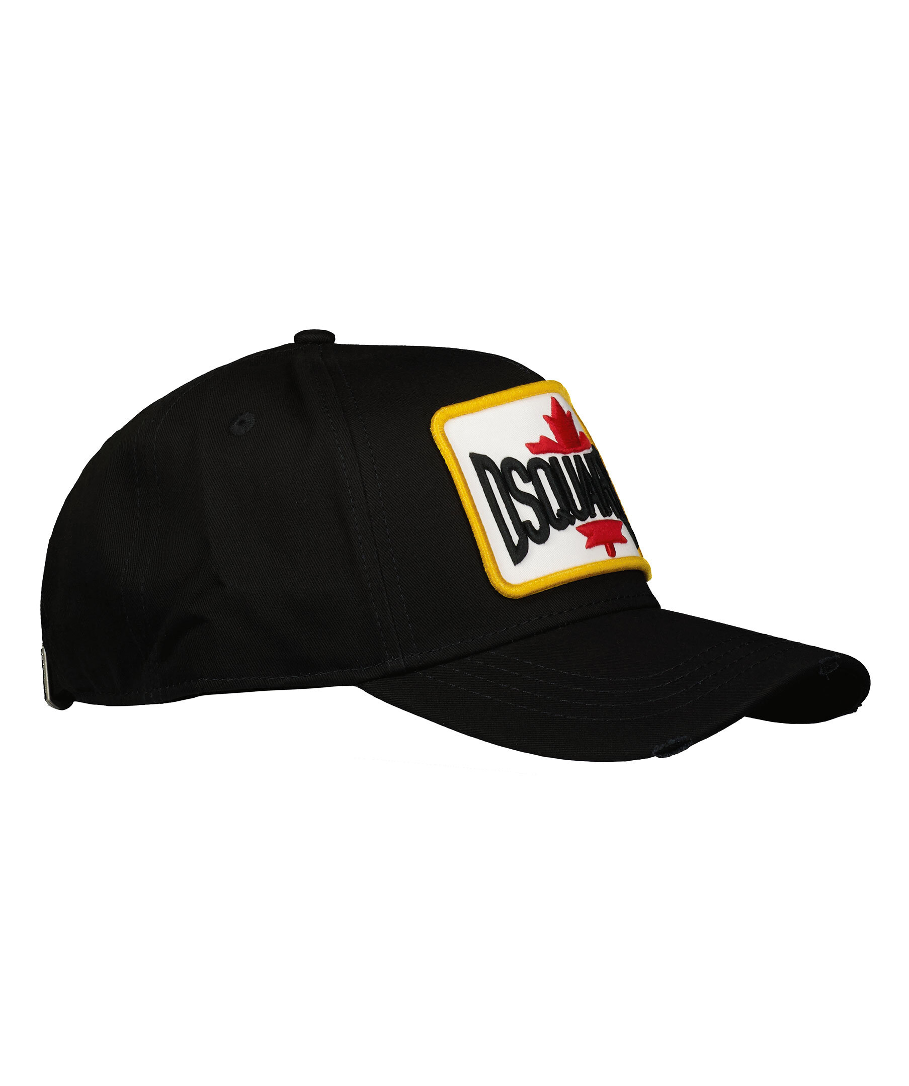 Svart keps från Dsquared2. Stor broderad patch framtill med logotyp samt broderad text och justerbart spänne baktill. Medvetna slitningar på skärmen.