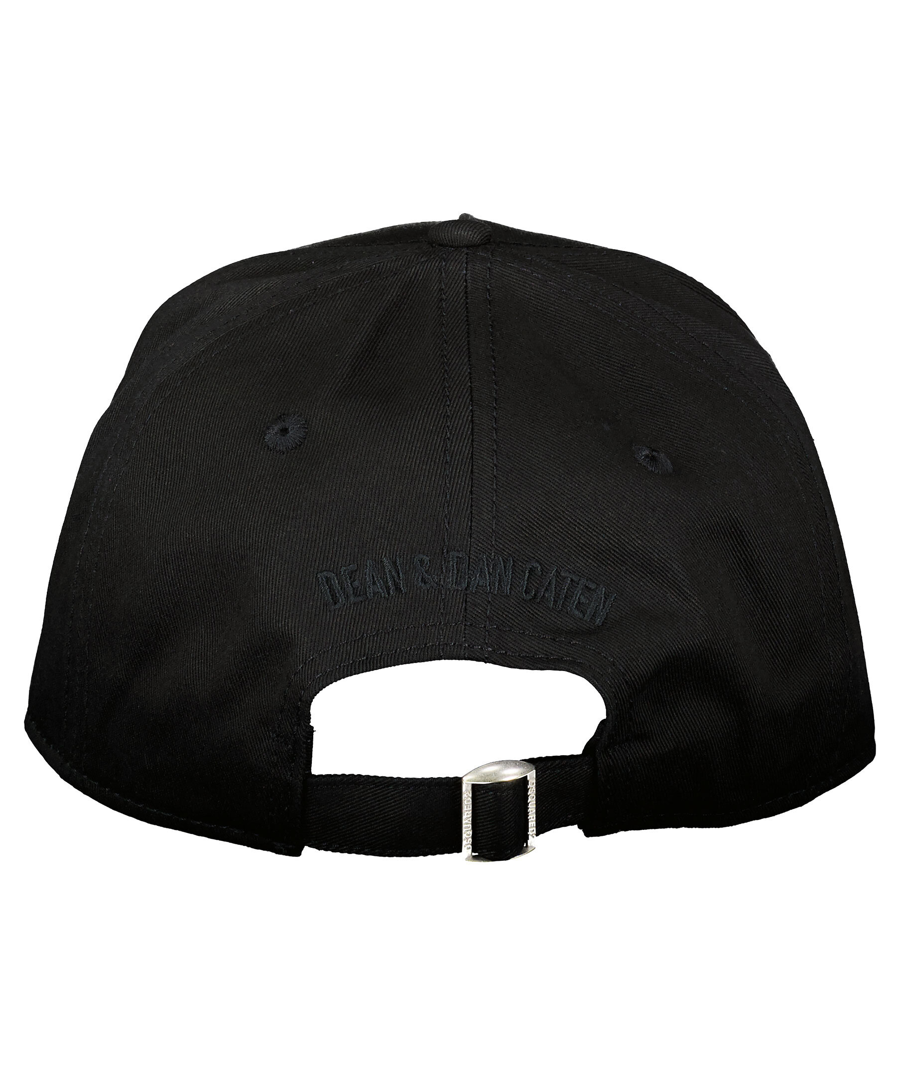 Svart keps från Dsquared2. Tillverkad i 100% bomull, har en svart, broderad logotyp fram och ett reglerbart spänne bak.