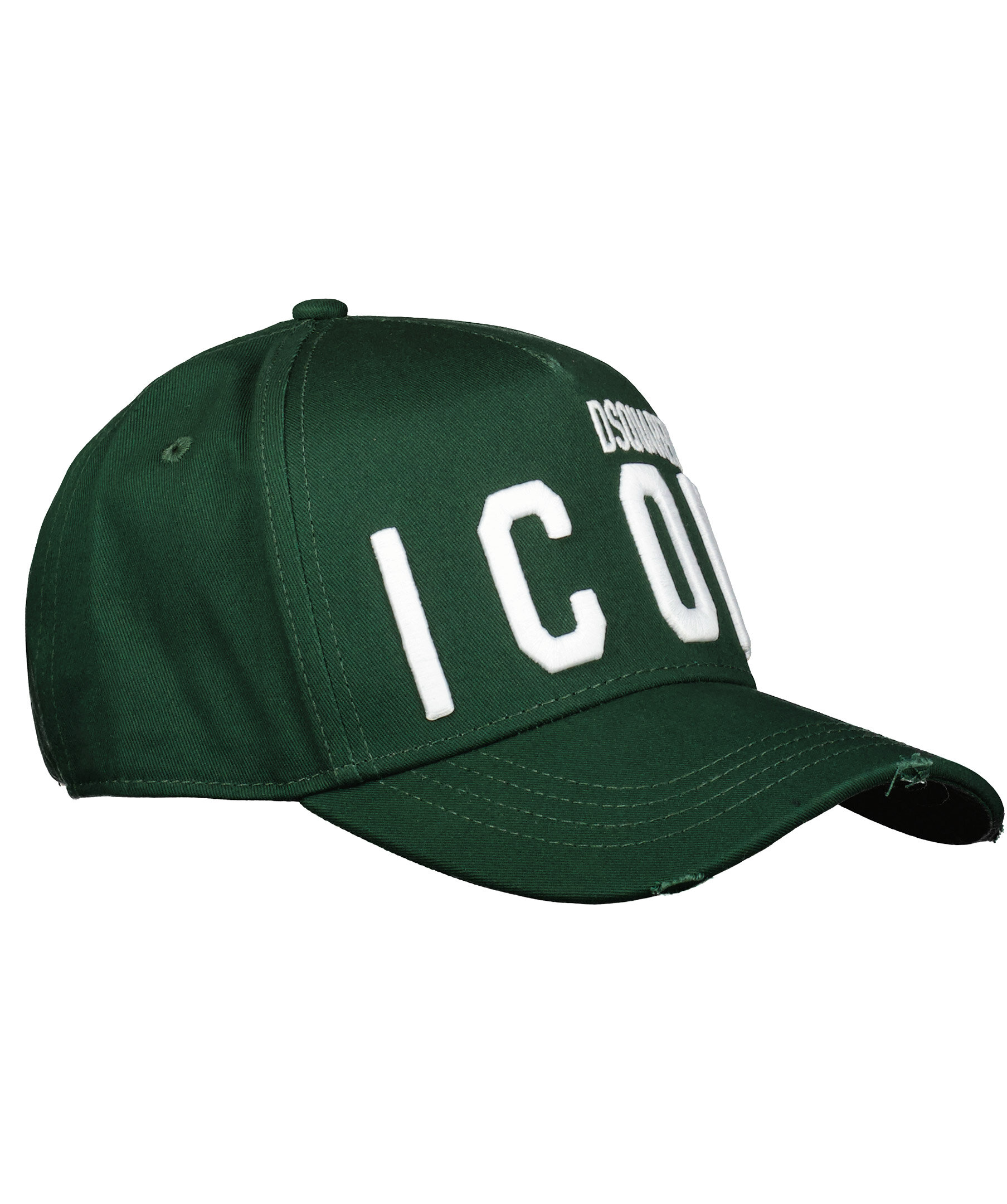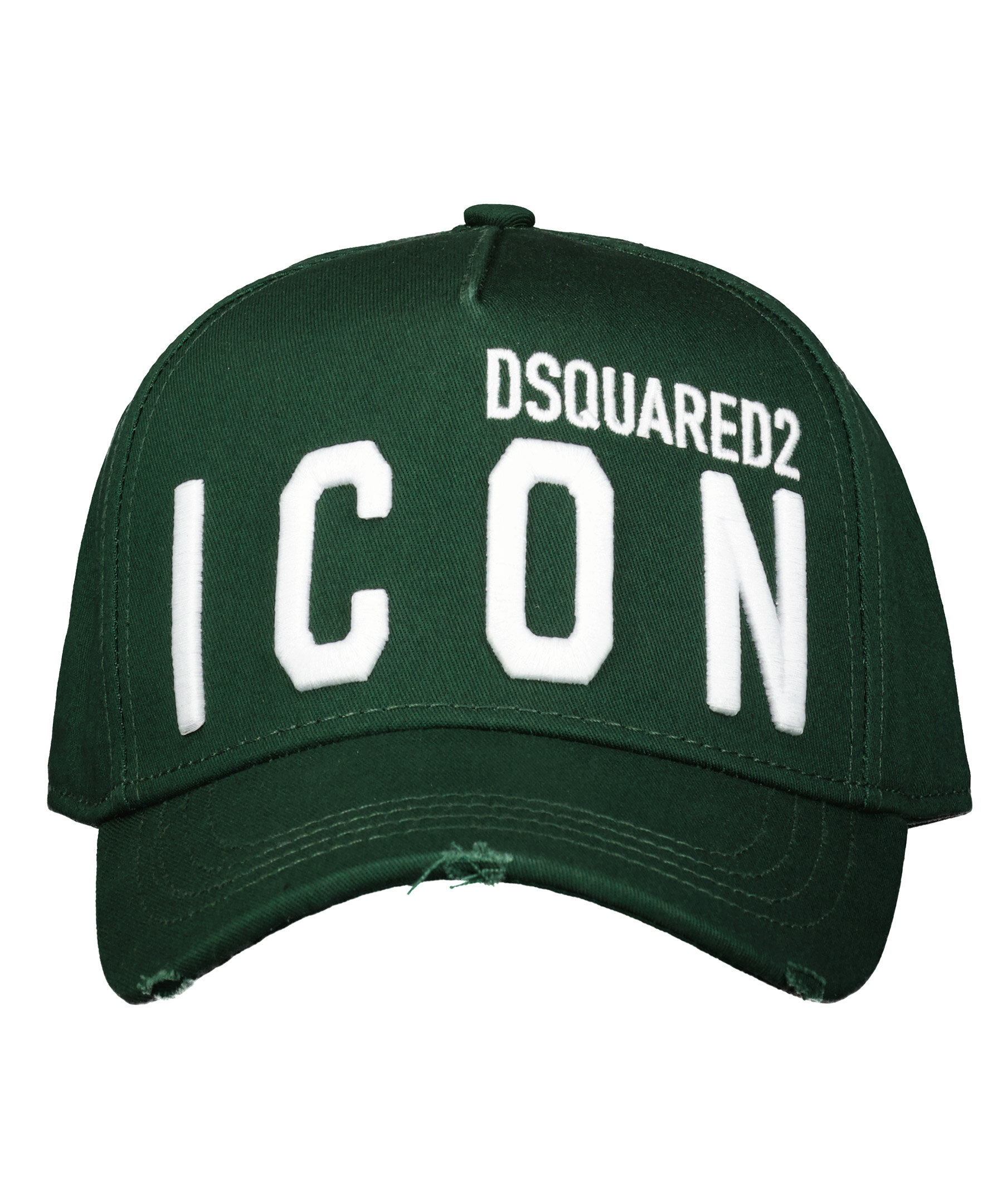 Mörkgrön keps från Dsquared2. Tillverkad i 100% bomull, Vitt broderad logotyp fram, reglerbart spänne bak. Medvetet slitna detaljer på skärmens kanter.
