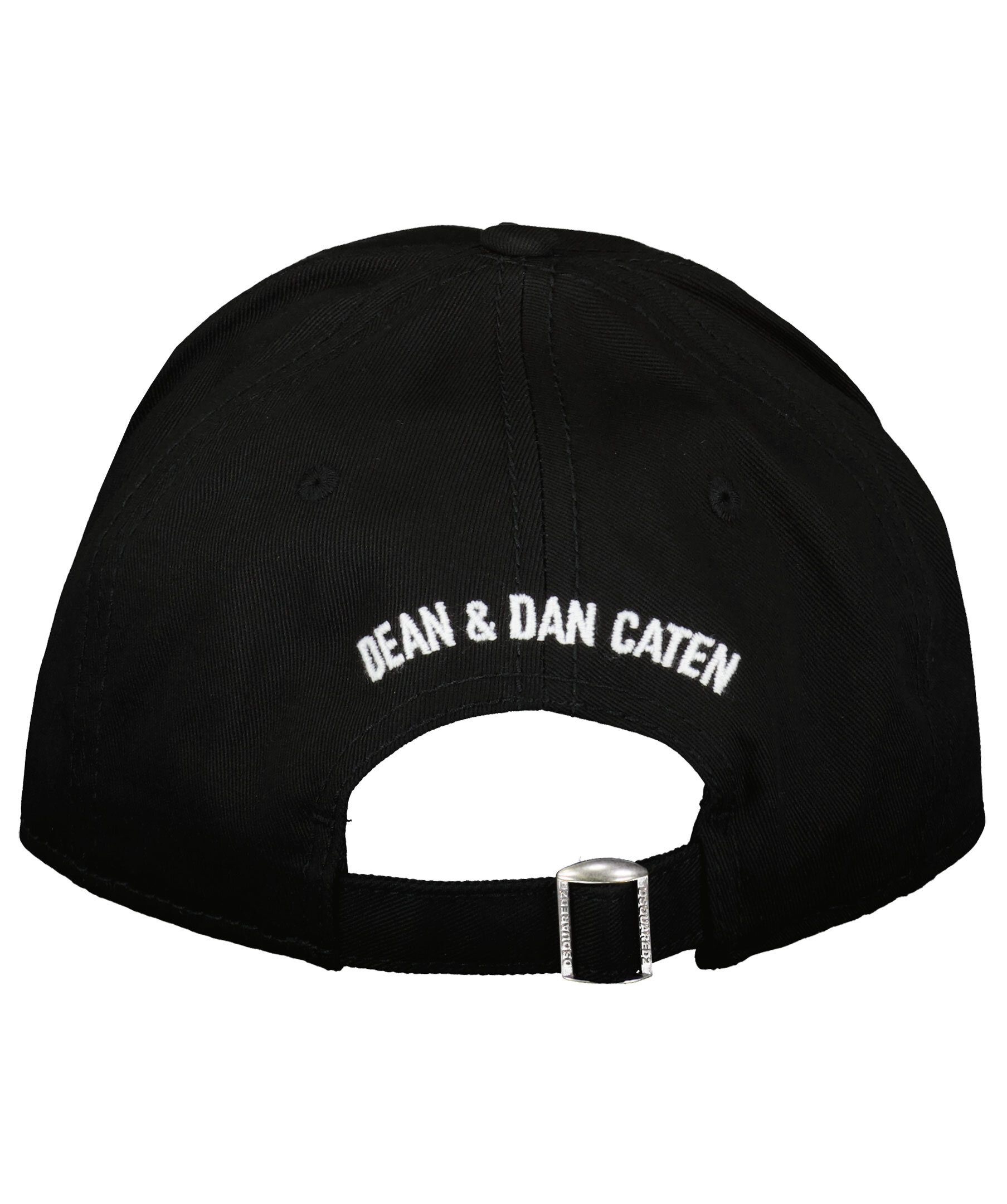 Svart keps från Dsquared2. Tillverkad i 100% bomull, logotyp fram, reglerbart spänne bak.