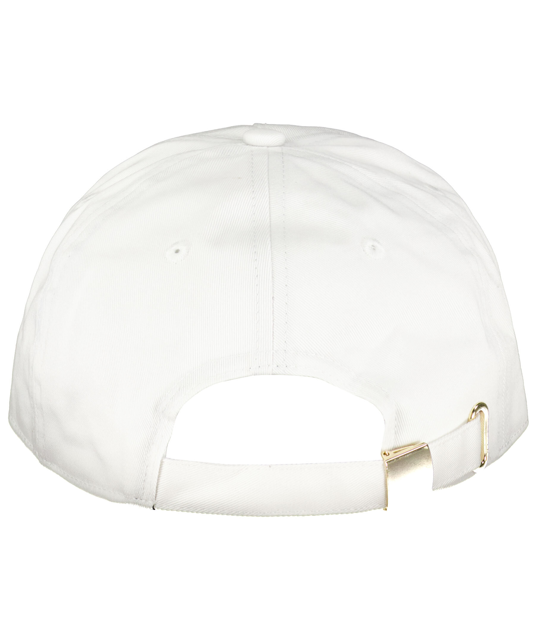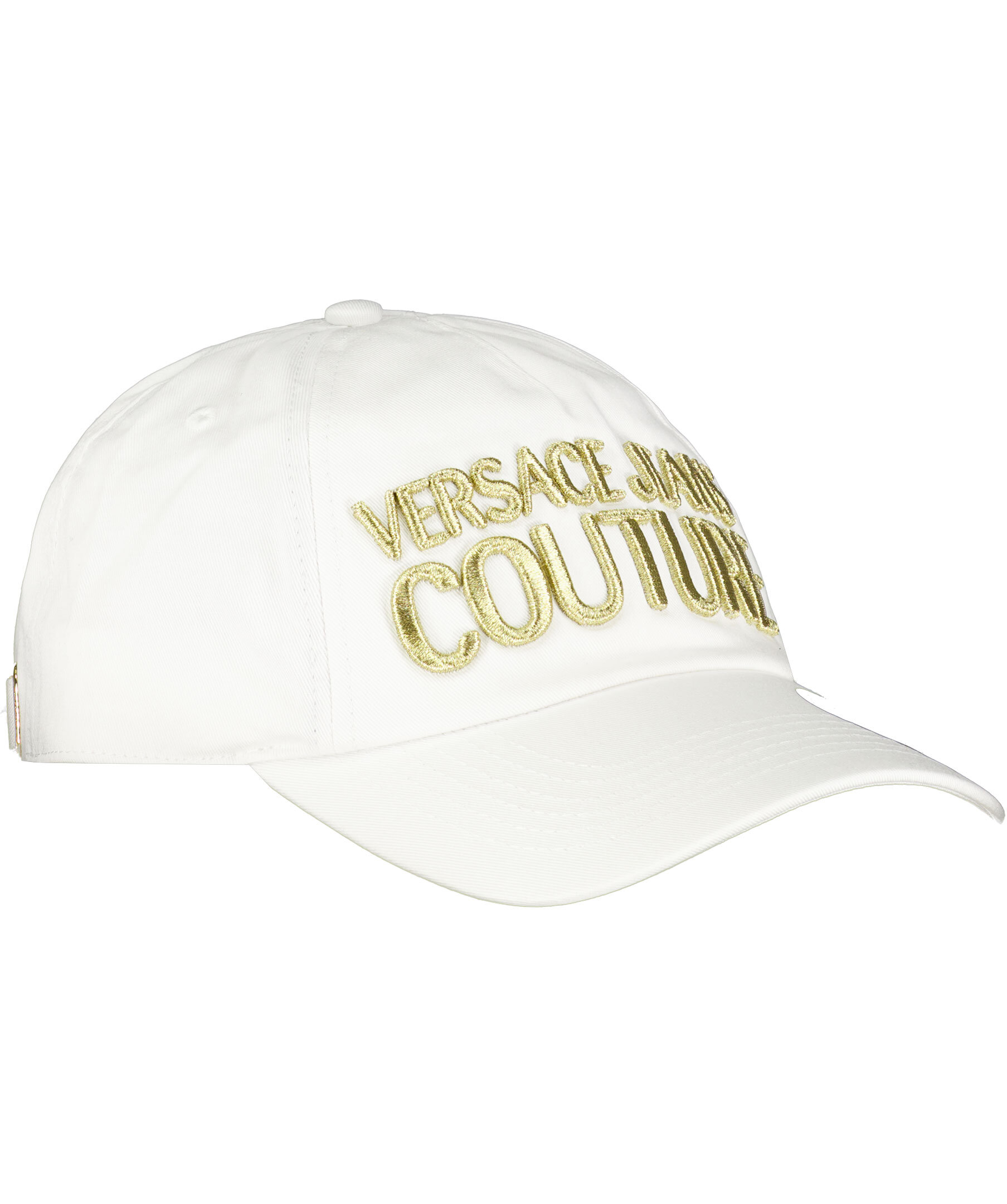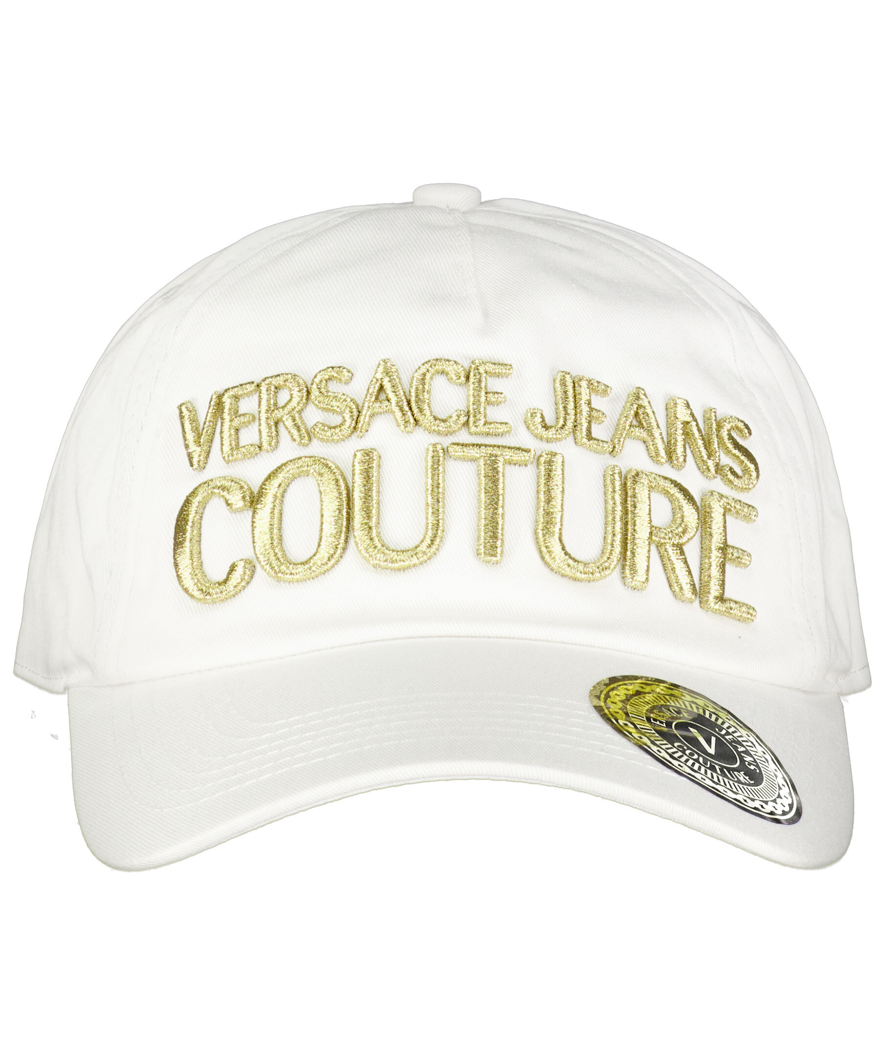 Vit keps från Versace Jeans Couture. Tillverkad i 100% bomull. Guldfärgad broderad logotyp framtill, reglerbart spänne bak.