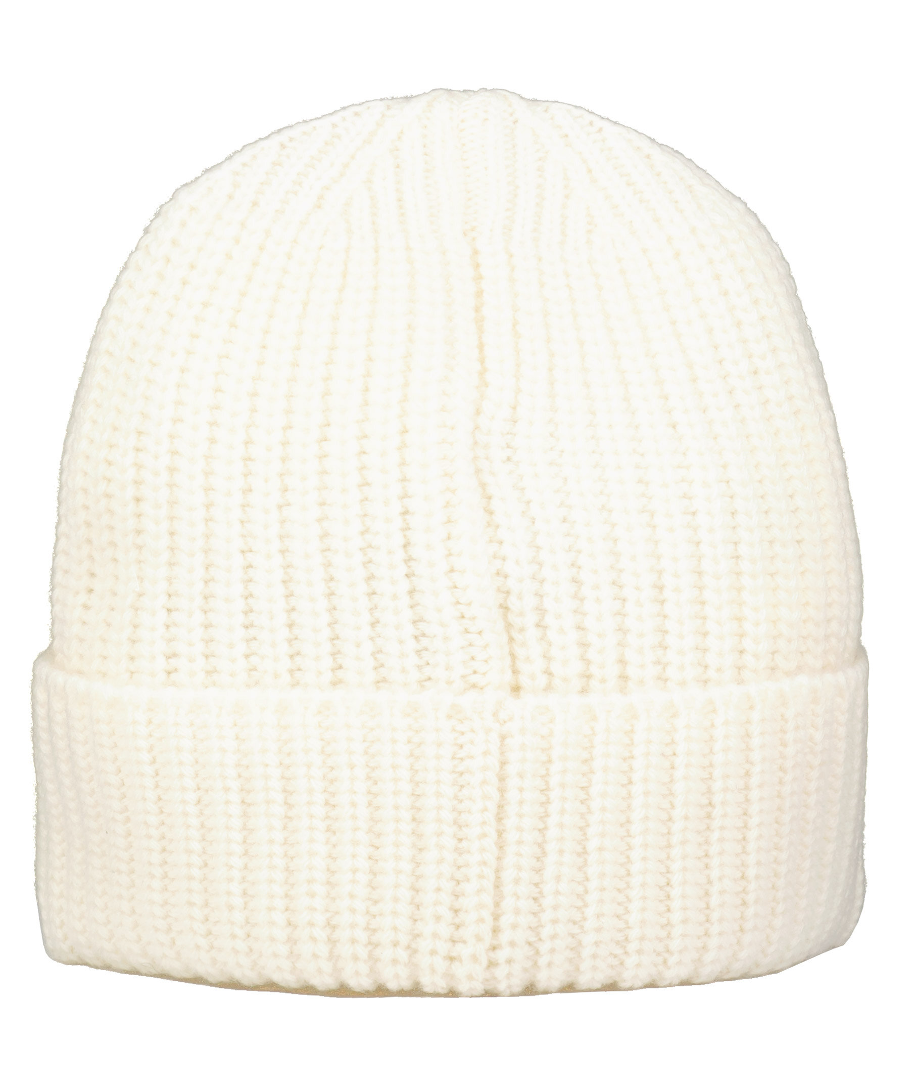 Off-white ribbstickad mössa i ull från Stone Island. Mössan har en uppvikt kant med broderad logga på framsidan.