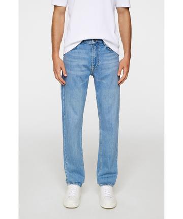 Skillnaden är att slimfit jeans sitter tightare runt benen medan straight jeans har en mer rak passform.