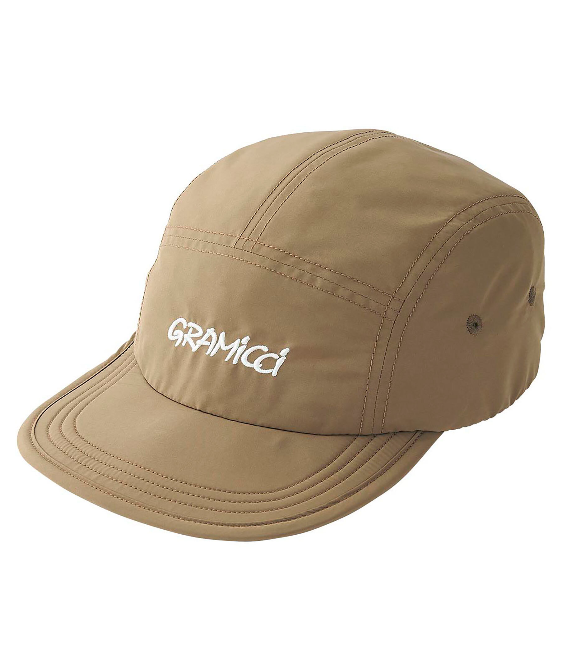 Mörkbeige lättviktskeps från Gramicci. Kepsen är gjord i ett vattentåligt material som även blockerar vind. Reglerbart spänne baktill. Broderad logotyp i vitt på framsidan.