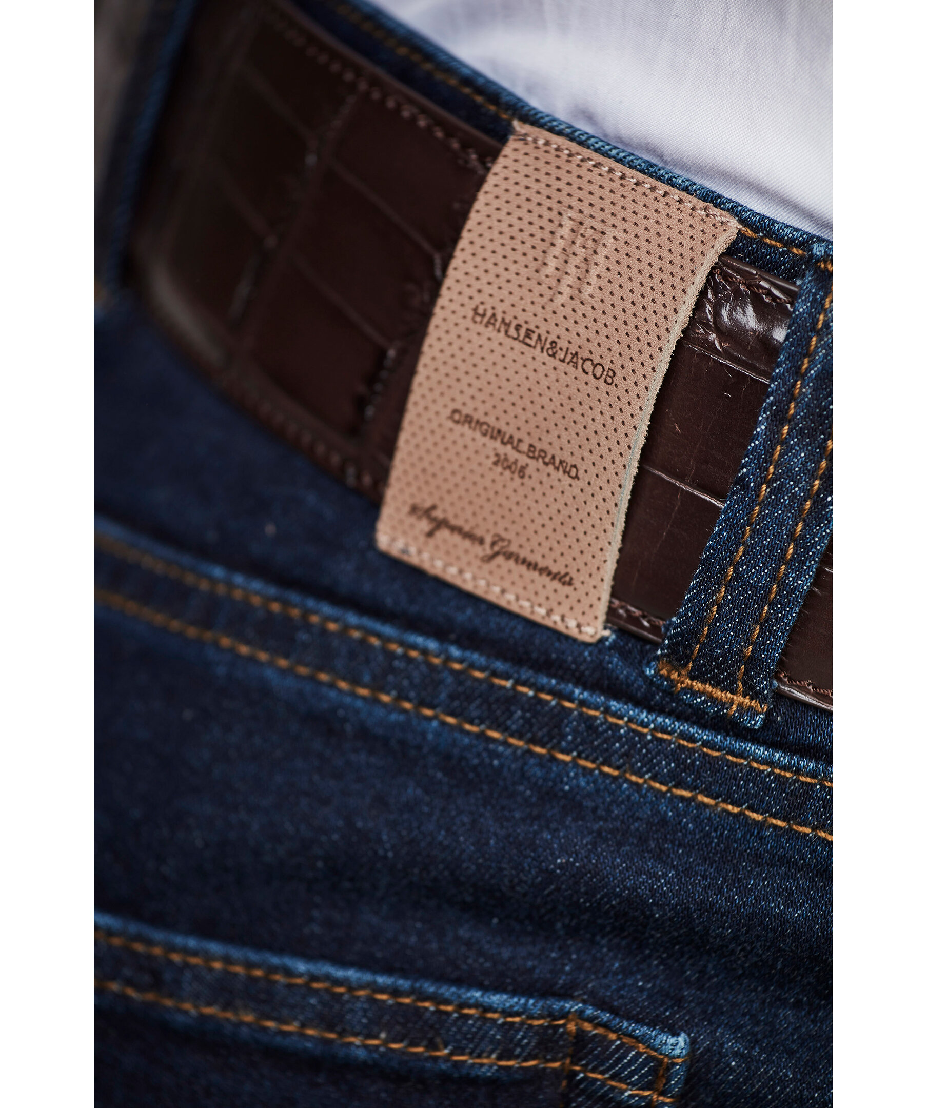 Jeansbyxa med stretch. Detta är Hansen & Jacobs i särklass bäst sålda jeans för hösten 2021. Byxan har en riktigt mjuk och skön känsla, när du fått på dig dessa vill du aldrig ta av dem. Hansen & Jacobs populära jeansmodell med normal midjehöjd kommer här i en perfekt tvät