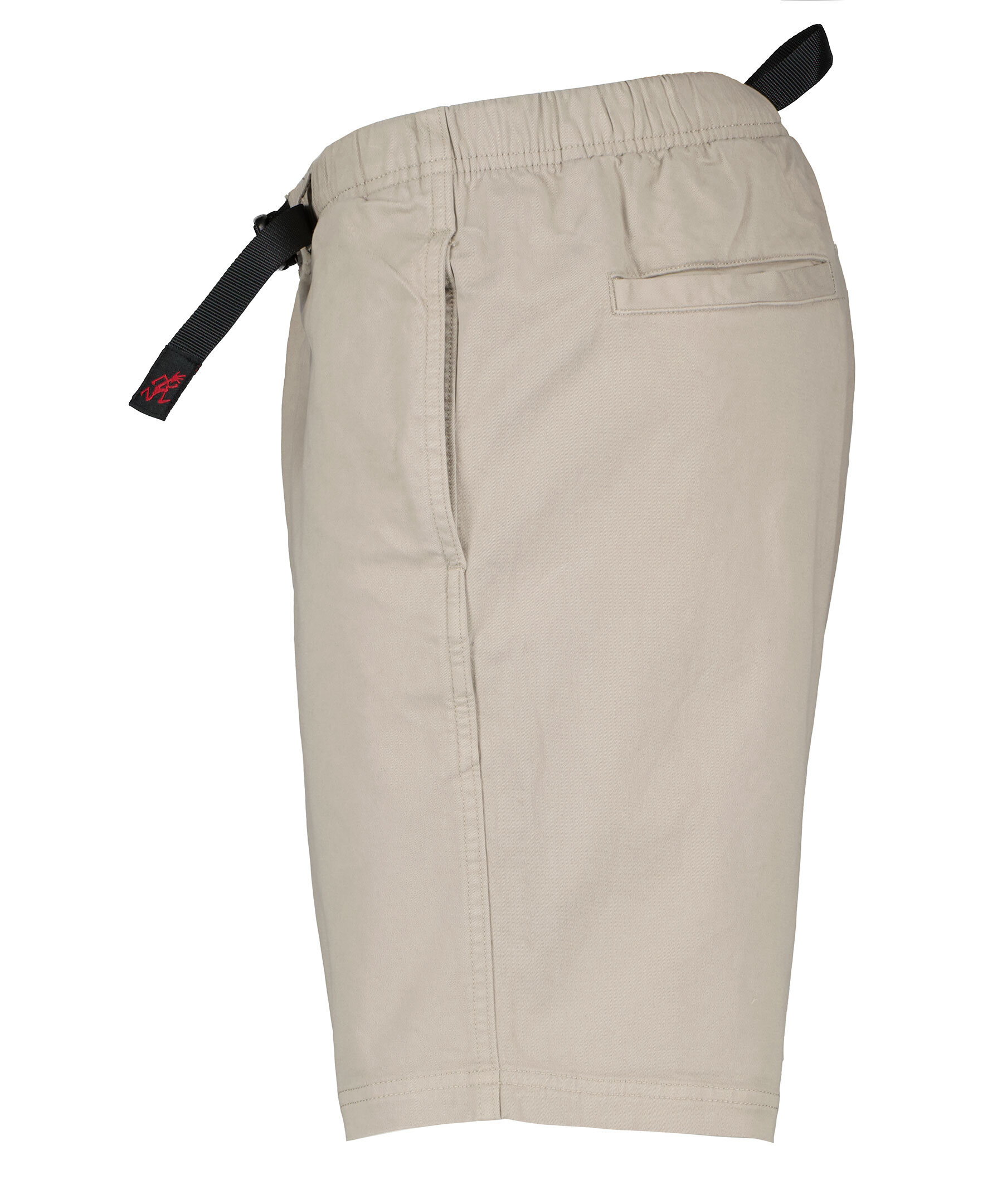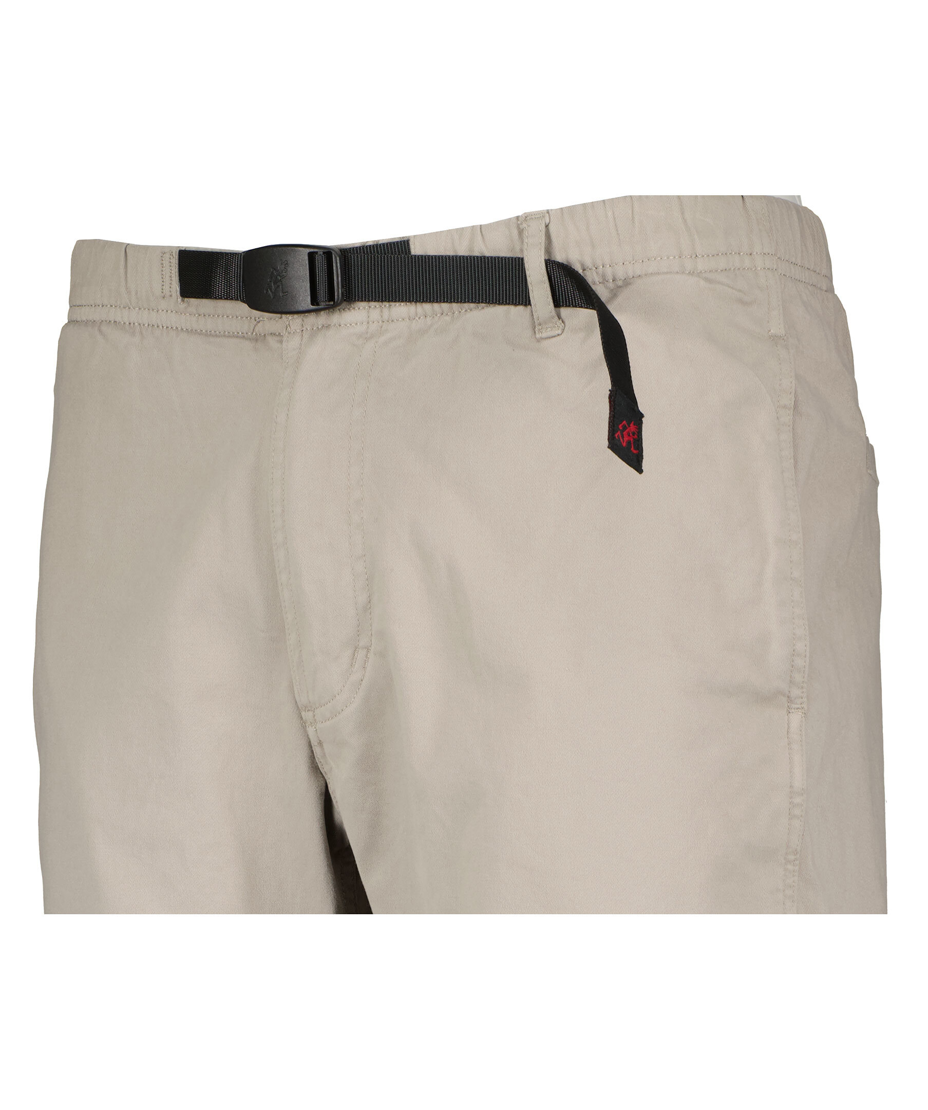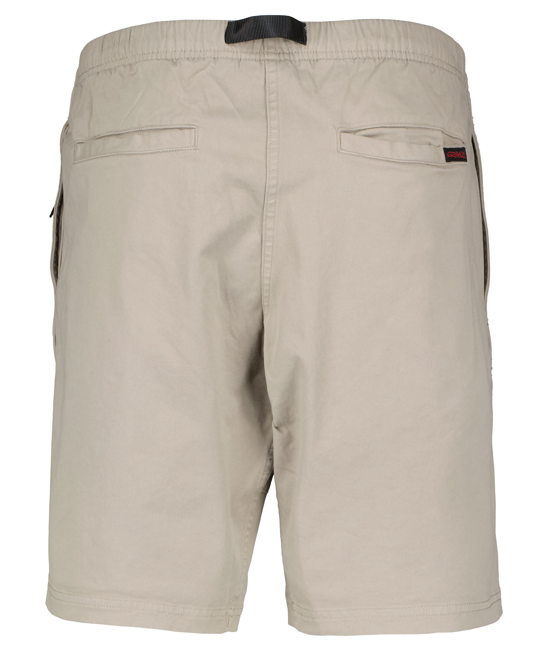 Gråbeigea shorts från Gramicci. Justerbart bälte i midjan, resår i midjan. Två fickor fram, två fickor bak som stängs med kardborre, en med logotyp. Gylf som stängs med dragkedja och knapp.