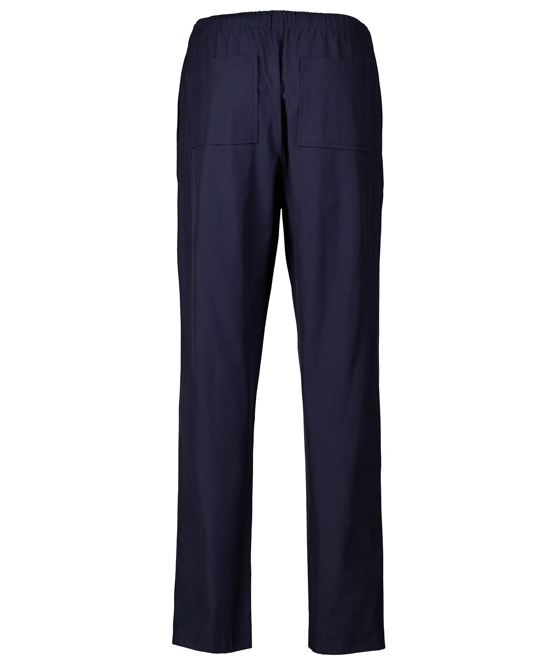 Marinblå byxor från Kenzo. Avsmalnade ben, resår i midjan, dold gylf med dragkedja och knapp. Byxorna har två framfickor och två bakfickor. Liten broderad logotyp vid ena framfickan. *Triacetatblandning *Fyra fickor *Resår i midja
