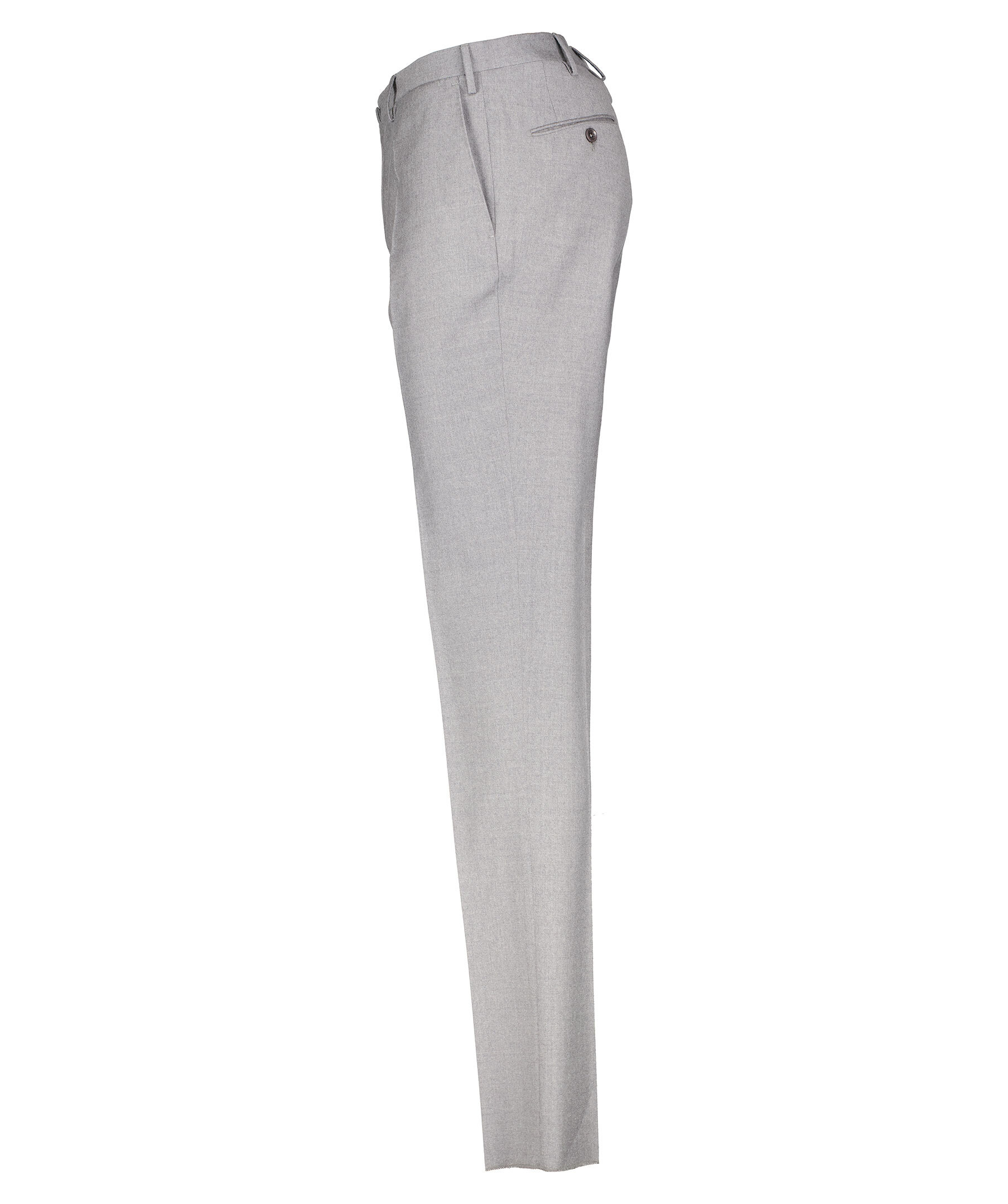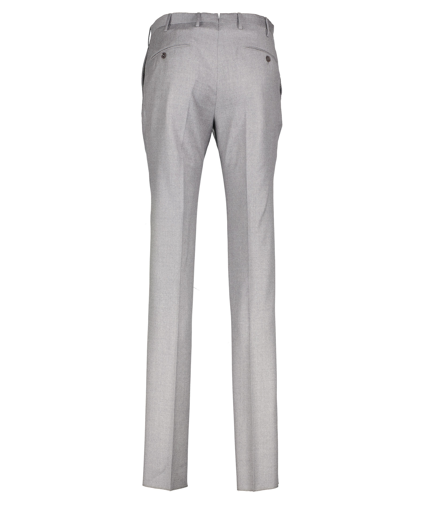Grå kostymbyxor från Incotex i slim fit modell. Två snedställda sidfickor samt två raka fickor baktill med knapp. Bälteshällor i midjan, stängs med dragkedja och knappar. Ögla vid byxlinningen framtill för att hålla bältet på plats. Pressveck. Tillverkade i 100% ull.