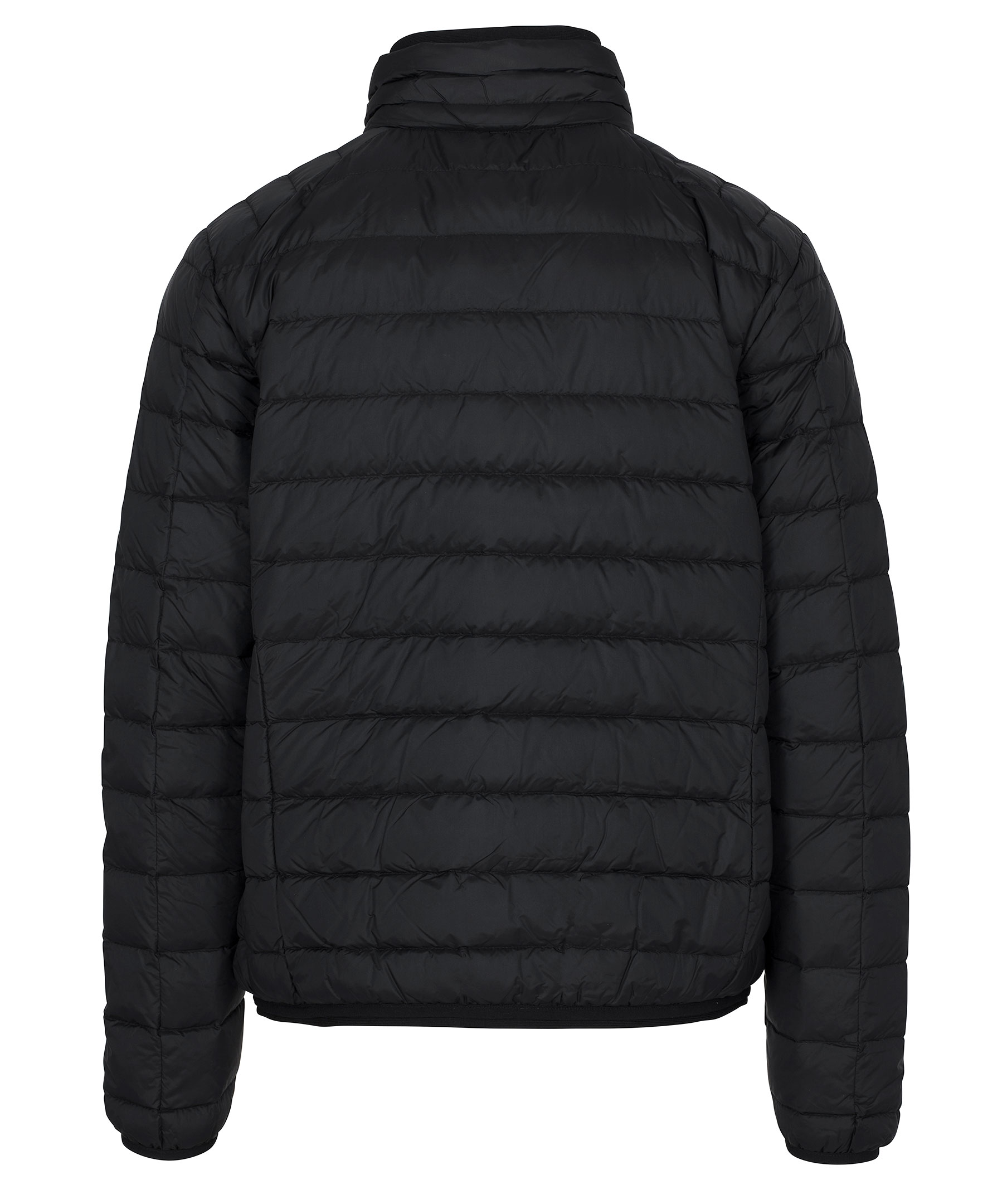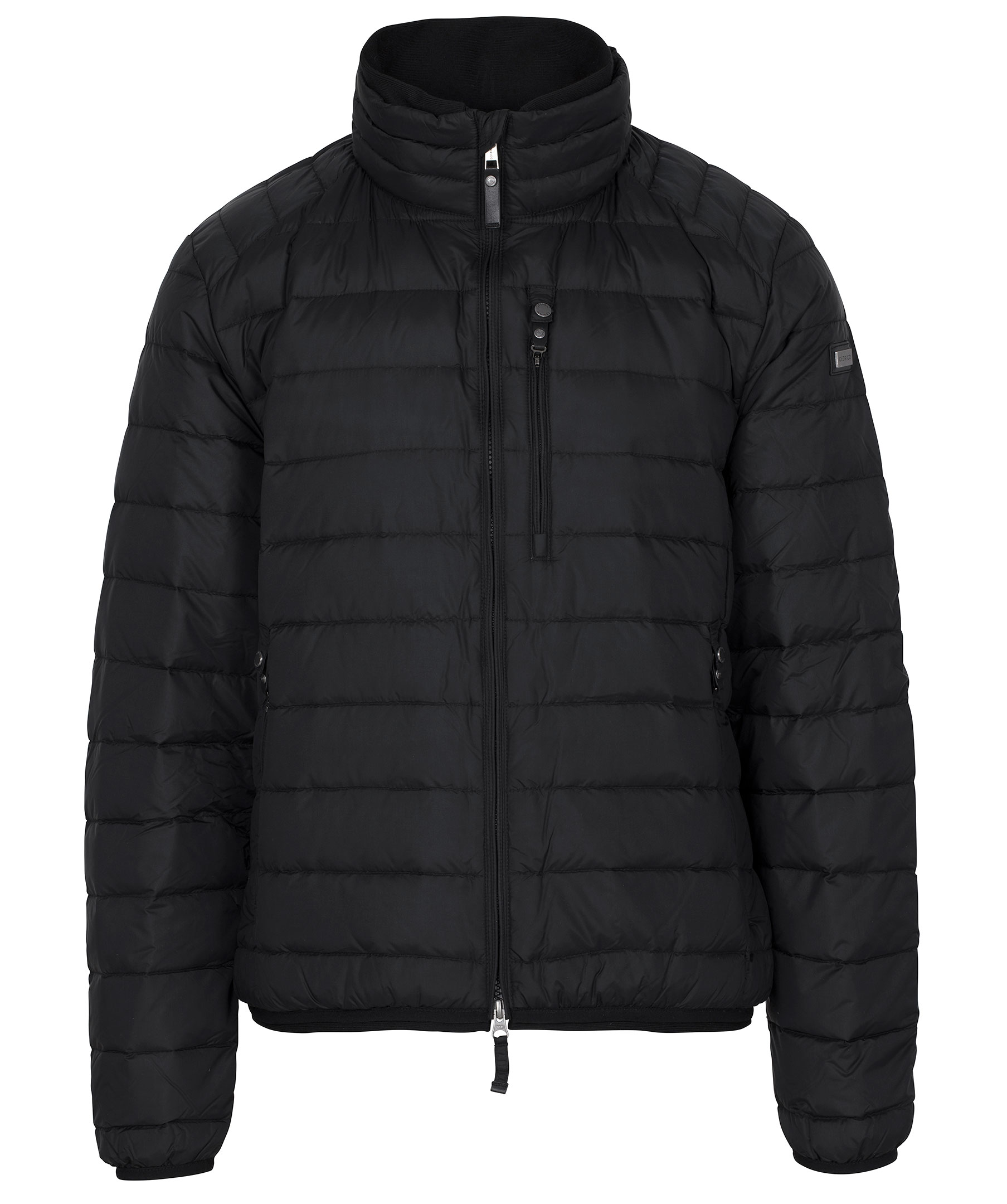 Svart lättviktsdunjacka från Cedrico. Tillverkad i nylon med fyllning av dun och fjäder. Jackan stängs med tvåvägsdragkedja och har en hög krage. Två fickor fram och en bröstficka som stängs med dragkedja som har knapp ovanför som man kan knäppa fast dragflärpen i så att den håller sig på plats och inte åker ner. Tre innerfickor, en med dragkedja. Logga på vänster ärm samt liten mudd i ärmslut och plaggslut.