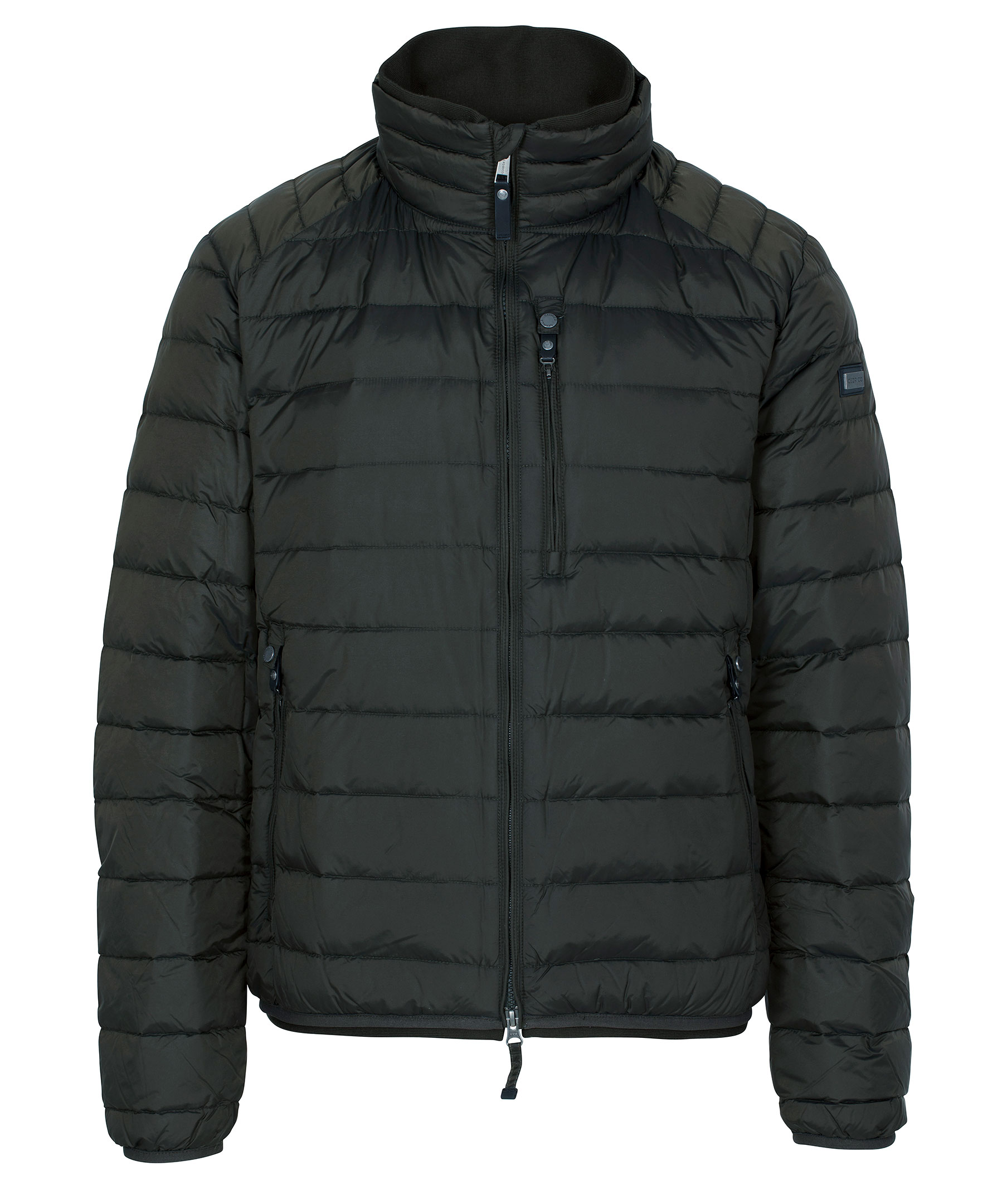 Olivgrön lättviktsdunjacka från Cedrico. Tillverkad i nylon med fyllning av dun och fjäder. Jackan stängs med tvåvägsdragkedja och har en hög krage. Två fickor fram och en bröstficka som stängs med dragkedja som har knapp ovanför som man kan knäppa fast dragflärpen i så att den håller sig på plats och inte åker ner. Tre innerfickor, en med dragkedja. Logga på vänster ärm samt liten mudd i ärmslut och plaggslut.