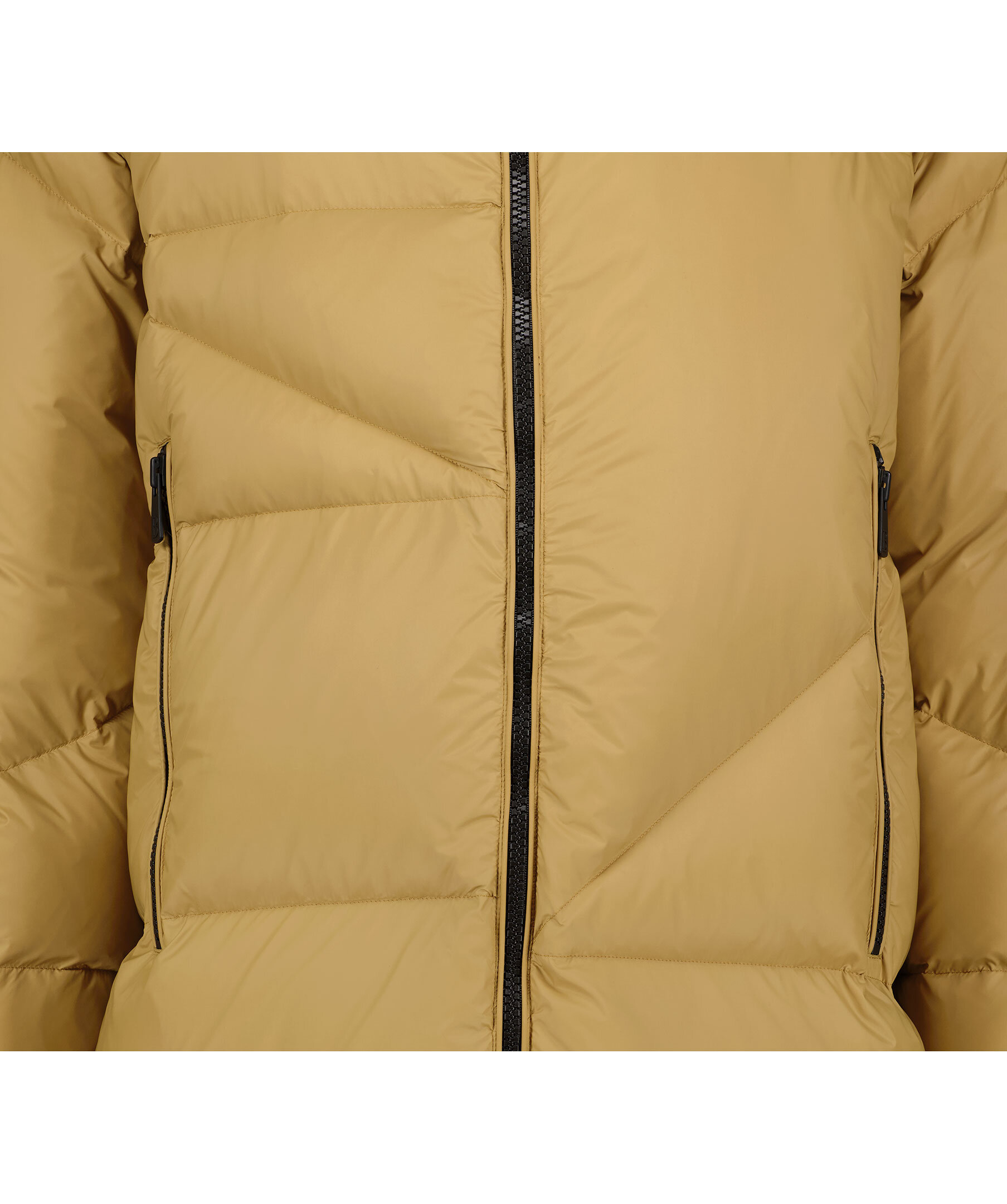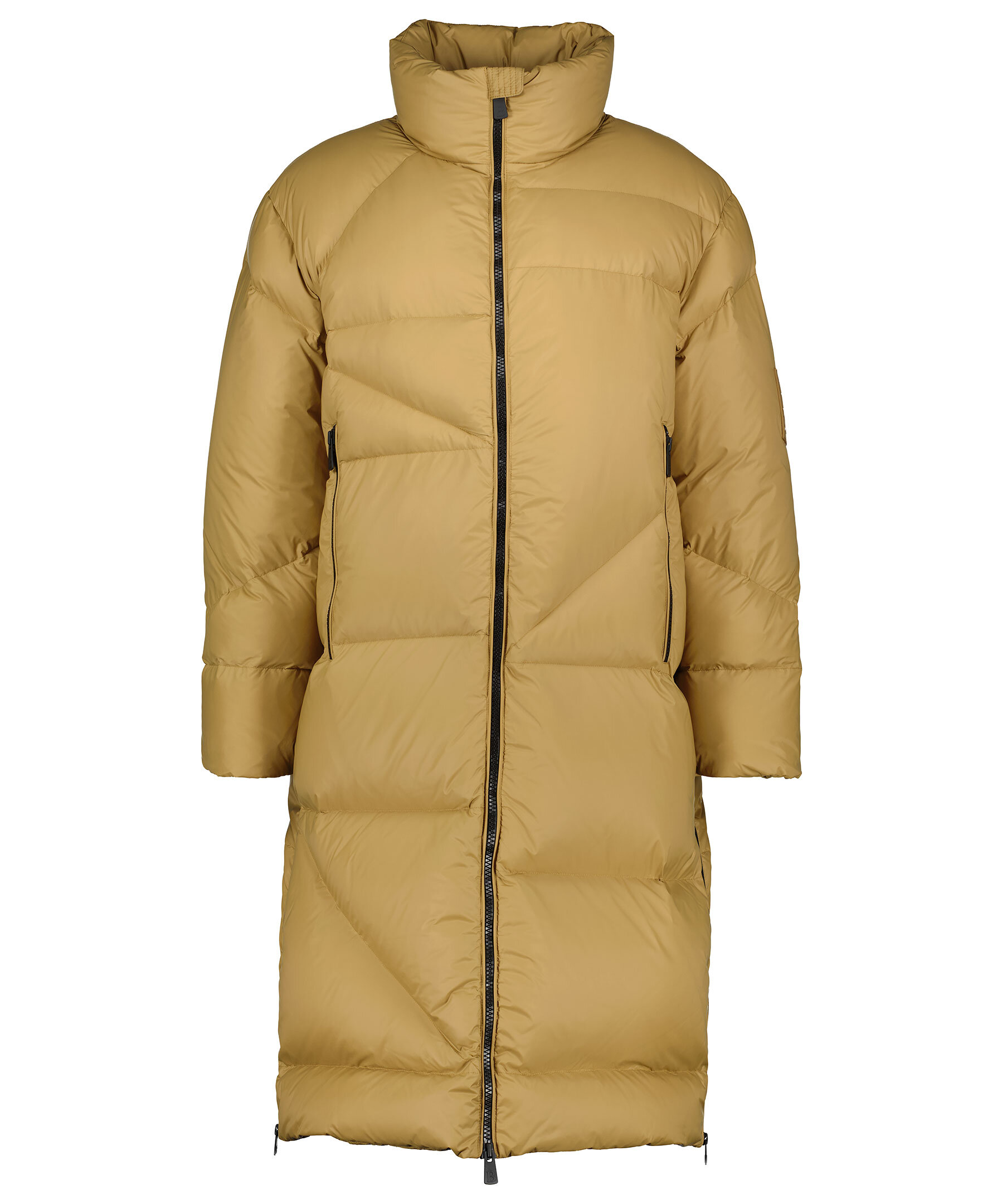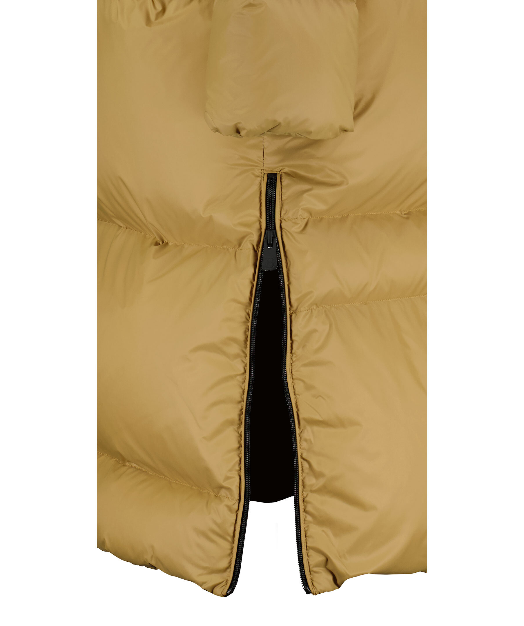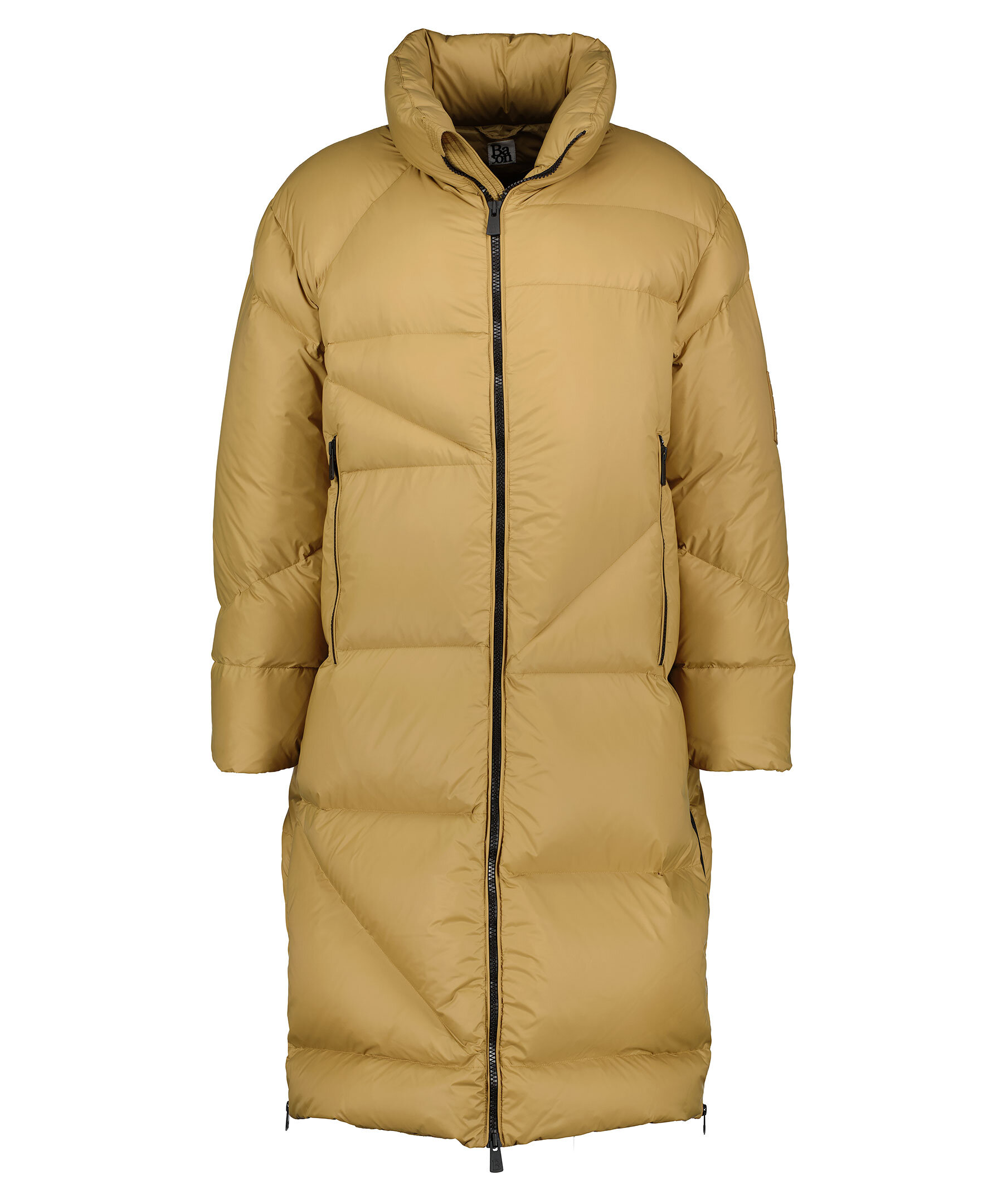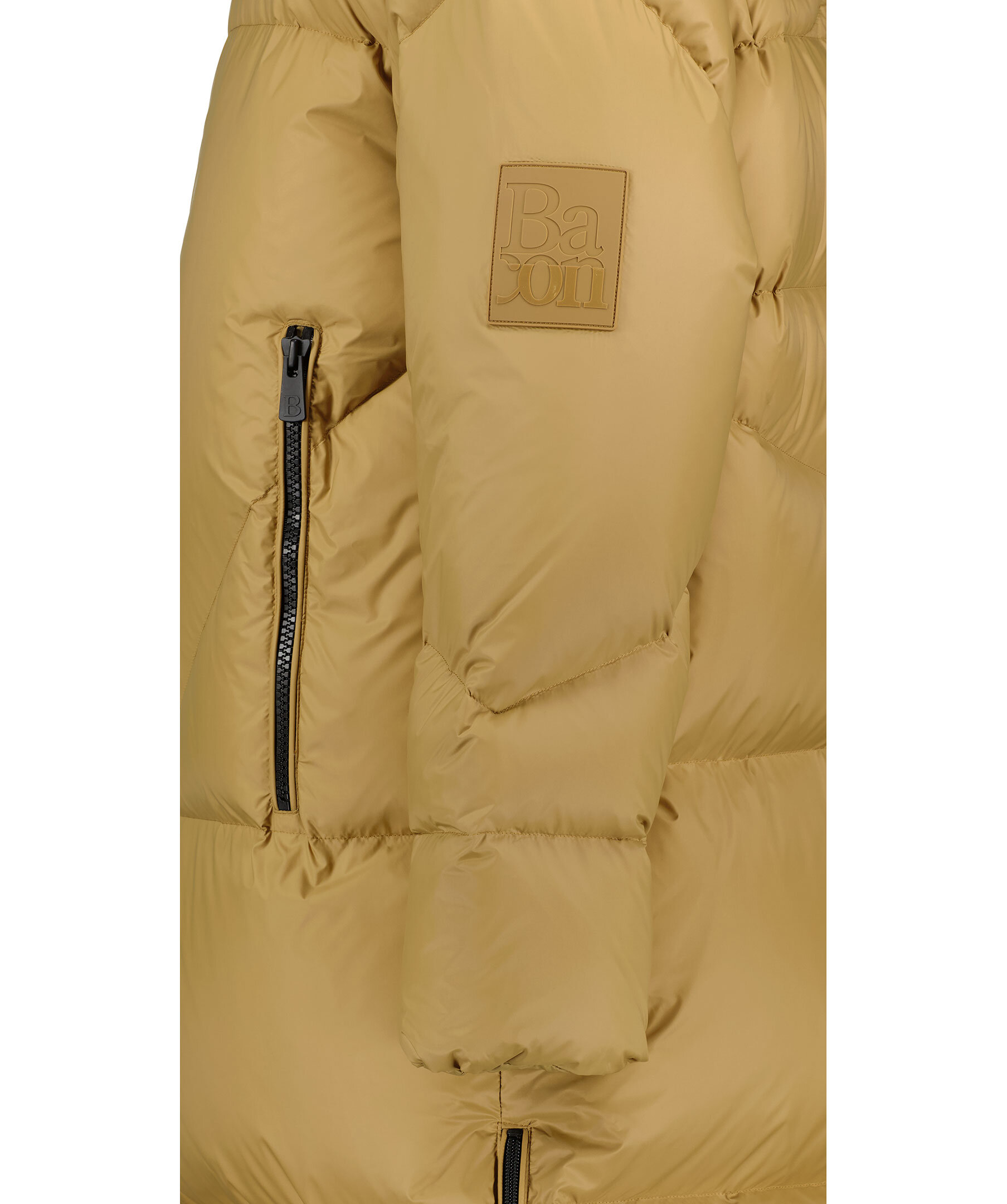Senapsgul quiltad dunjacka från Bacon Clothing. Stängs framtill med tvåvägsdragkedja. Två fickor framtill som stängs med dragkedja. Innerficka som stängs med dragkedja. Gummerad logotyp på vänster ärm med logotyp. Dragkedjor vid plaggslut.