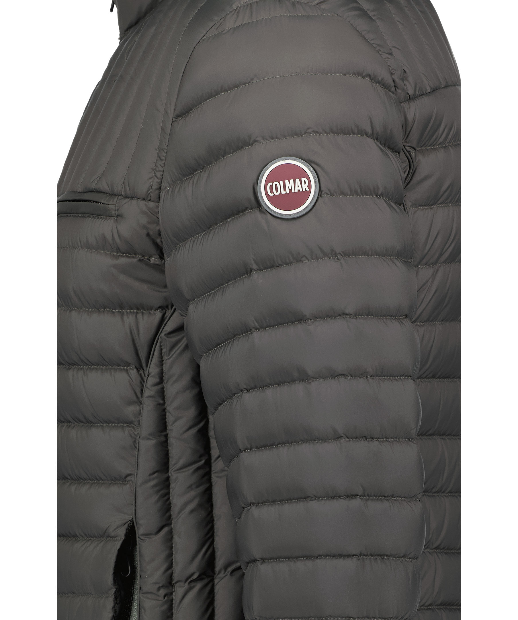 Svart quiltad dunjacka från Colmar. Stängs framtill med dragkedja. Två fickor framtill som stängs med dragkedja, bröstficka med dragkedja på vänster bröst. Innerficka som stängs med dragkedja. Justerbara ärmslut med tryckknappar. Gummerad logotyp på vänster ärm. Gummerad logotyp baktill vid plaggslut på höger sida. Dragsko vid jackslut.