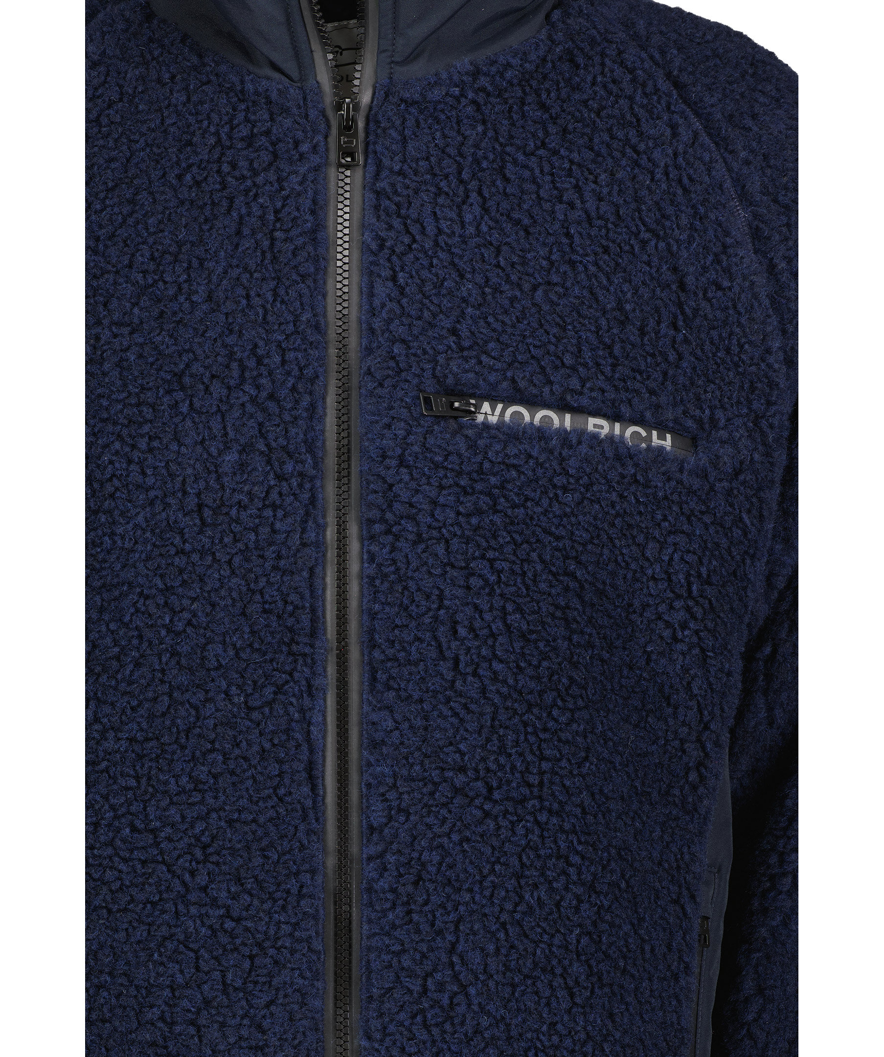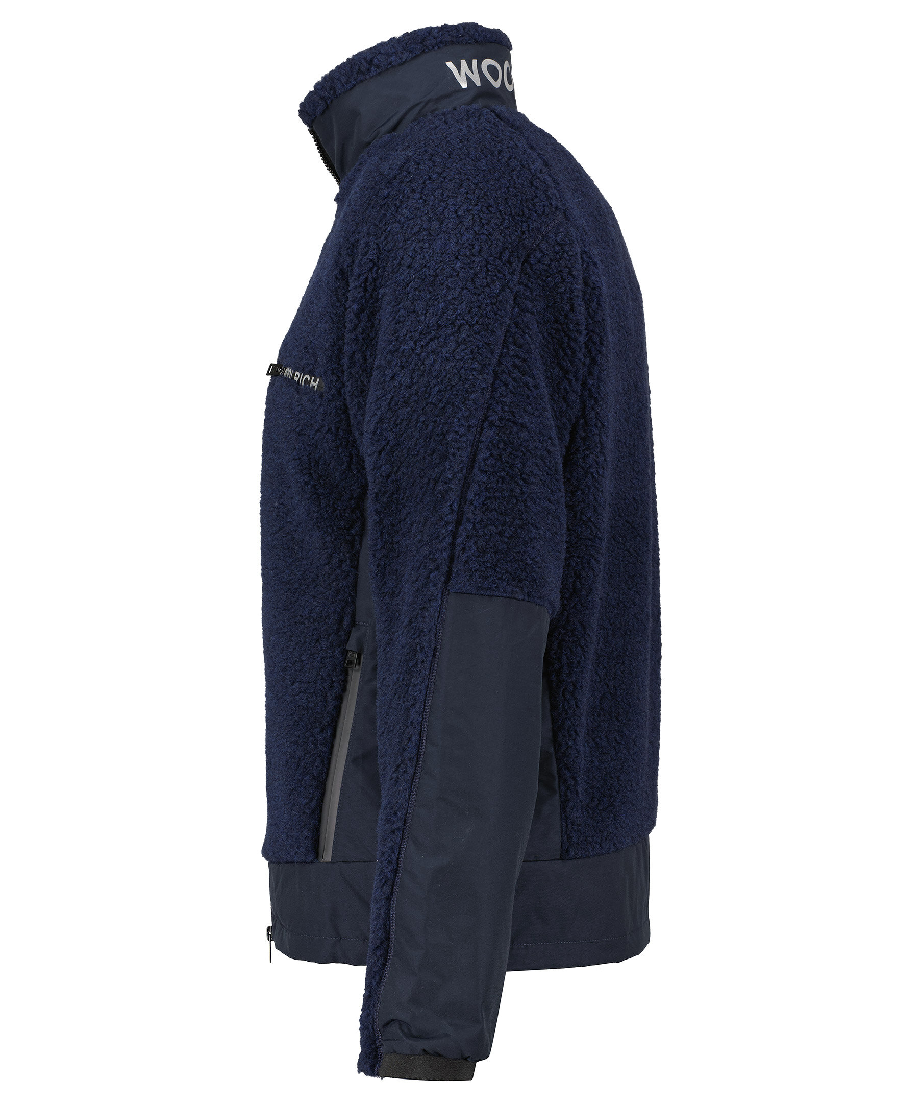 Mörkblå pile från Woolrich. Stängs framtill med dragkedja. Bröstficka på vänster sida med logotyp i reflexfärg på dragkedjan. Två fickor framtill som stängs med dragkedja. Dragkedja längst vänster sida. Vävda paneler i sidan och på underarmarna.