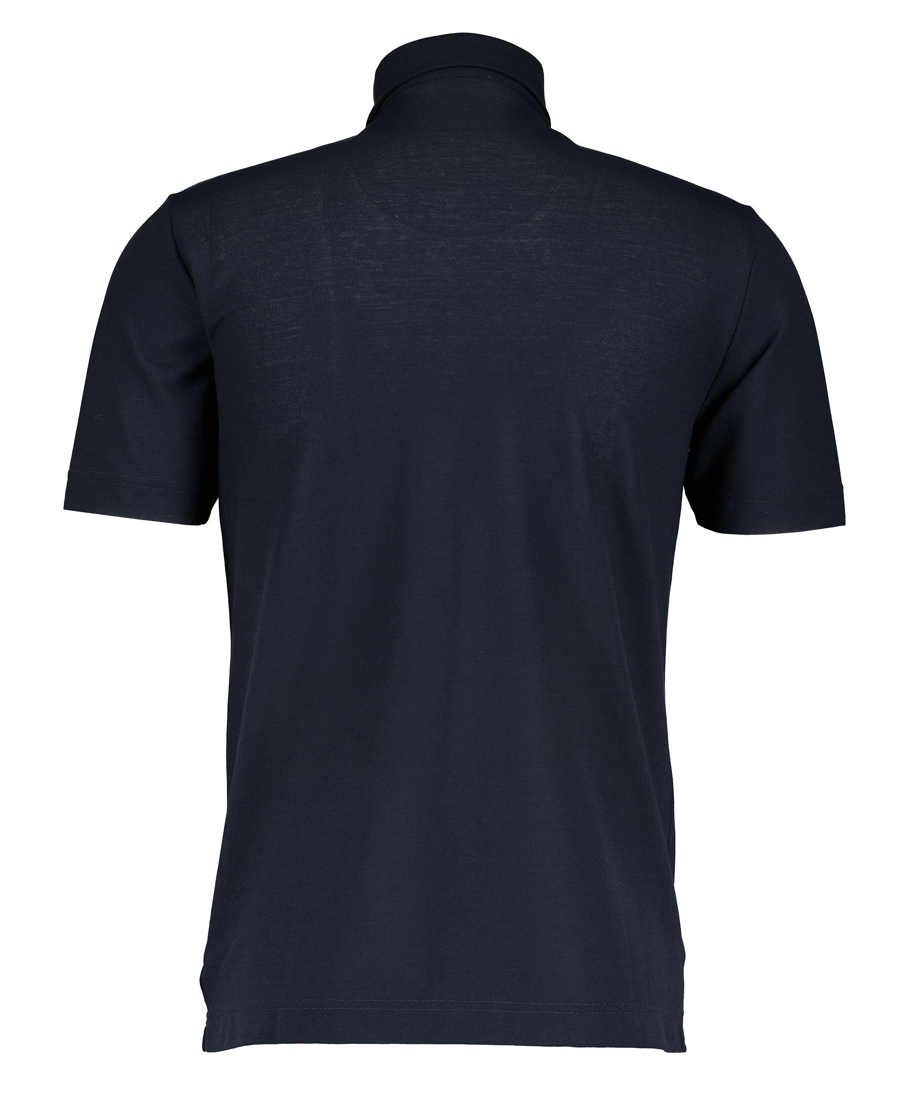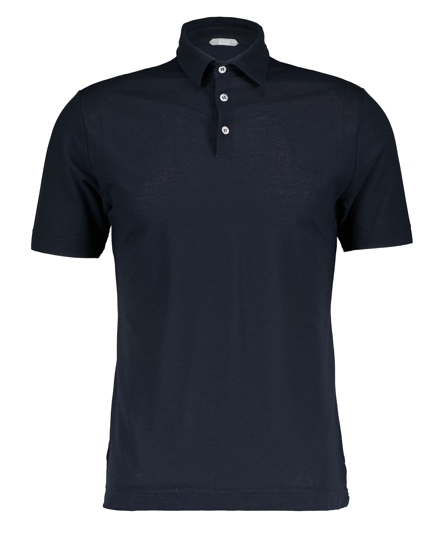 Marinblå piké från Zanone. knäppning med tre knappar. Spetsig krage. Korta slitsar i sidorna. Tillverkad i 100% Bomull.