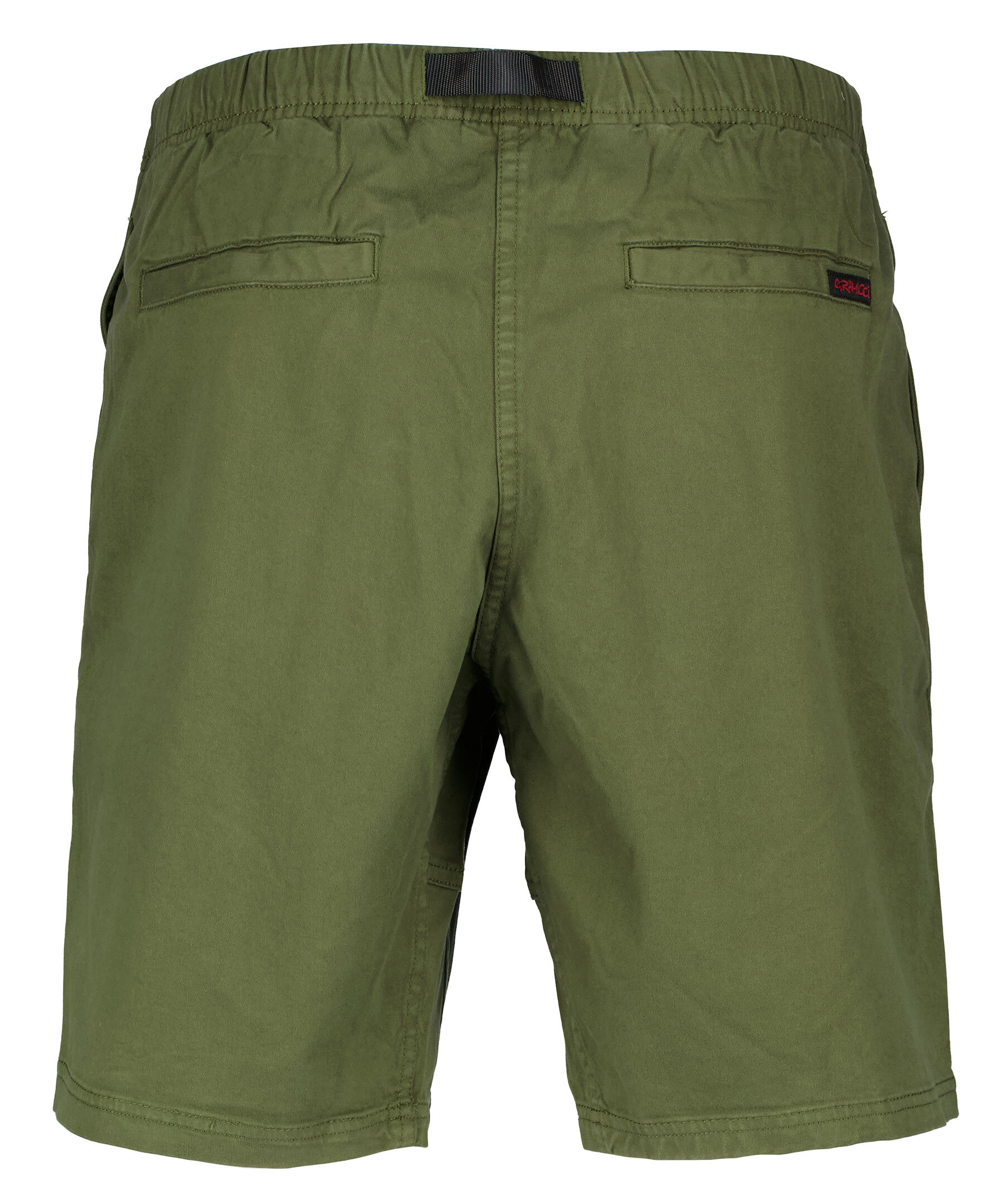 Gröna shorts från Gramicci. Justerbart bälte i midjan, resår i midjan. Två fickor fram, två fickor bak som stängs med kardborre, en med logotyp. Gylf som stängs med dragkedja och knapp.