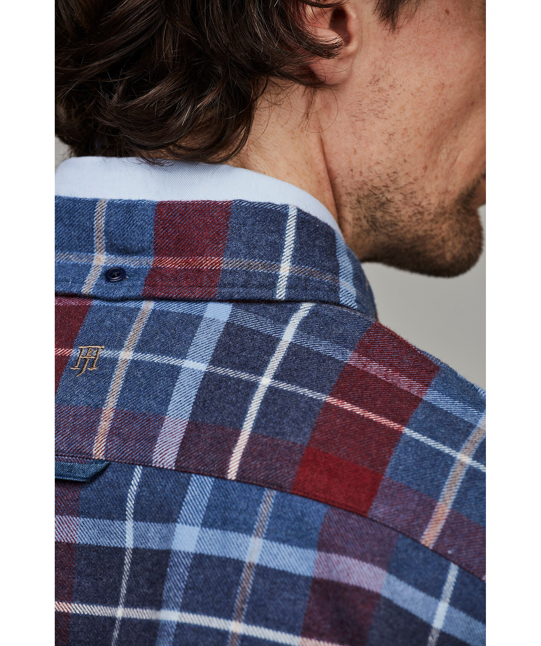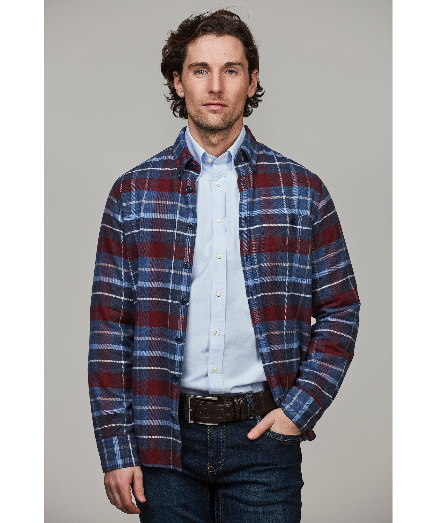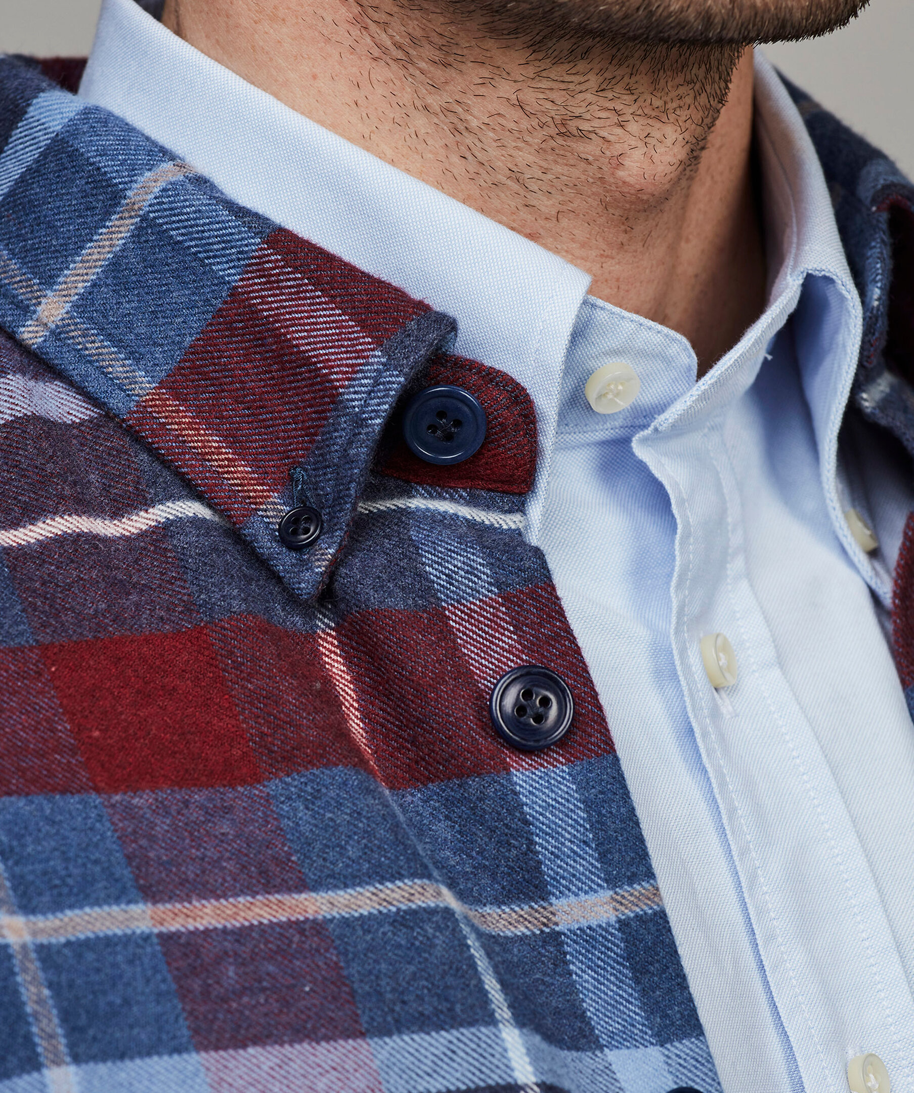 En snygg, lite matigare flanellskjorta. Den kan användas både som vanlig skjorta men också som en overshirt därav passformen Comfort fit. Kommer med en button down krage och är plaggtvättad.